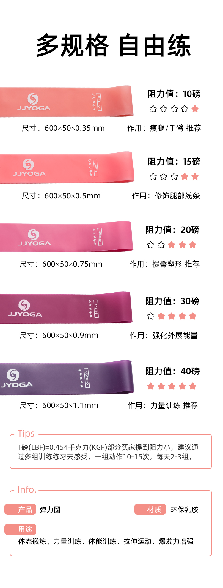 JJYOGA瑜伽健身乳胶弹力带弹力圈
