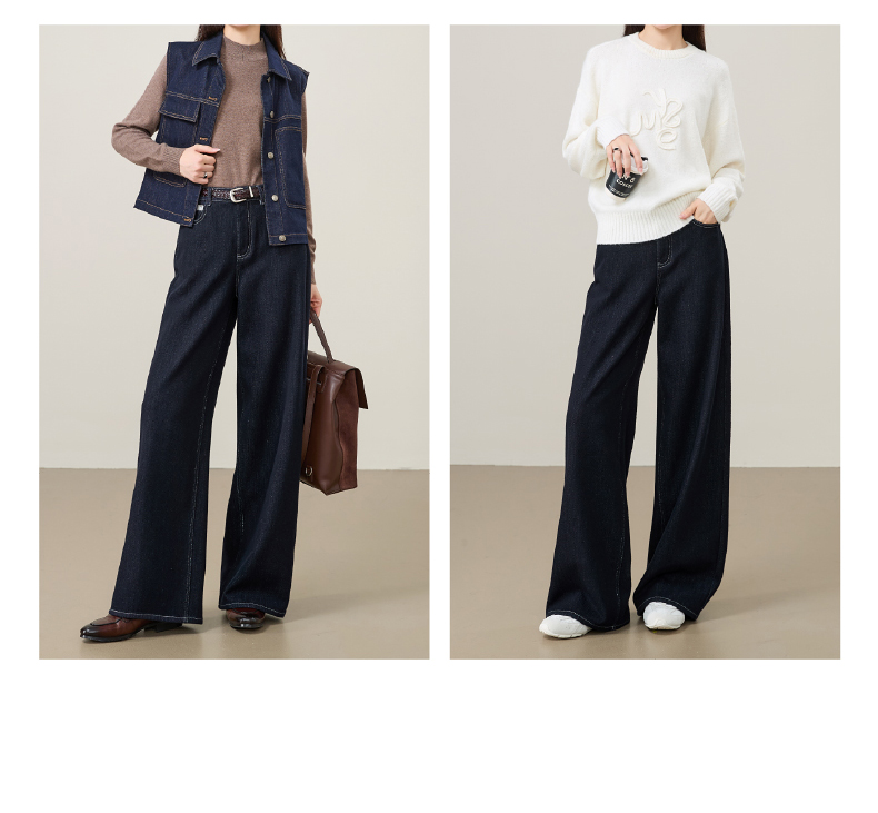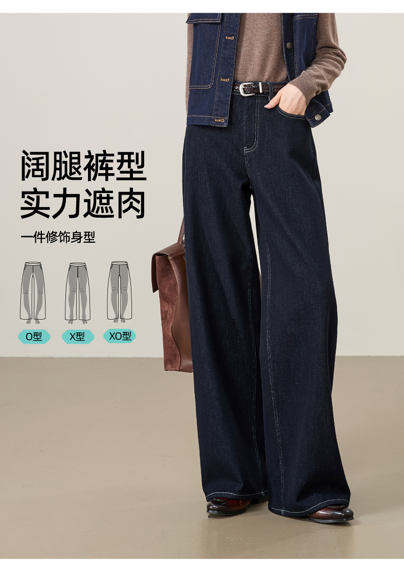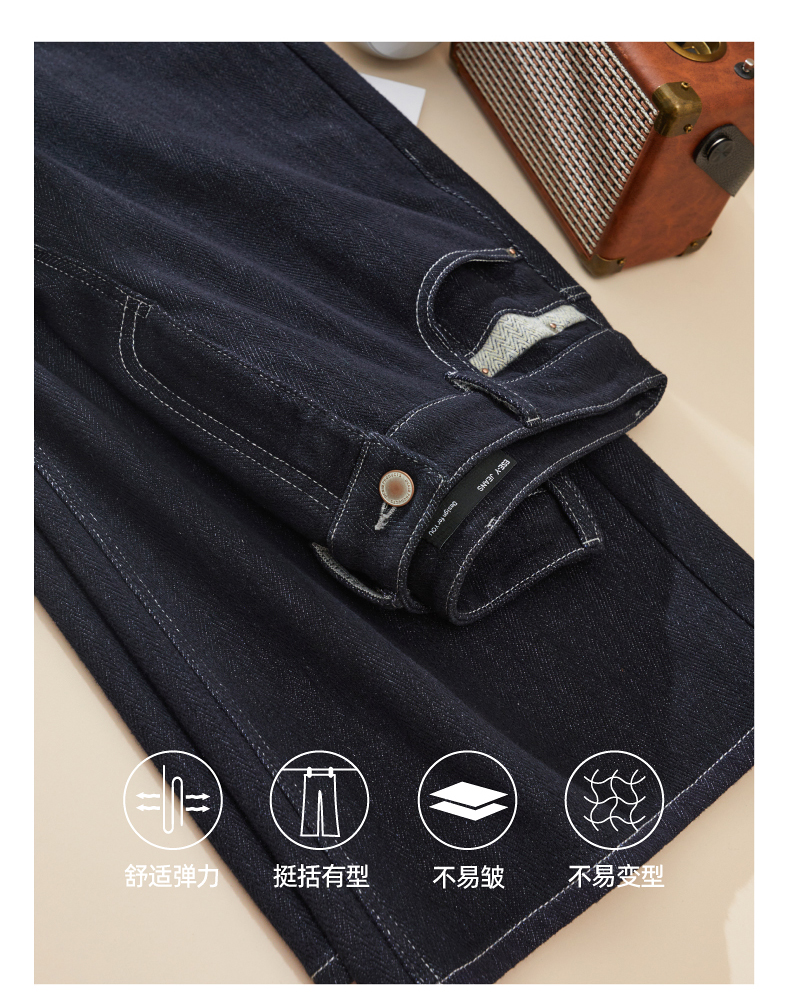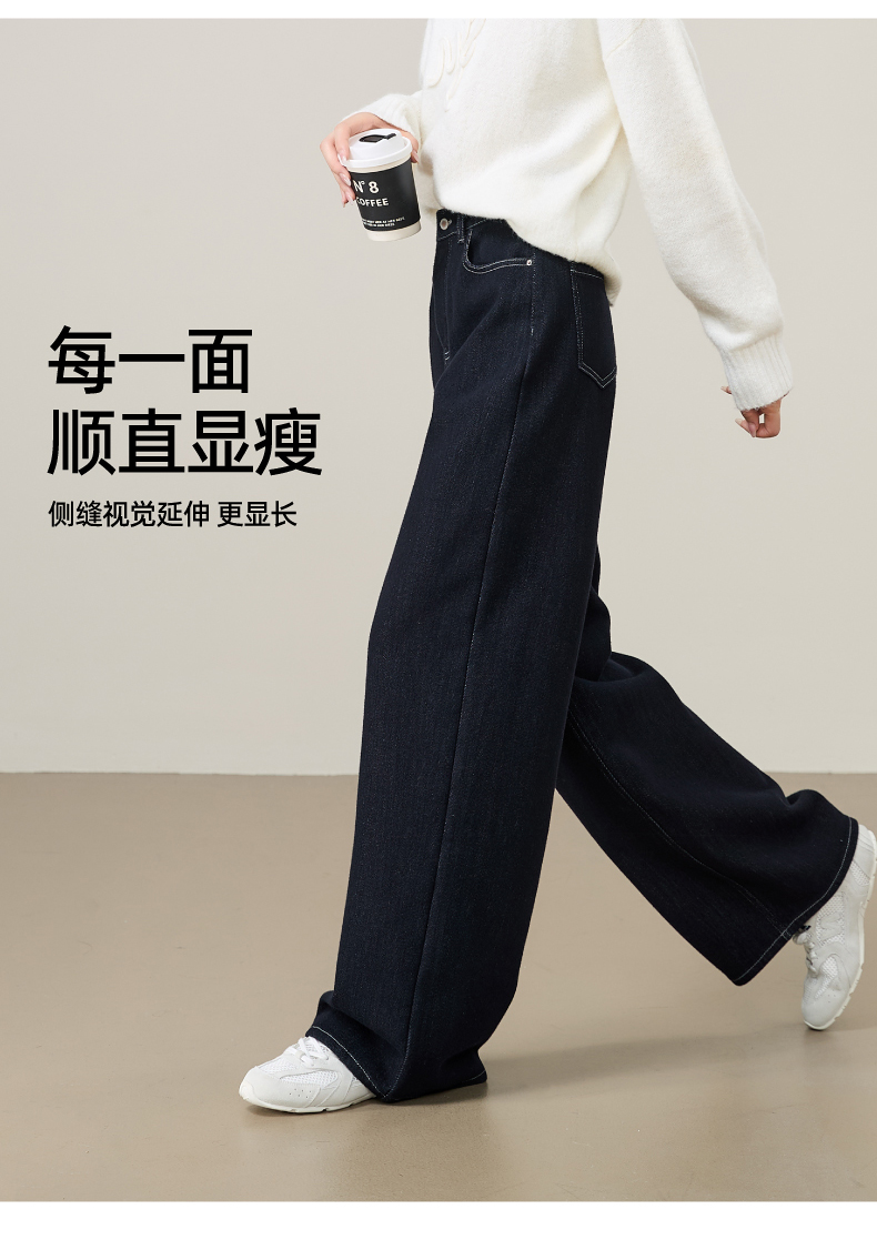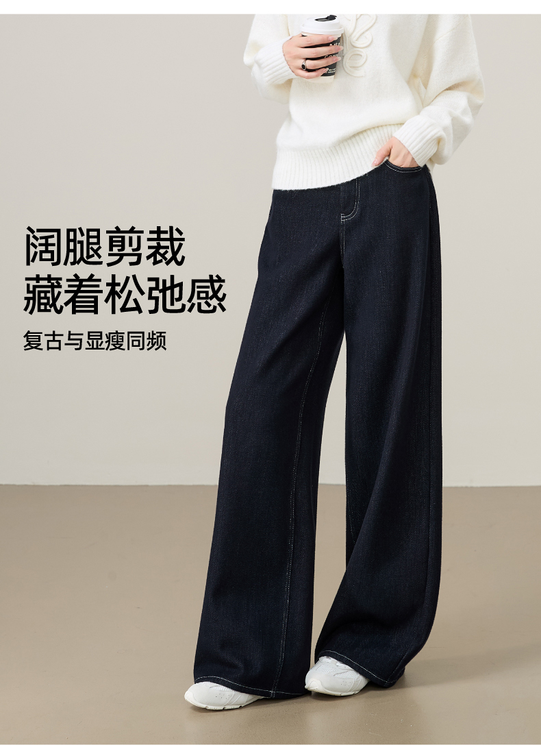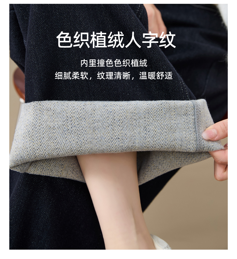 【人字纹-牛仔阔腿裤】逸阳秋冬新品加厚不易褪色宽松直筒牛仔裤8327