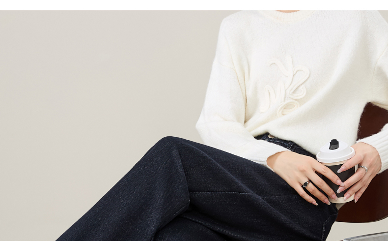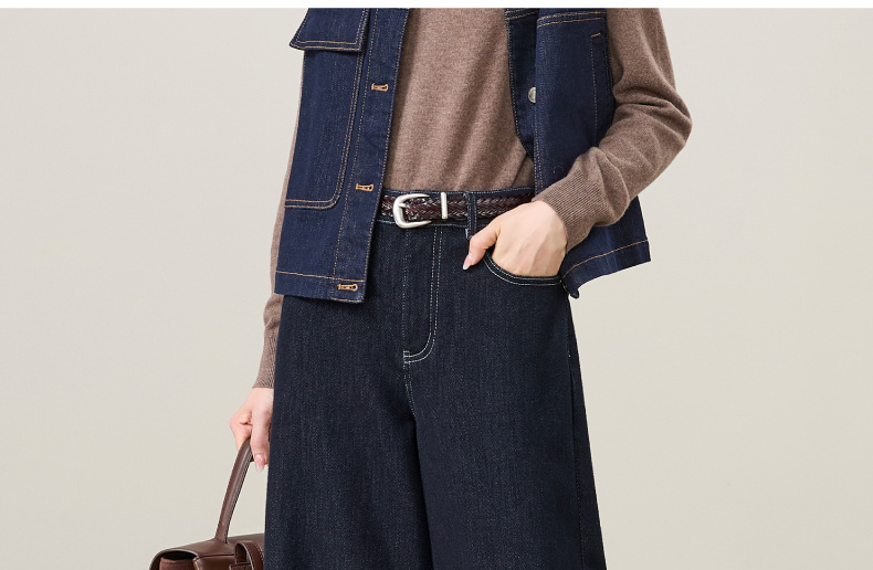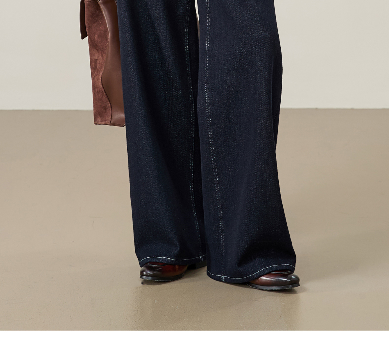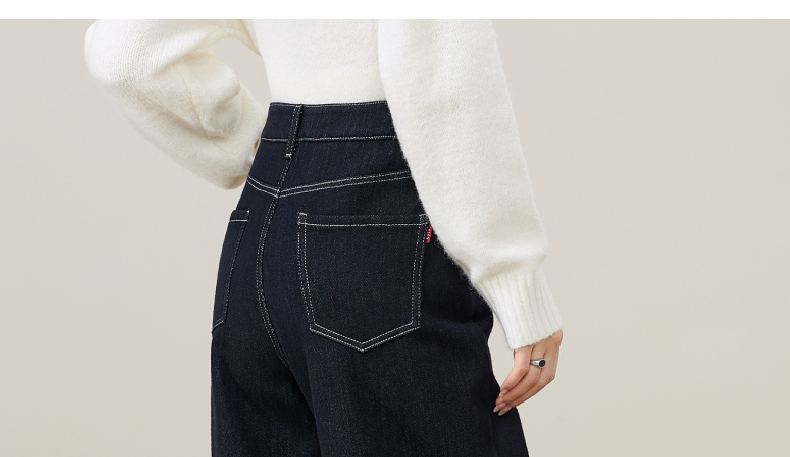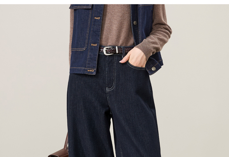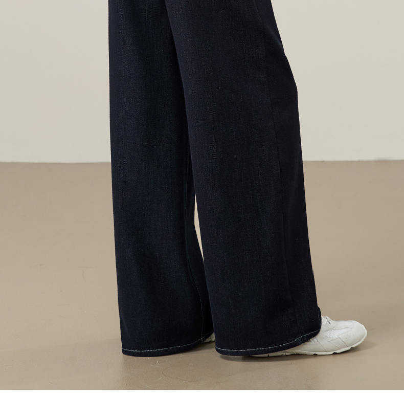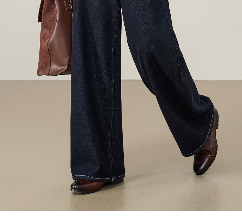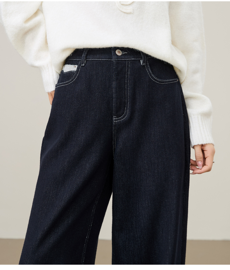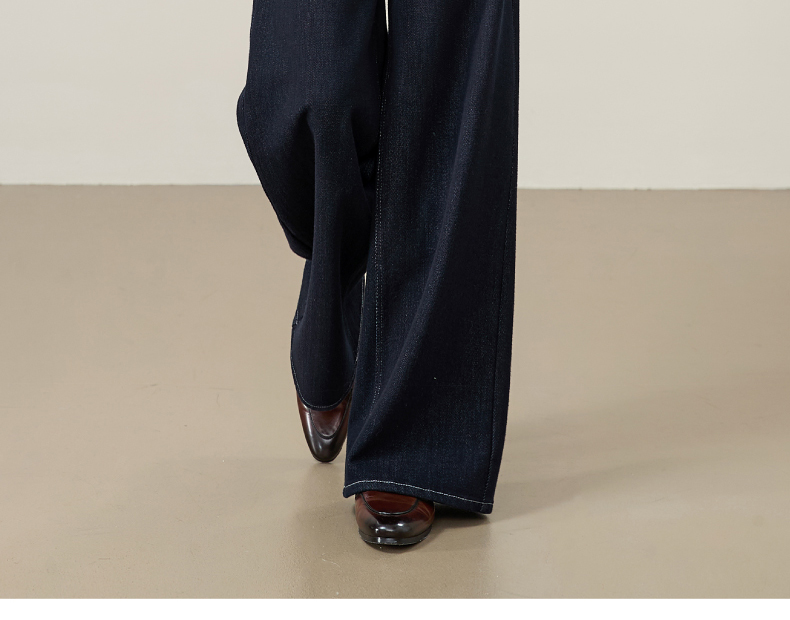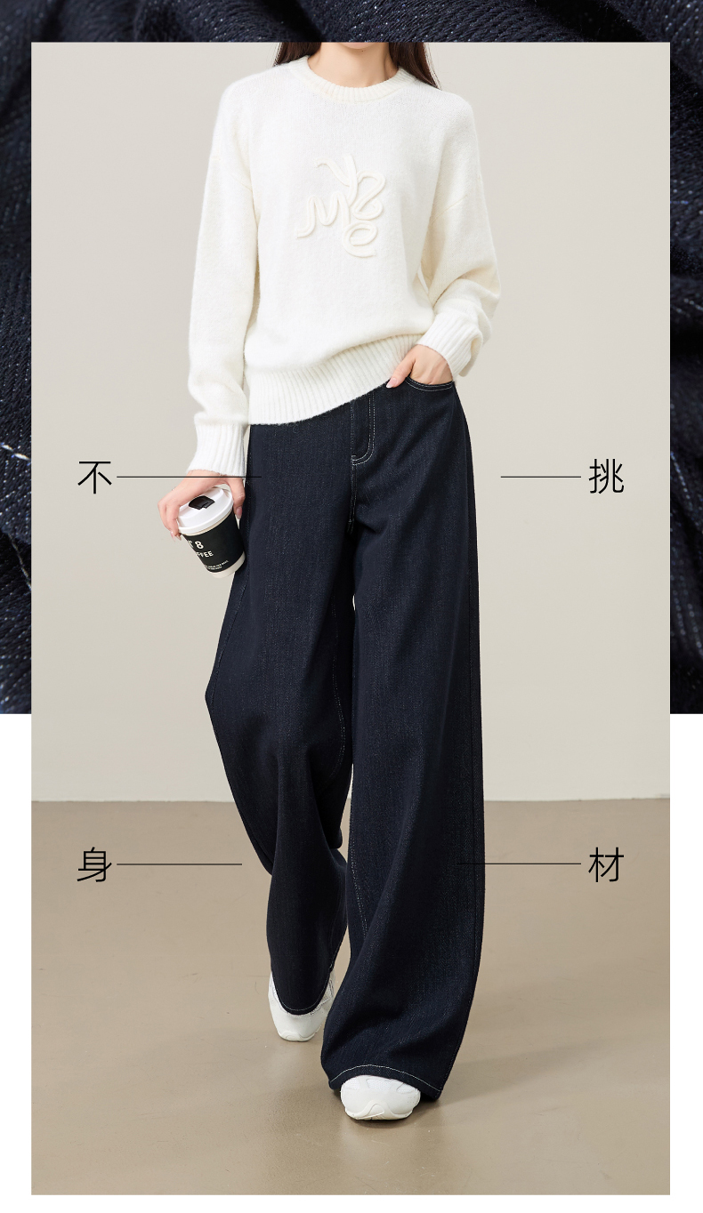 【人字纹-牛仔阔腿裤】逸阳秋冬新品加厚不易褪色宽松直筒牛仔裤8327