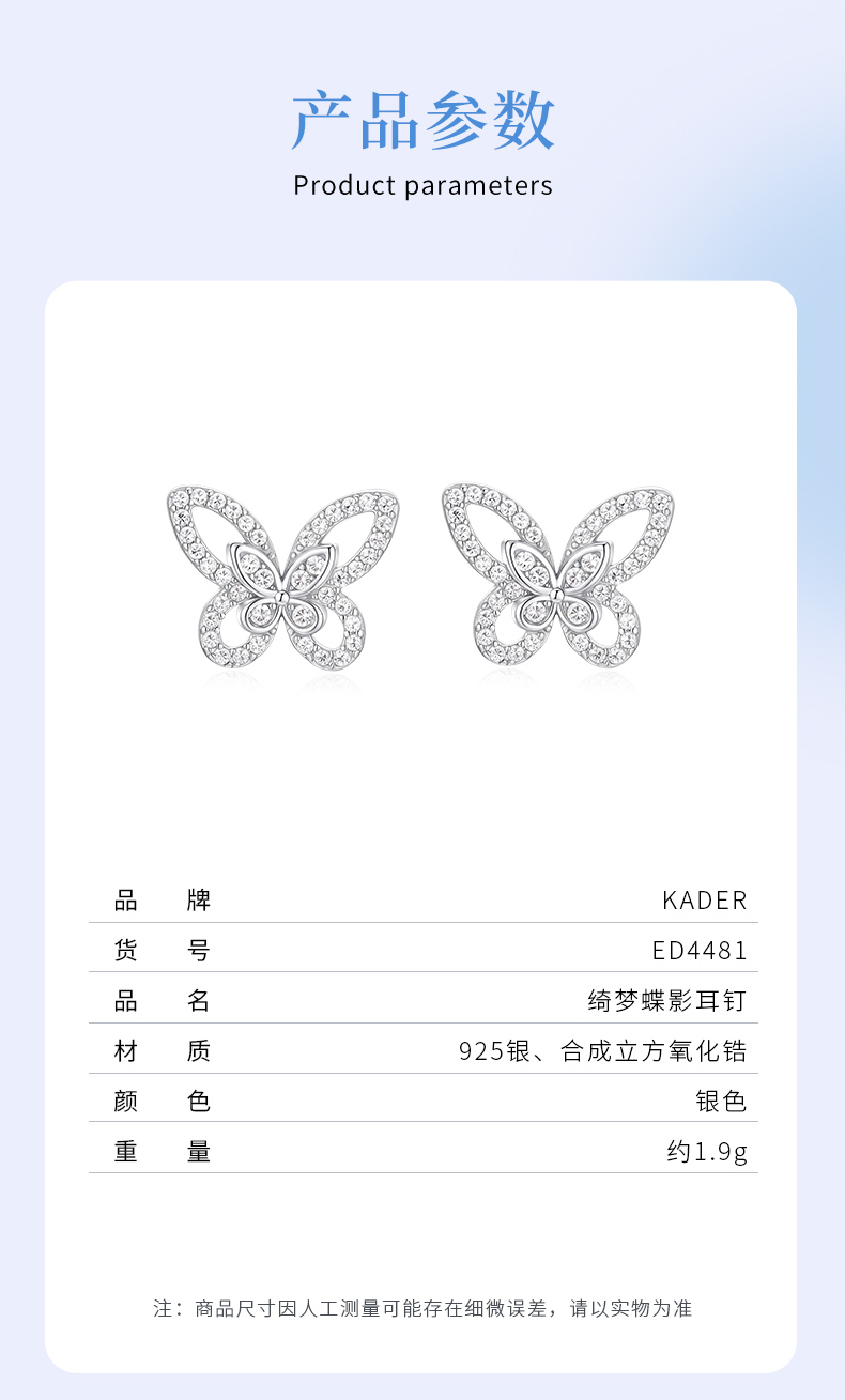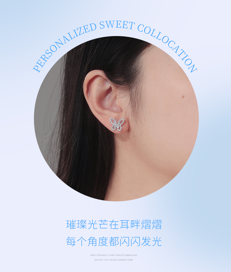 卡蒂罗/KADER 接住招财的蝴蝶玄学!绮梦蝶影纯银耳钉 镂空蝴蝶满锆镶嵌轻奢配饰 在逃公主高级ins风#好运