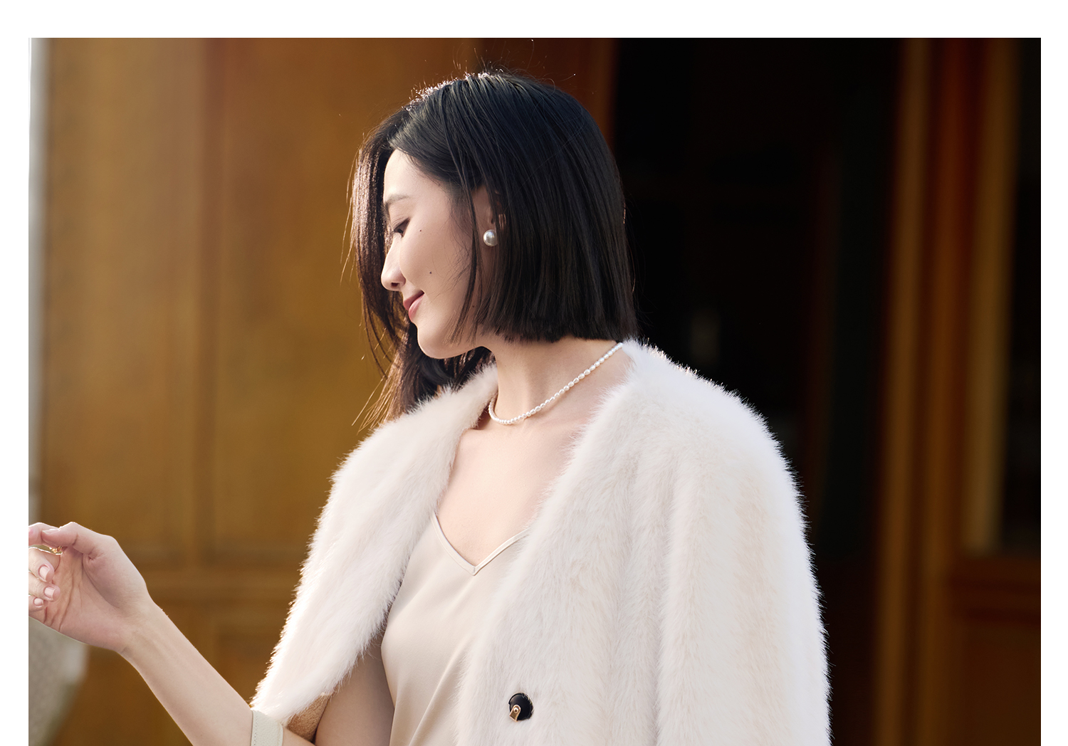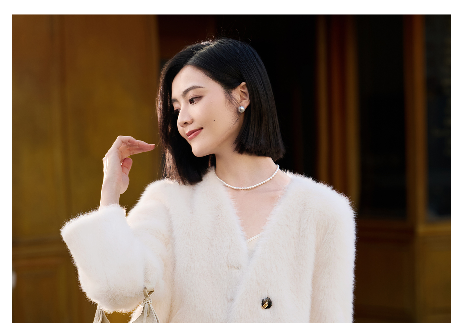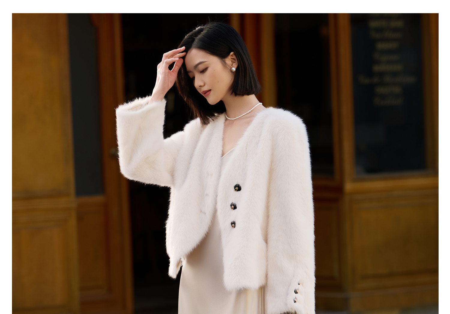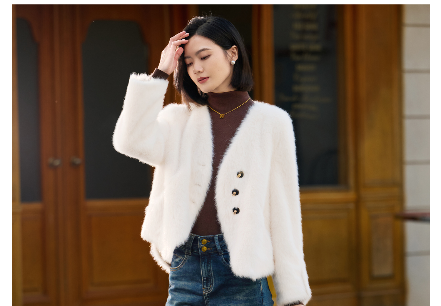 水貂绒环保皮草外套 触感柔软蓬松 米思阳2025冬季新款气质优雅仿水貂绒短款皮草短外套女5749