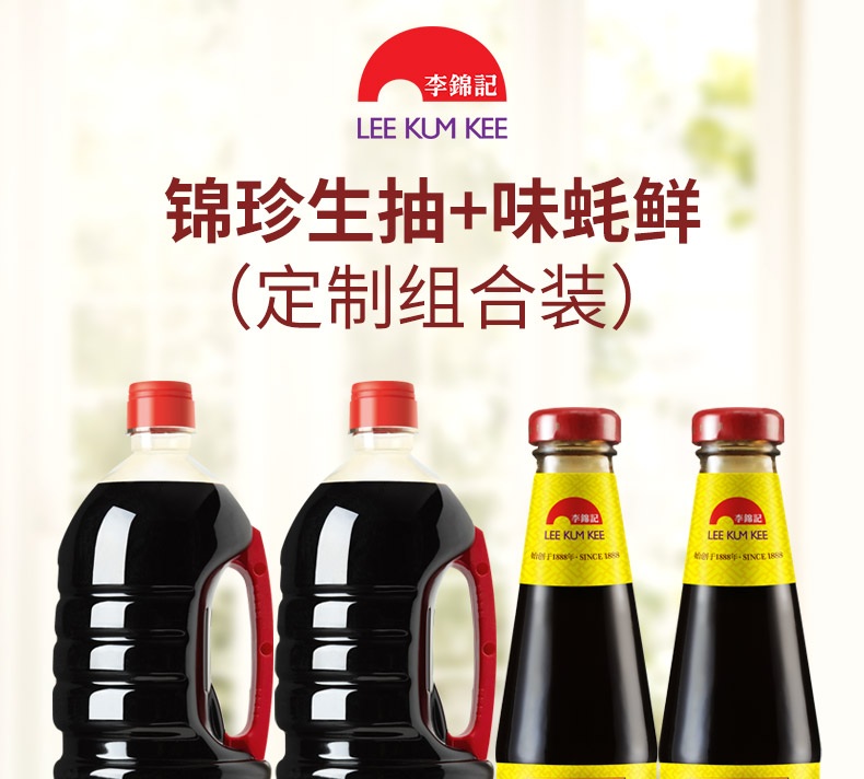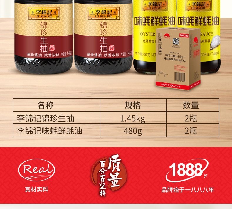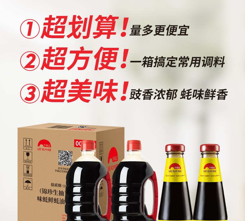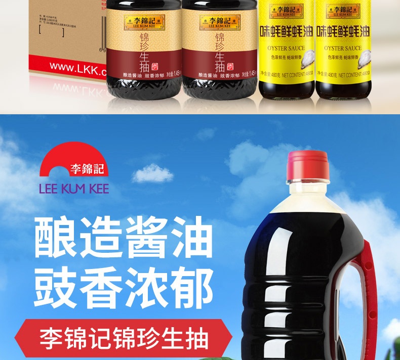 李锦记 酱油蚝油 锦珍生抽1.45kg*2+味蚝鲜480g*2 家庭常用调料组合装