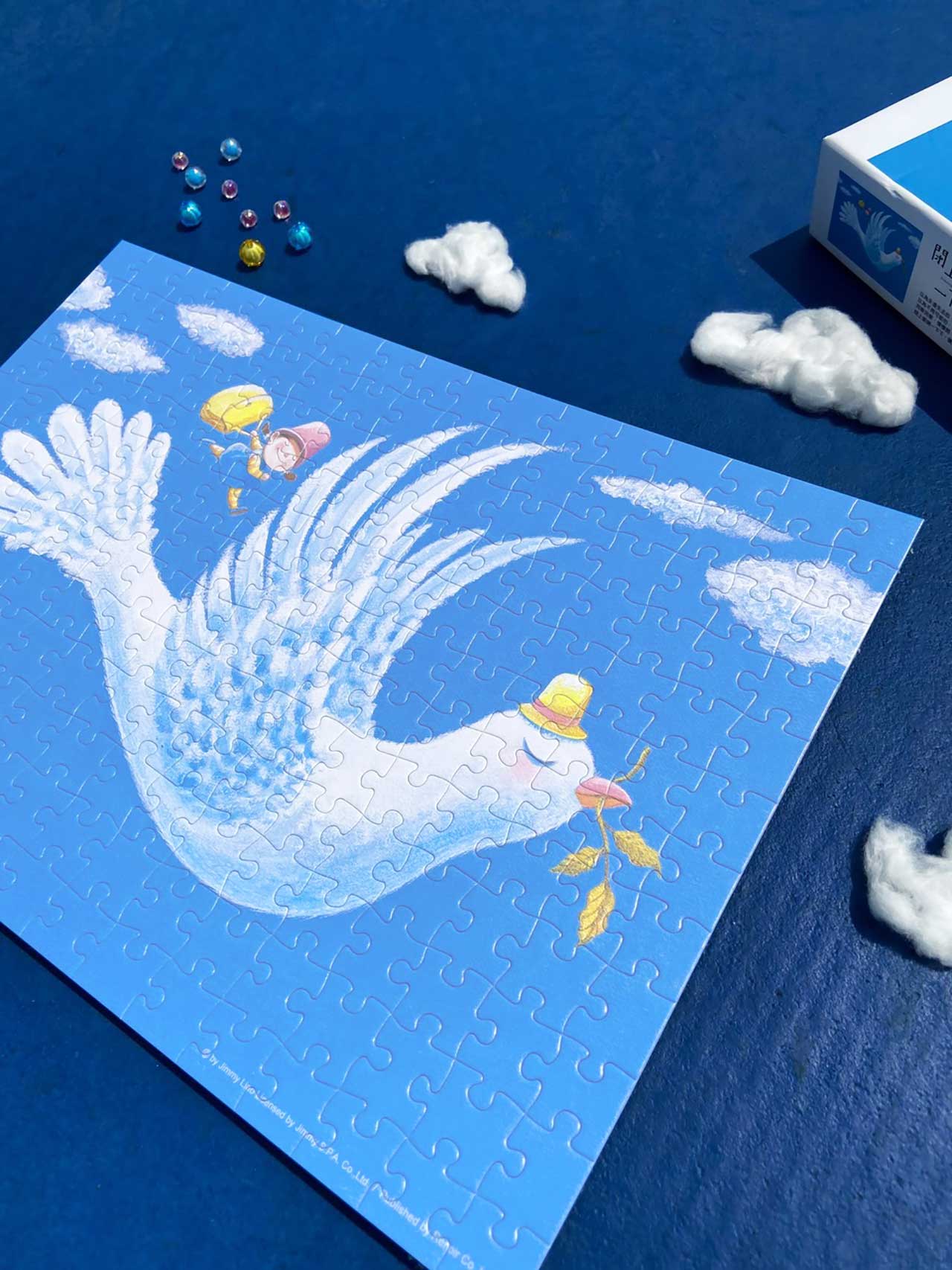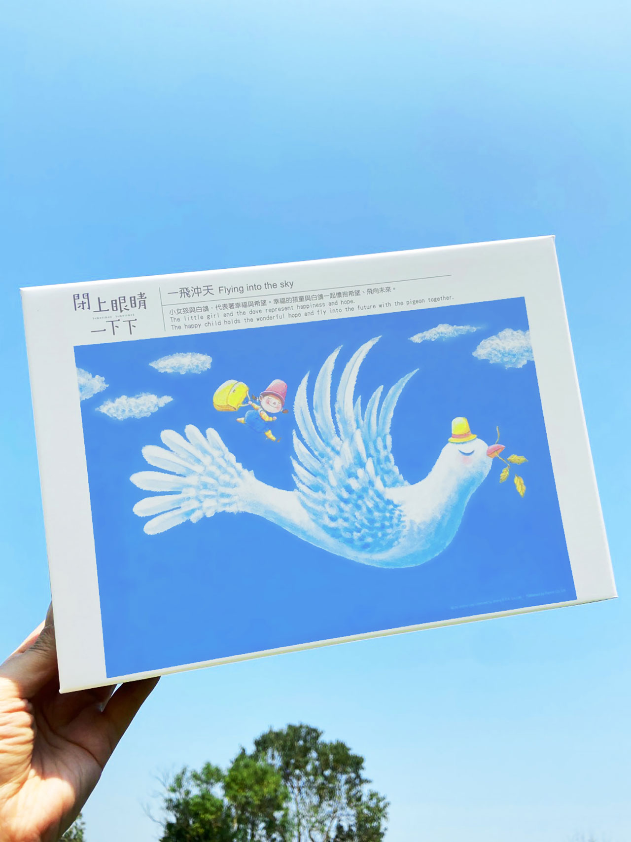 幸福的孩童与白鸽一起怀抱希望、飞向未来。