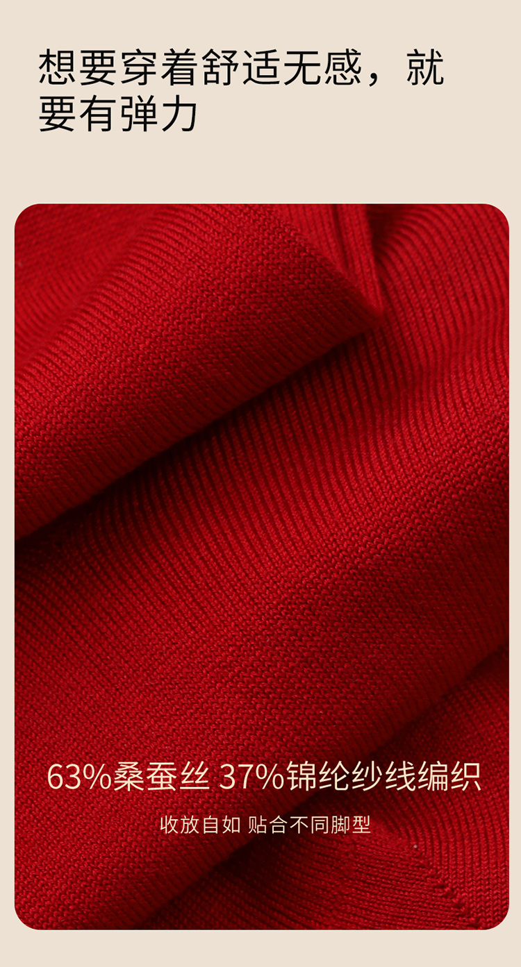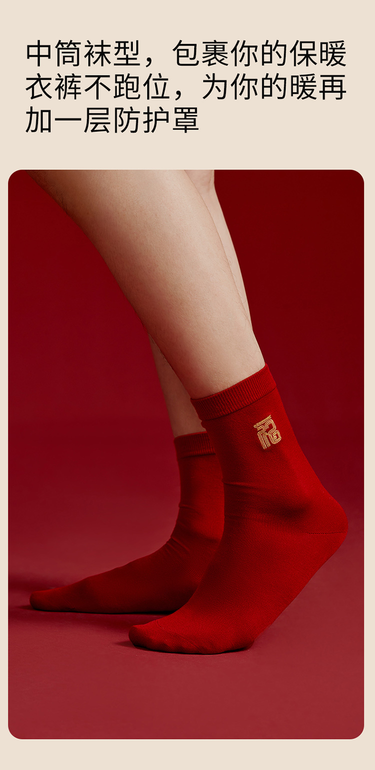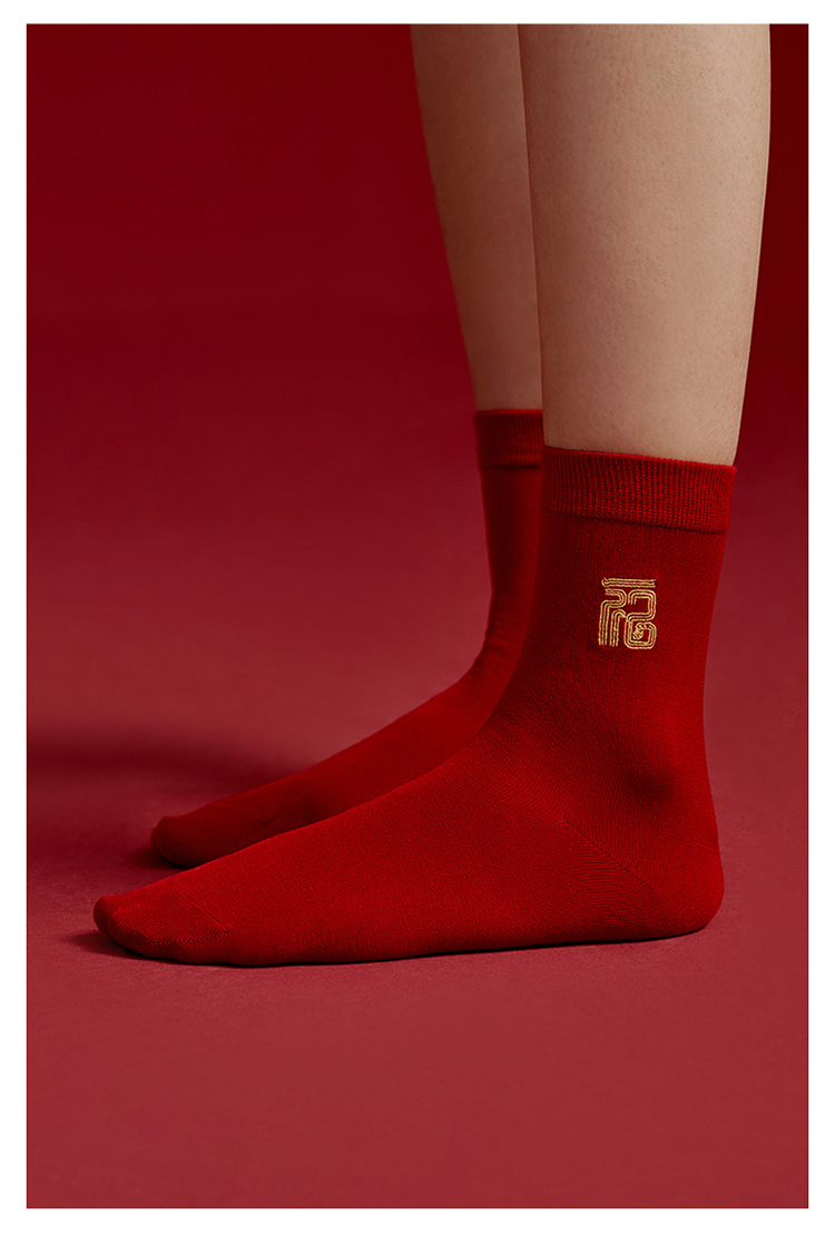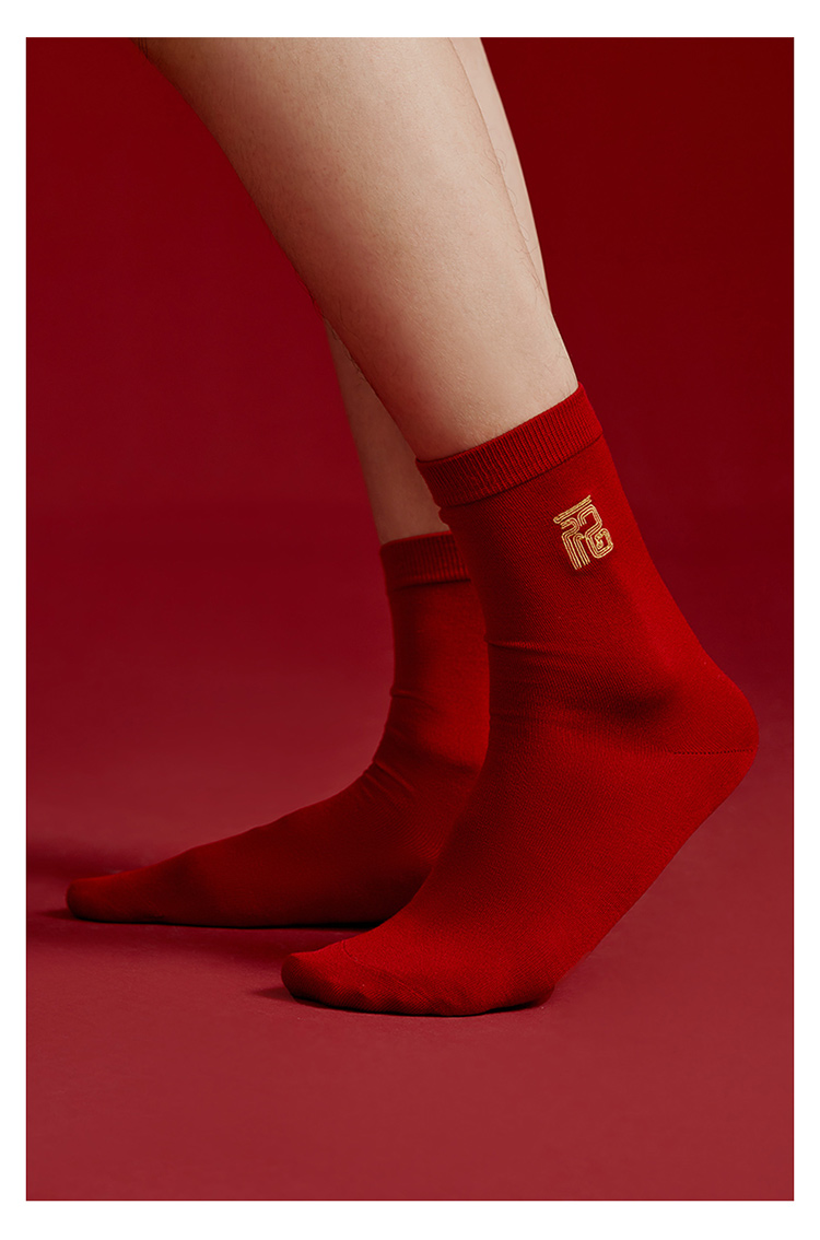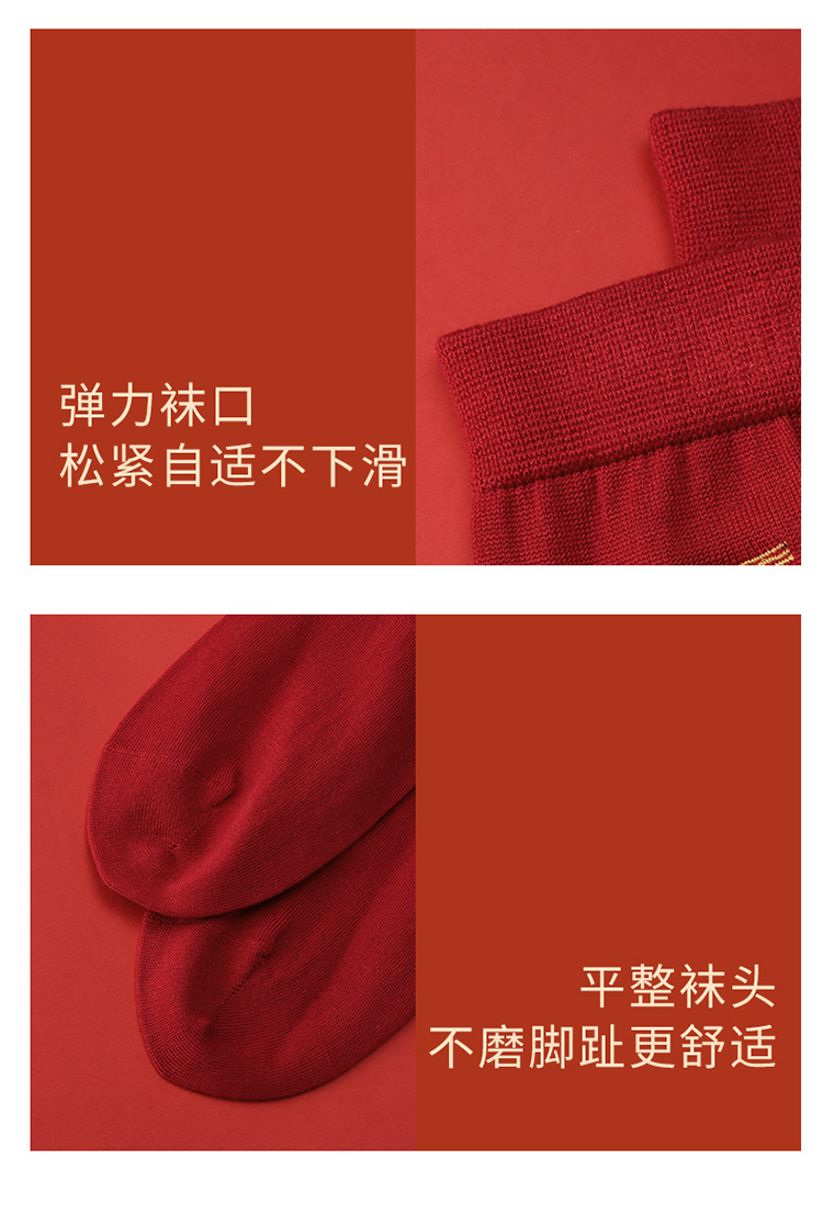 金三塔 绢丝混纺情侣袜红色新年礼盒2双装