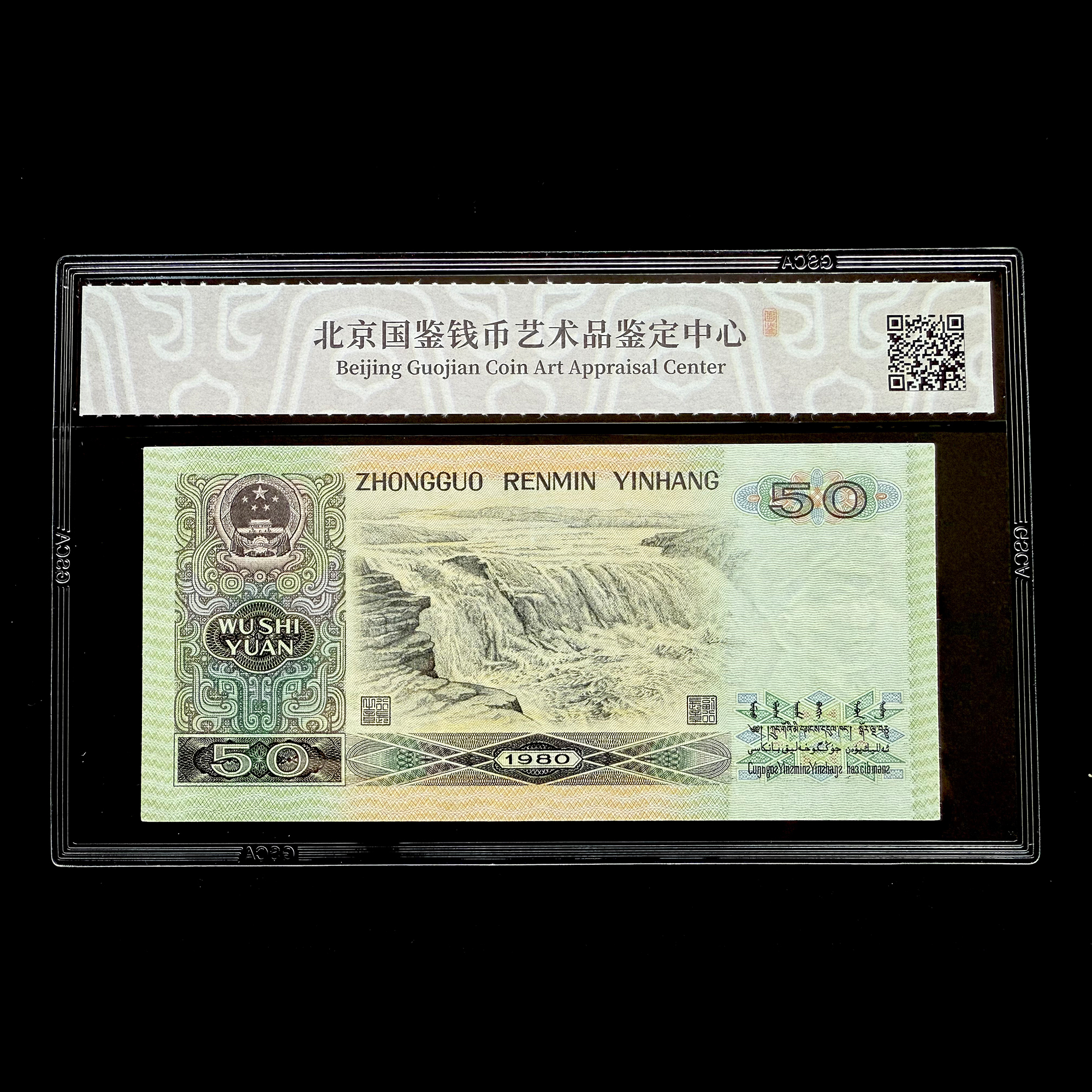 【背面主景】黄河壶口瀑布,搭配藏、蒙、维、壮四种民族文字及花纹。