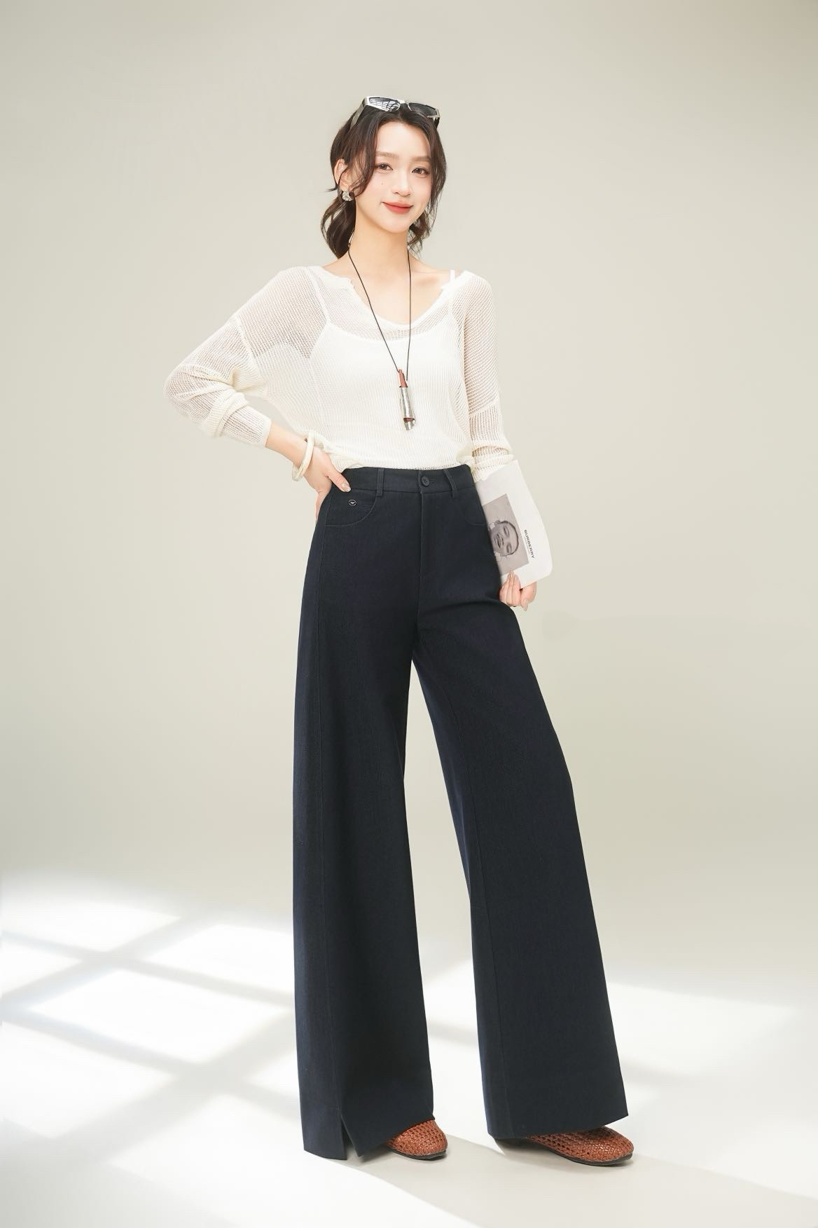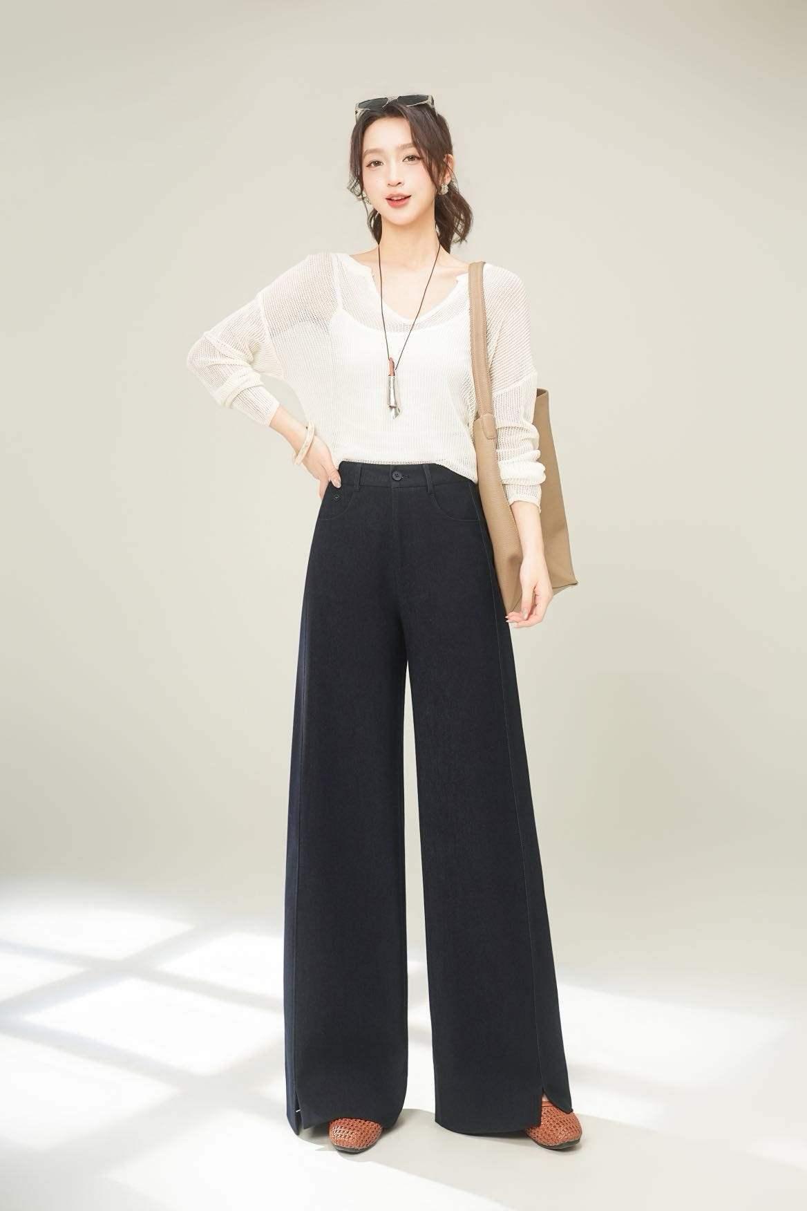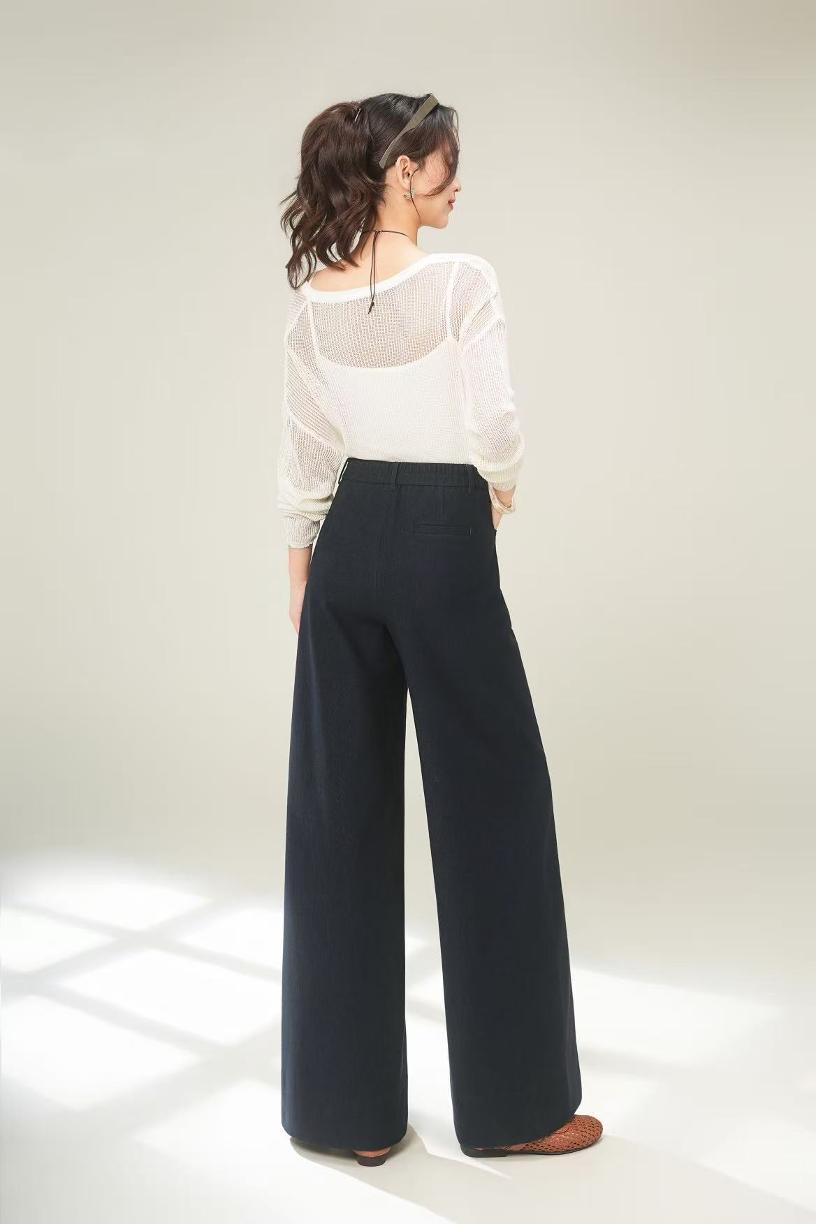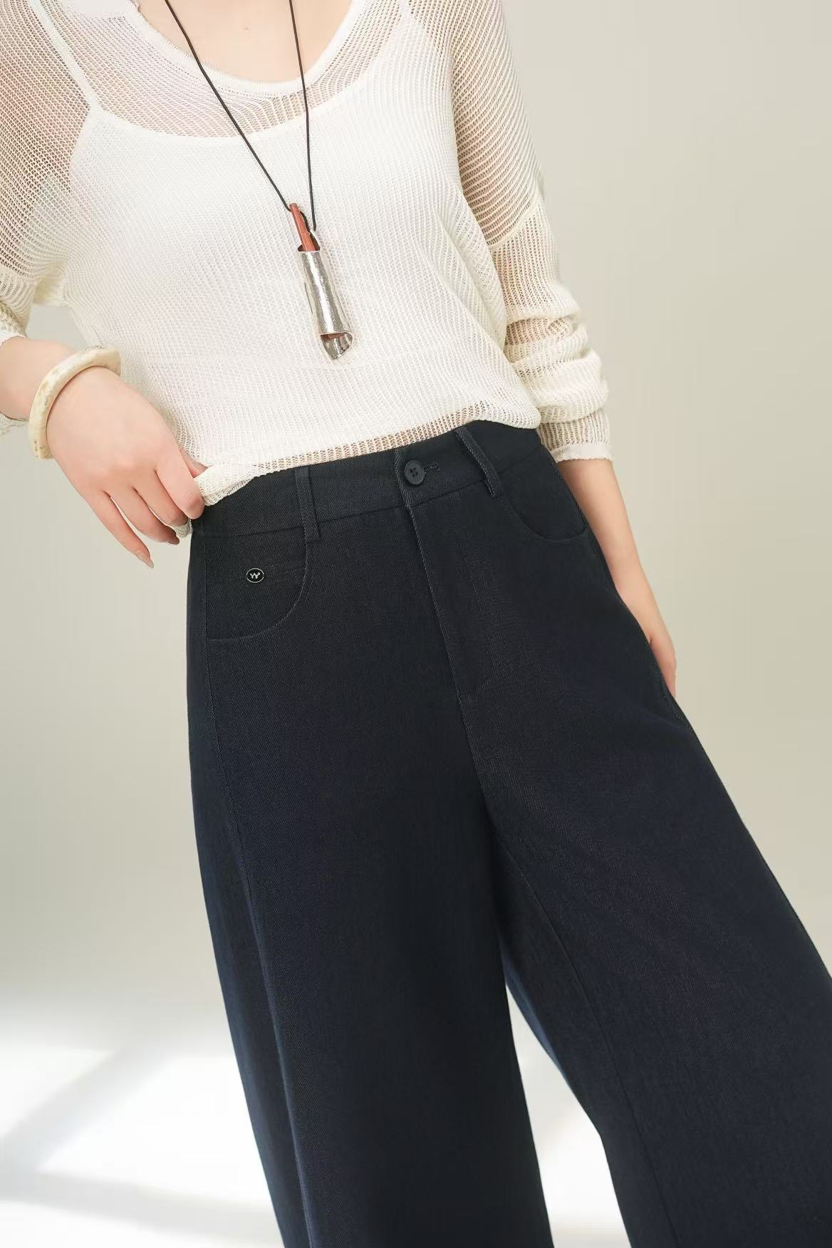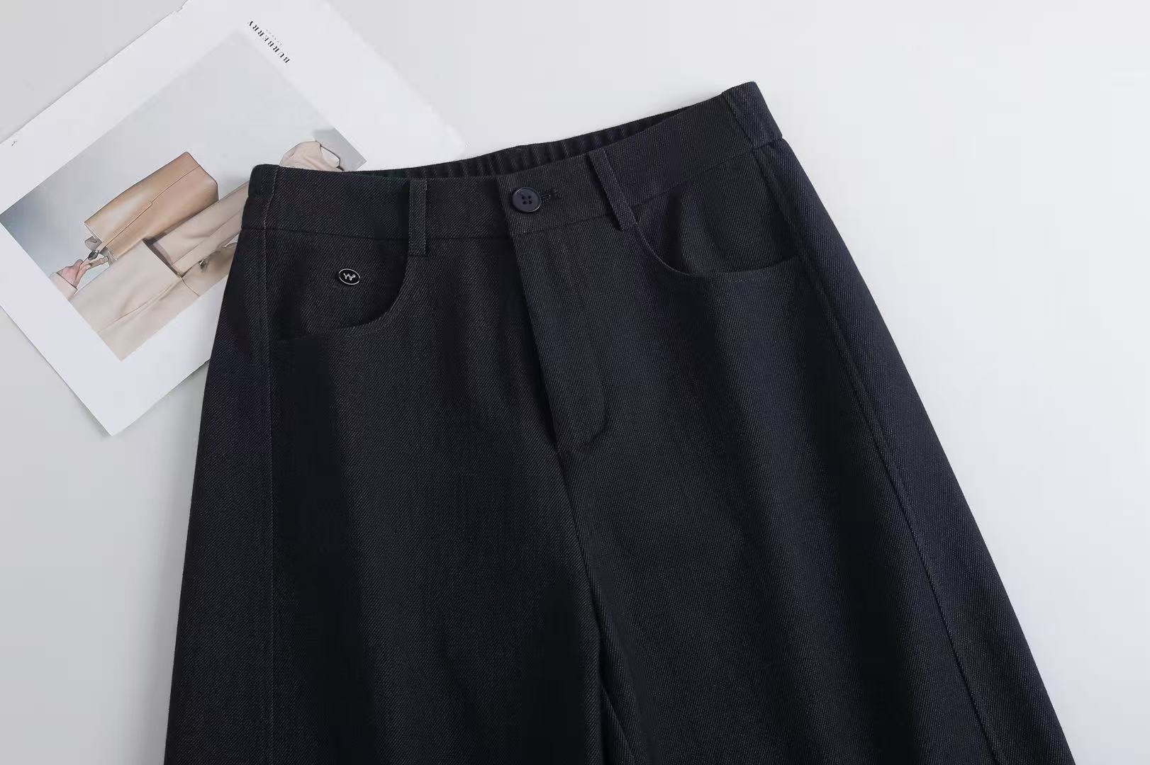 藏青直筒弯刀裤
