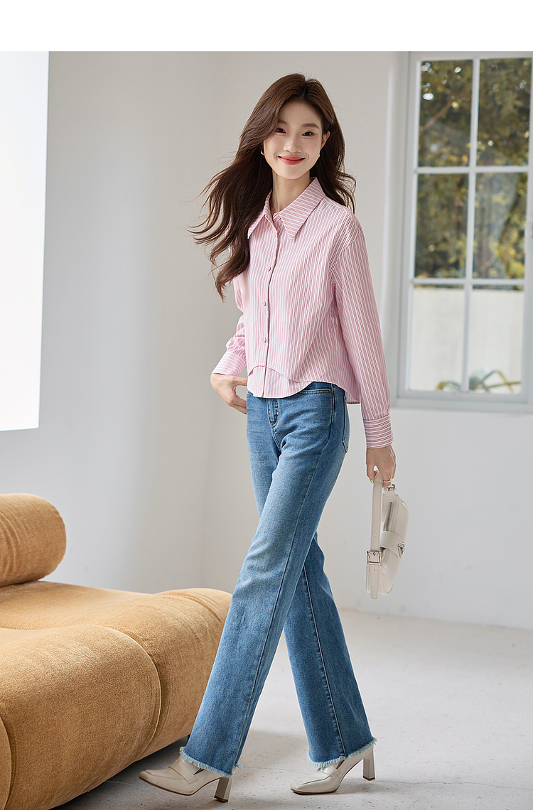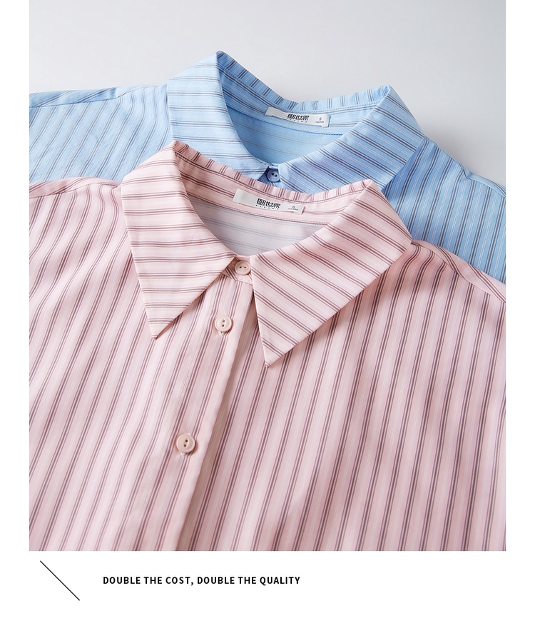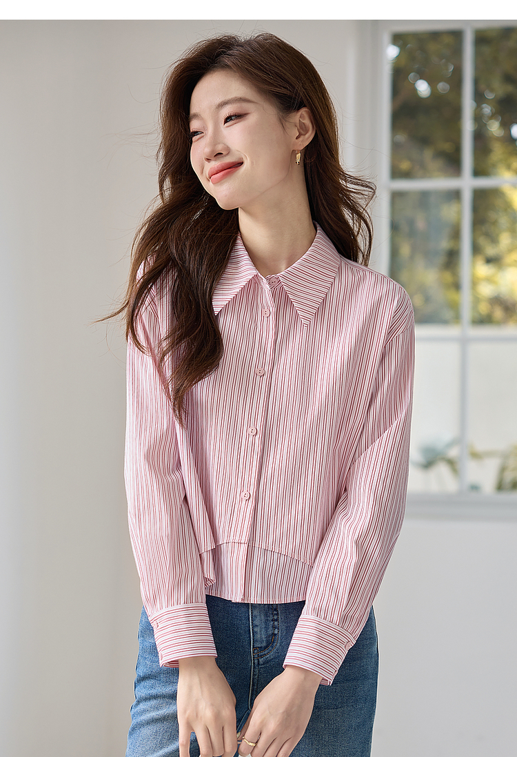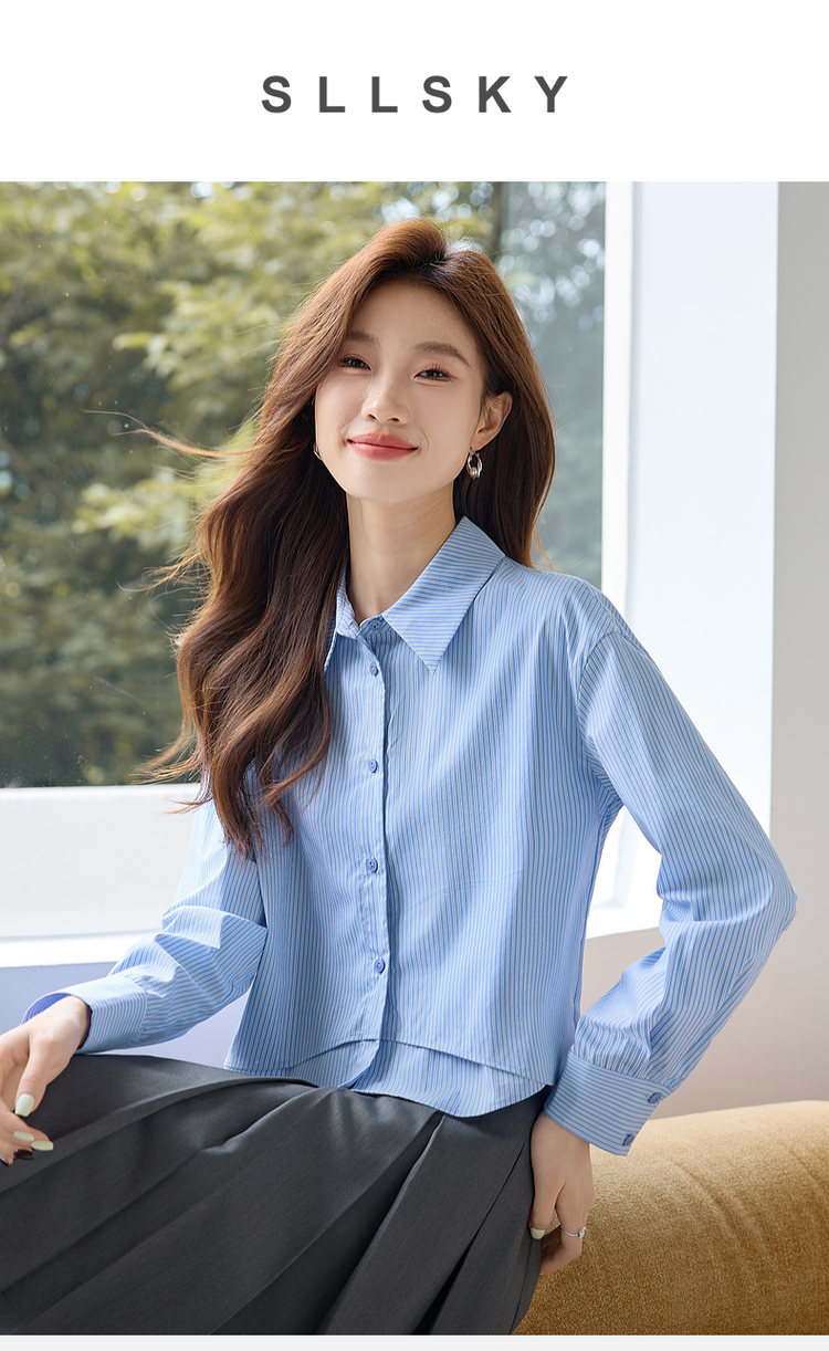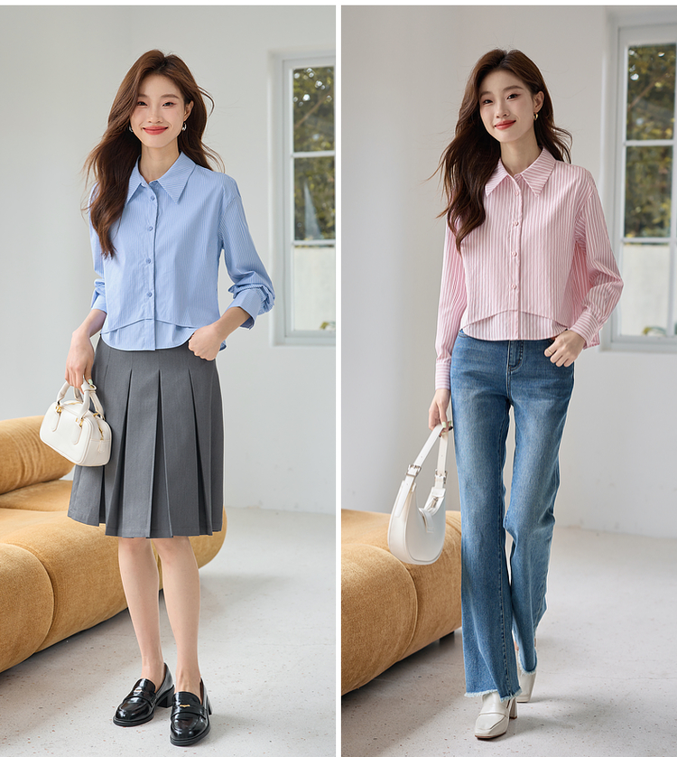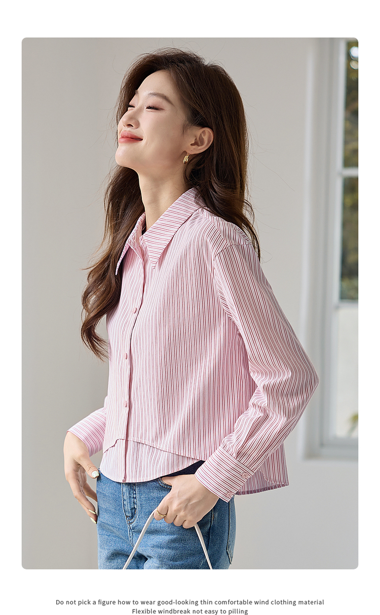 【年终特卖】熙世界设计感别致条纹衬衫2025早秋新款通勤小个子拼接时尚衬衣