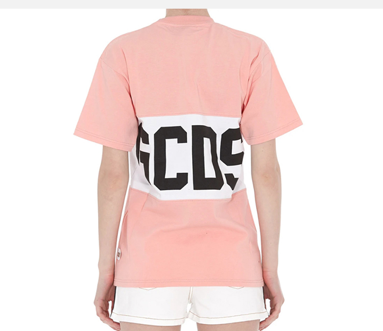 GCDS 女士字母徽标印花棉质圆领短袖T恤 粉色 ACC94W020779 PINK