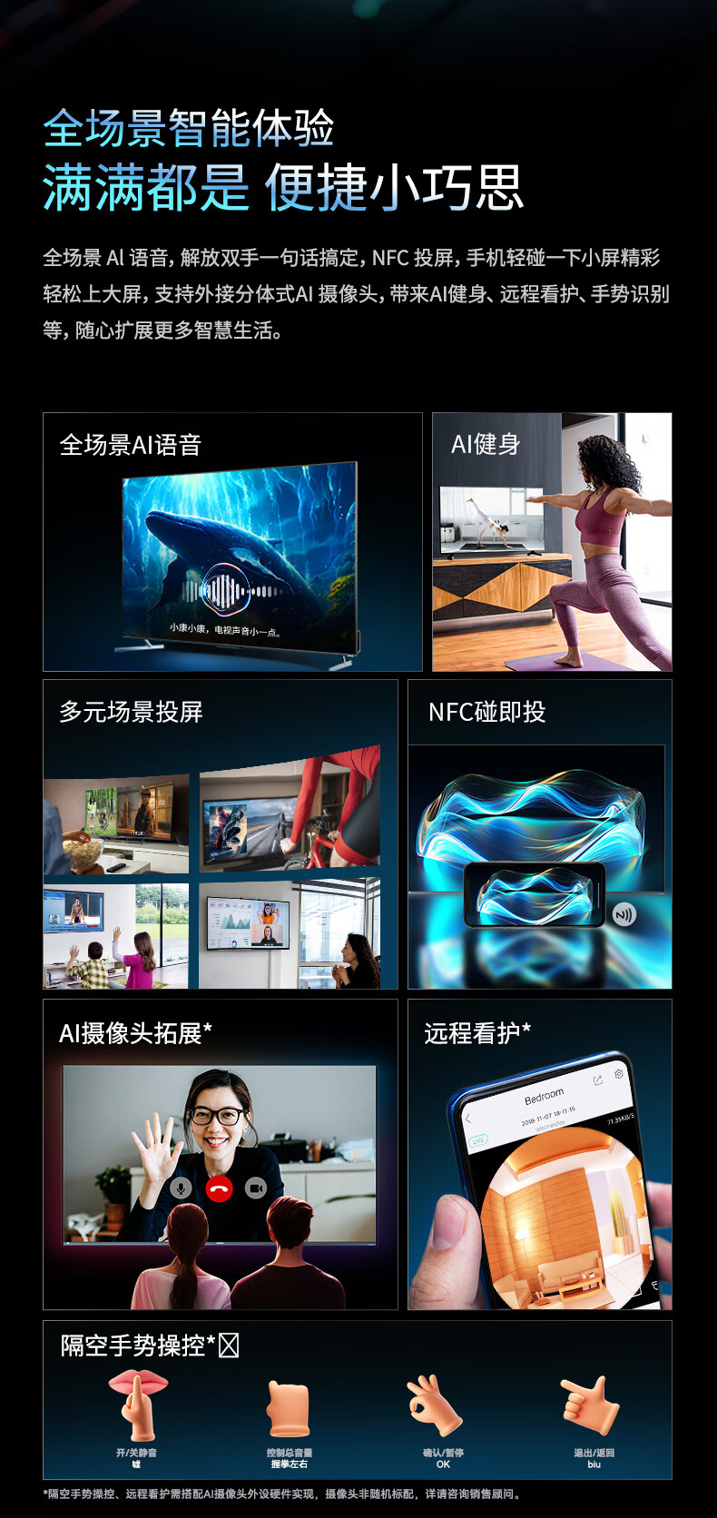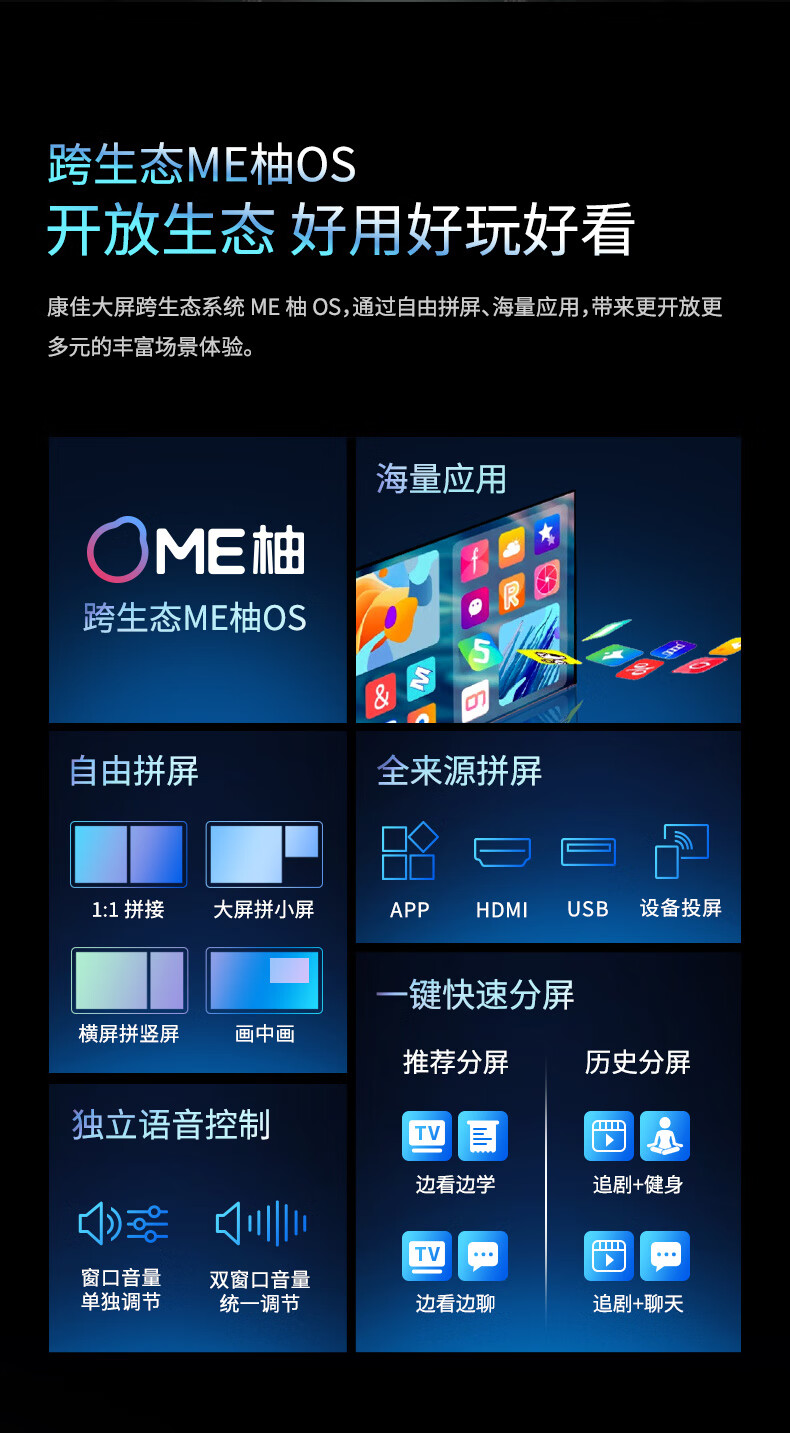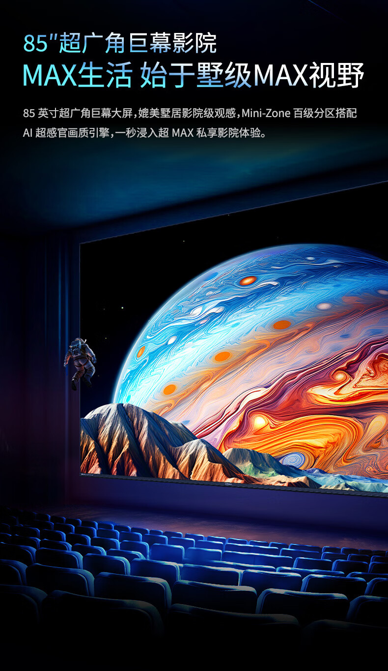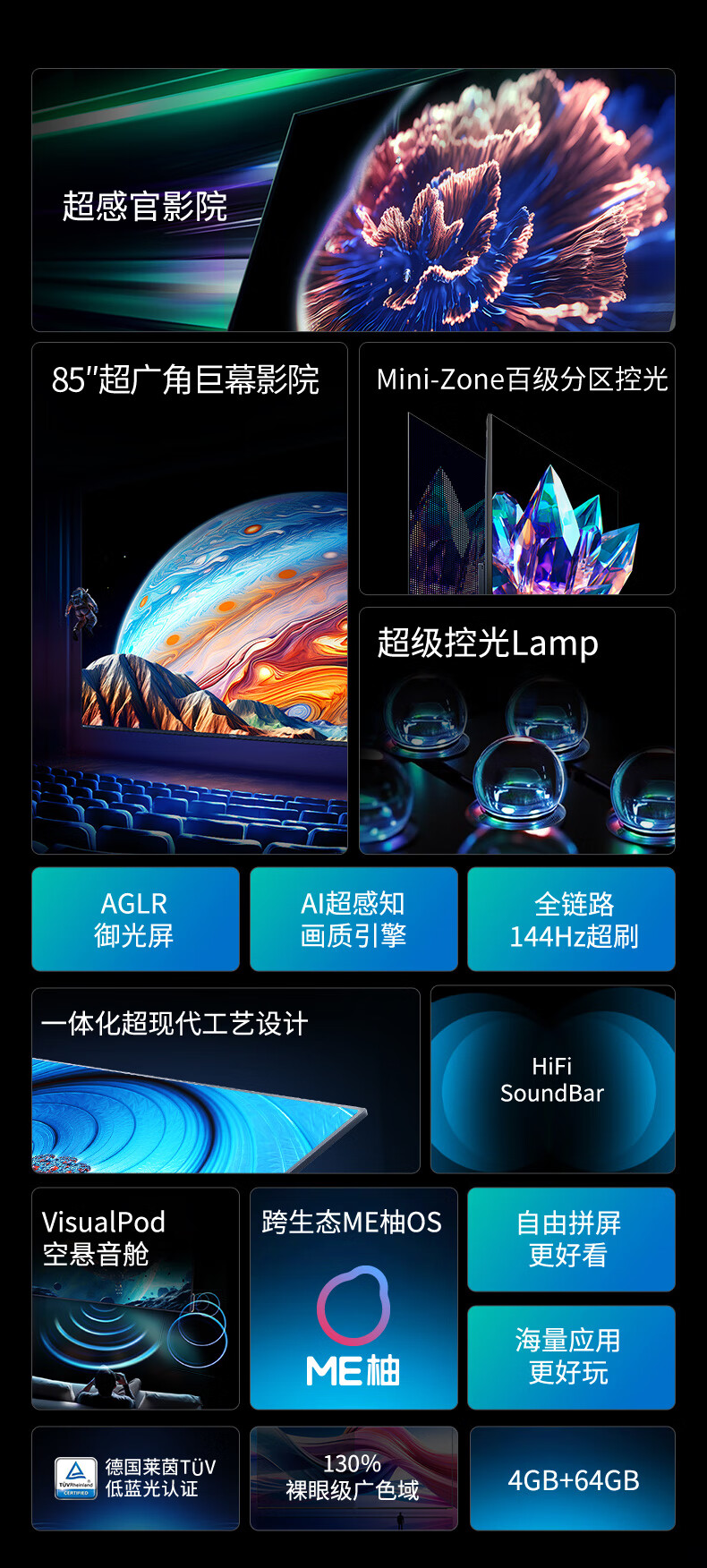 康佳电视 85M6 85英寸 百级分区 144Hz游戏电视 4+64G 莱茵护眼 4K超清全面屏智能液晶平板电视机