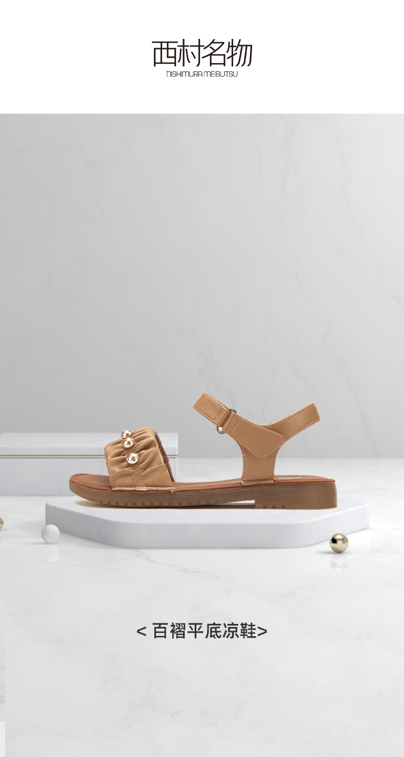 西村名物2021夏季新款平底凉鞋女一字带休闲百搭仙女风超火T21BG23691