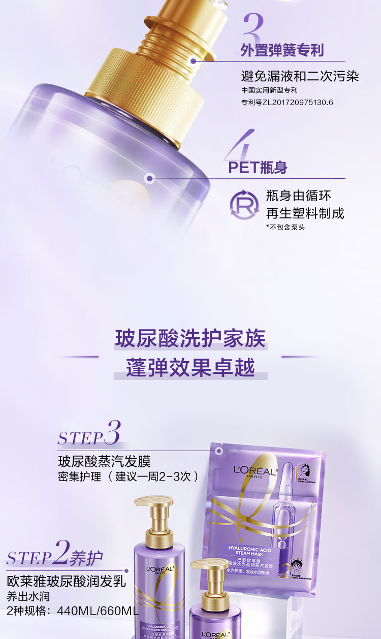 欧莱雅玻尿酸水光盈润洗发露 440ml