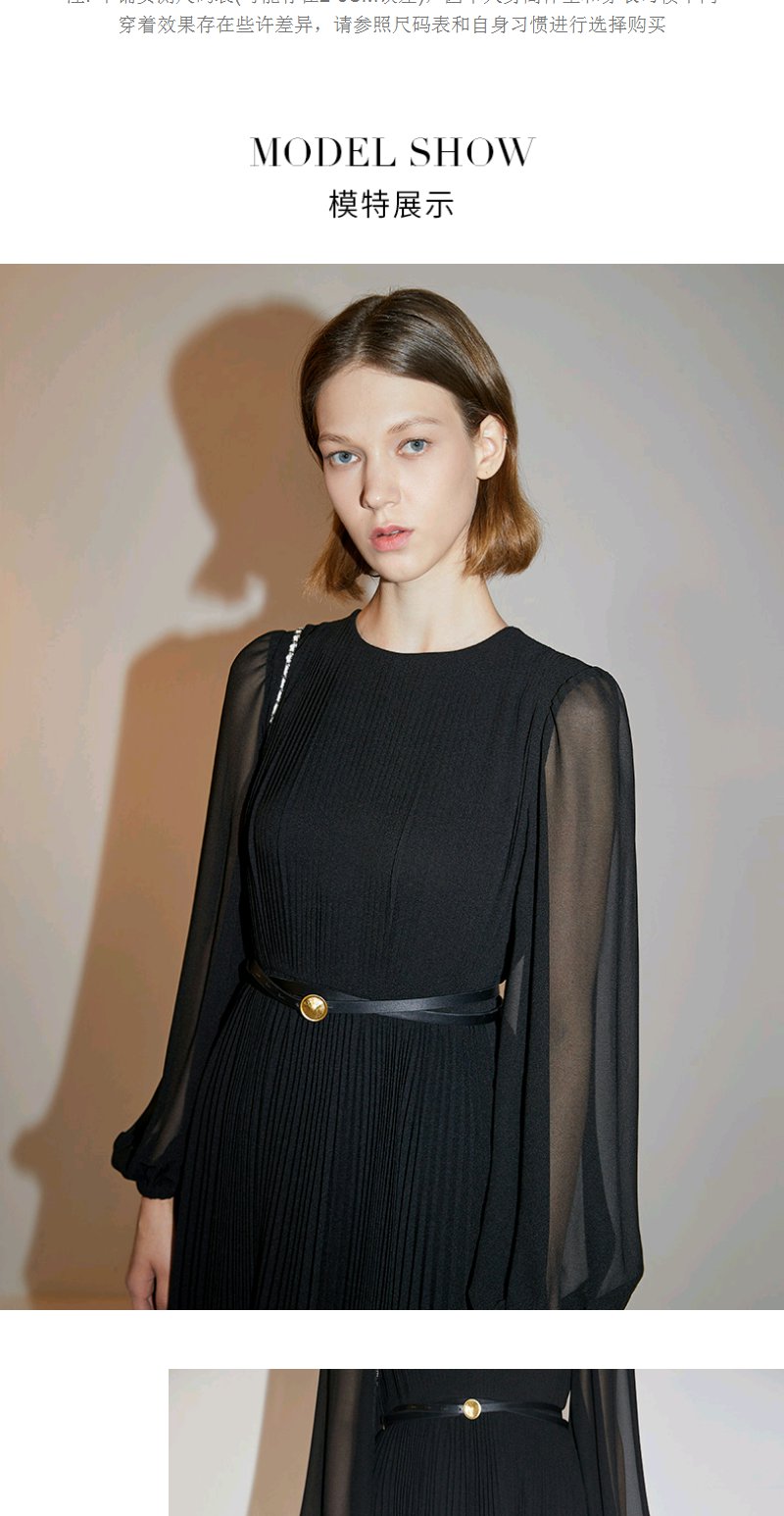 Miss Sixty2020秋季新款百褶长袖高腰雪纺连衣裙603DJ0480000