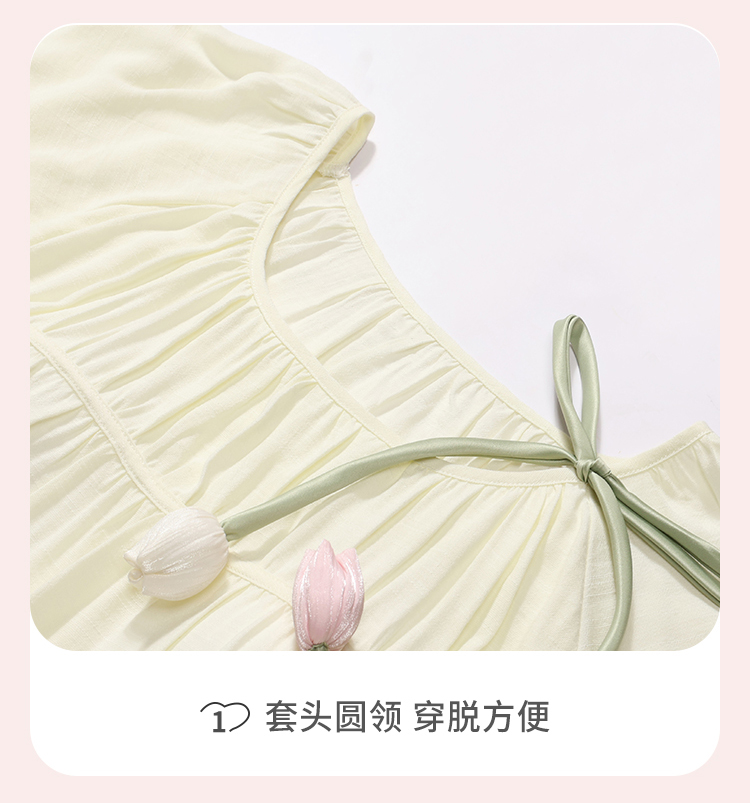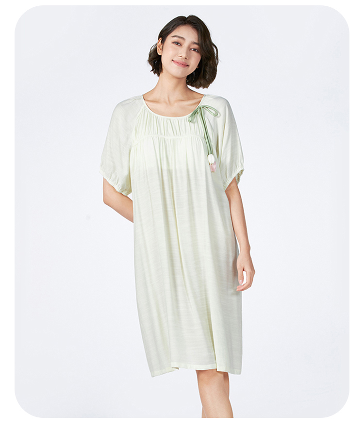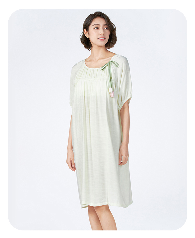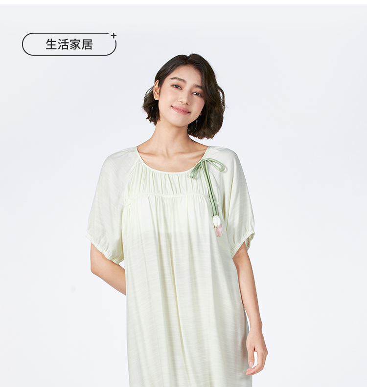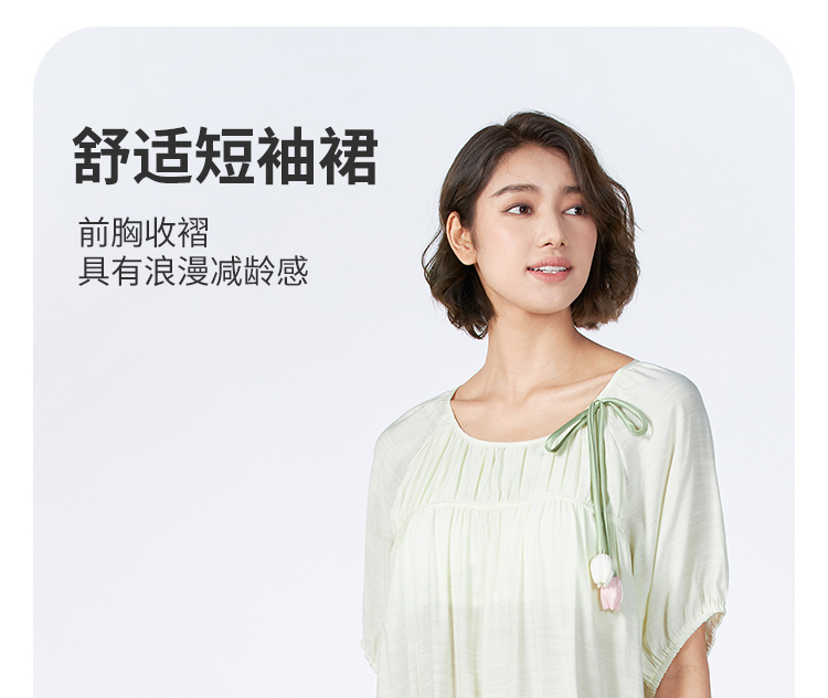 都市丽人生活家居女士梭织棉短袖裙薄麻麻纱短袖类LHH6D2