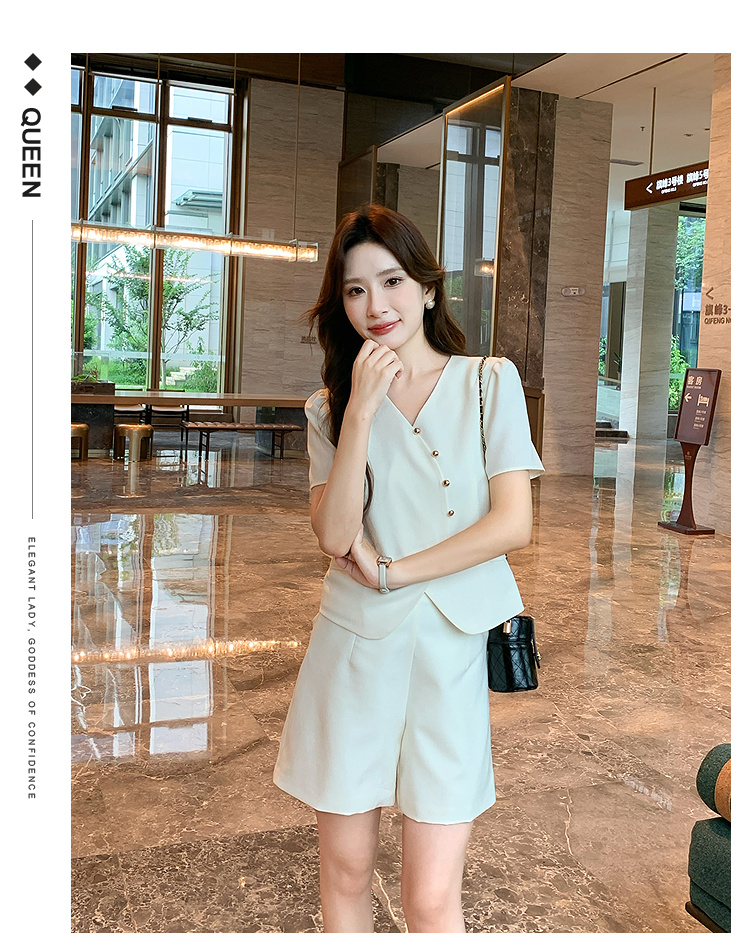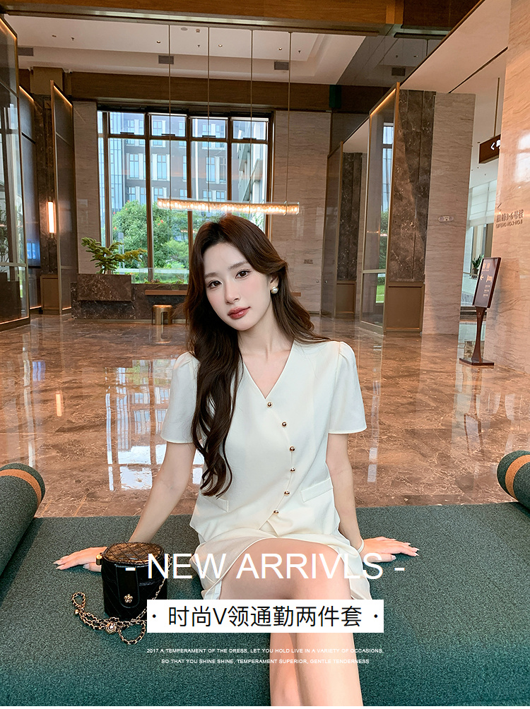 奢姿大码女装2025夏季气质V领两件套胖妹妹百褶半松紧时尚套装9952953493【1】