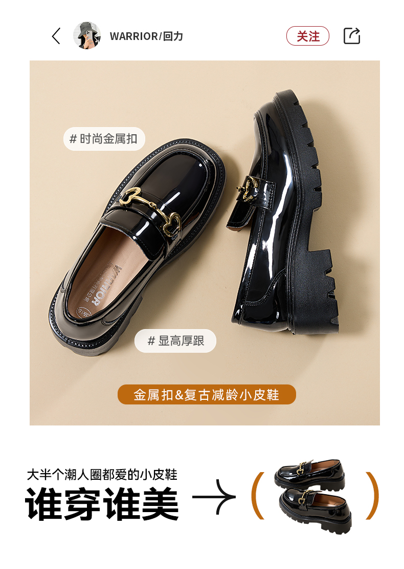 回力小皮鞋女鞋春秋英伦风新款女士黑色厚底系带增高乐福鞋时尚女