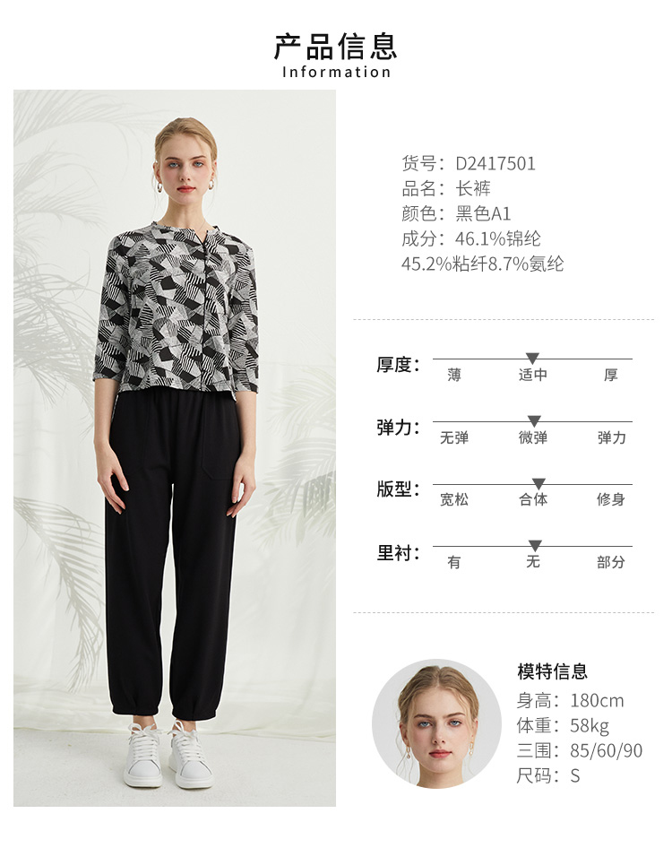 VIVIAN LIU薇薇安刘D2417501梅春女装新款松紧腰显瘦斜插兜长裤