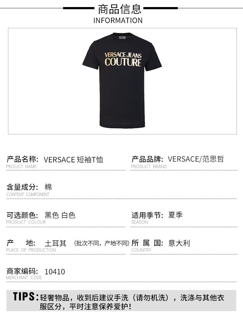 VERSACE JEANS COUTURE范思哲男装男士潮流时尚休闲短袖T恤 10410
