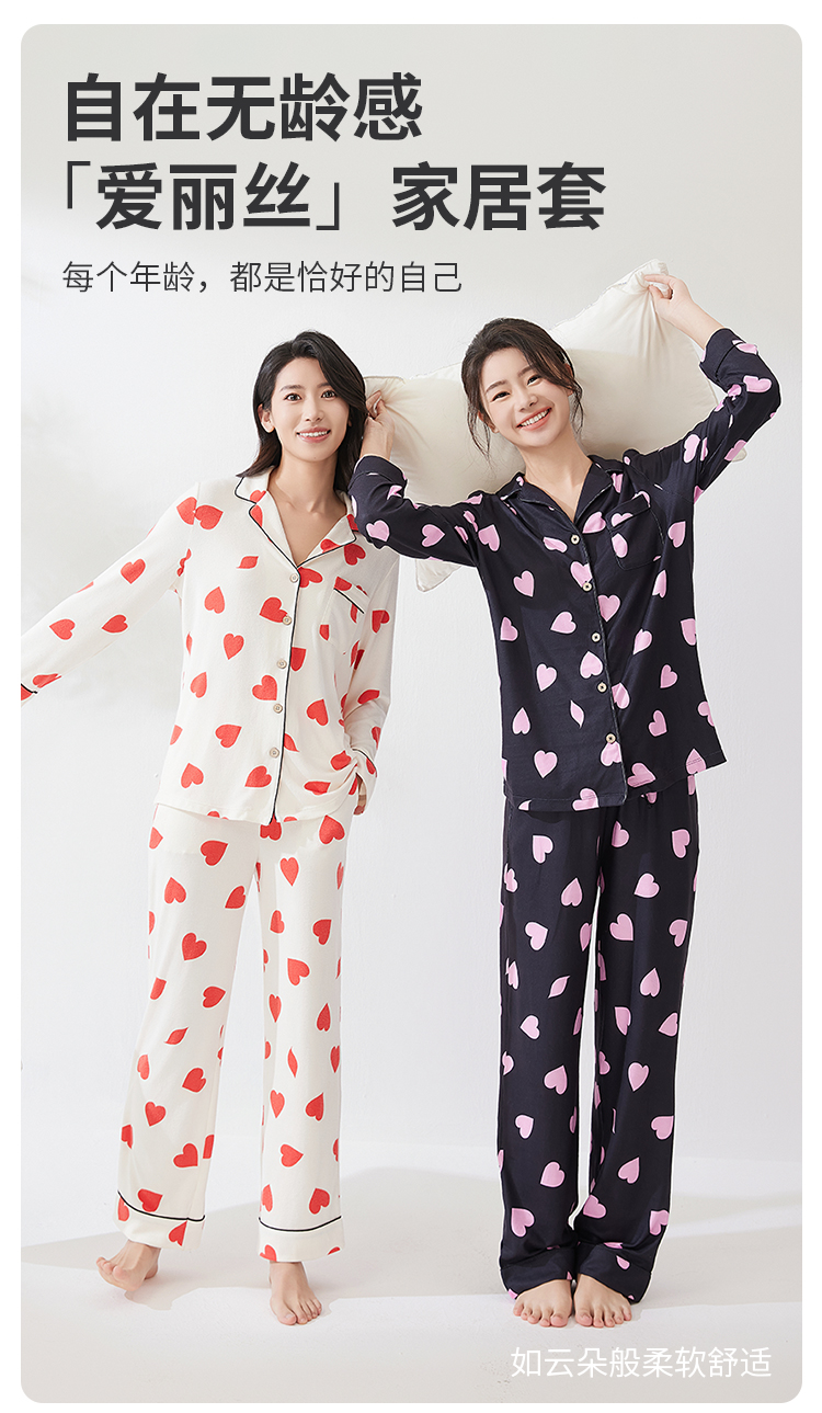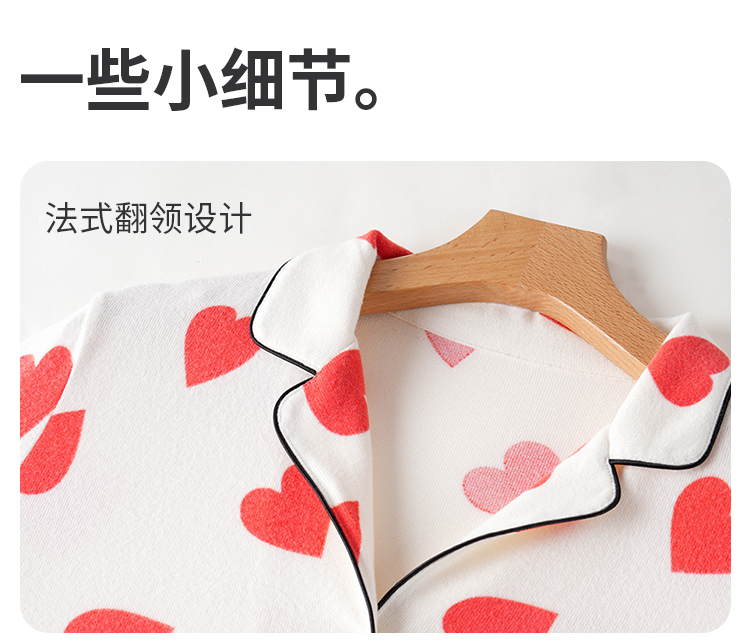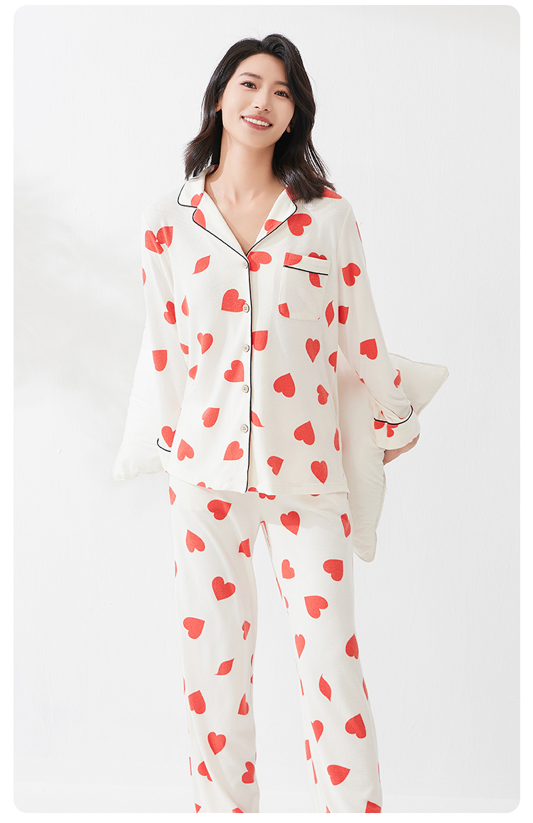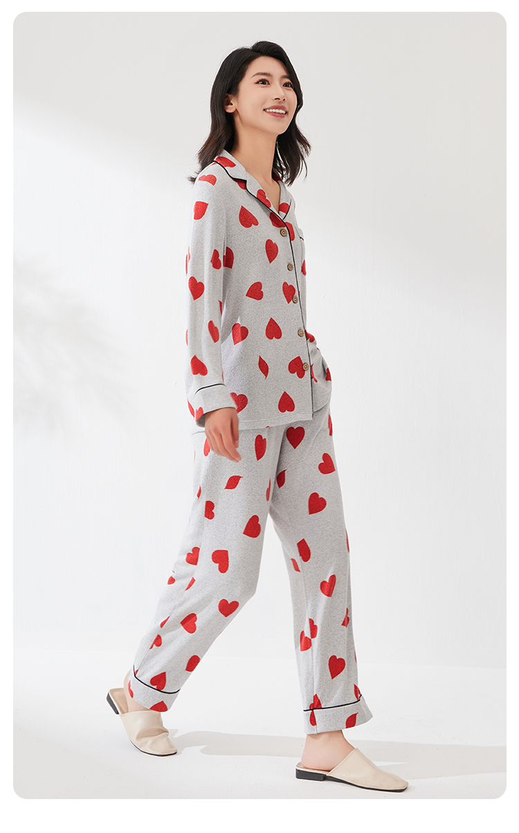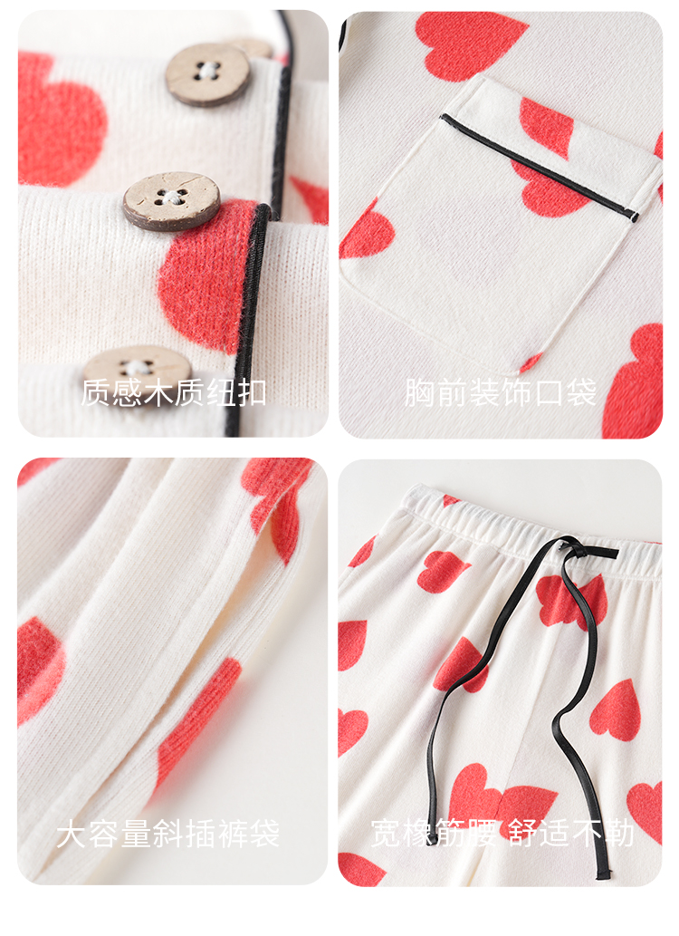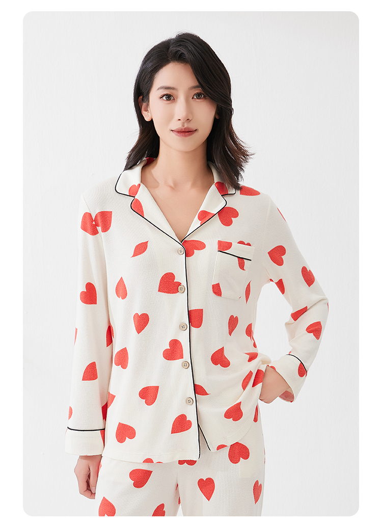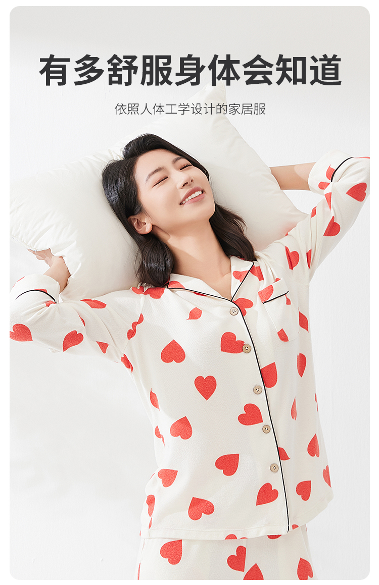 I'd爱帝爱心印花家居套法式衬衫开门襟长袖套装