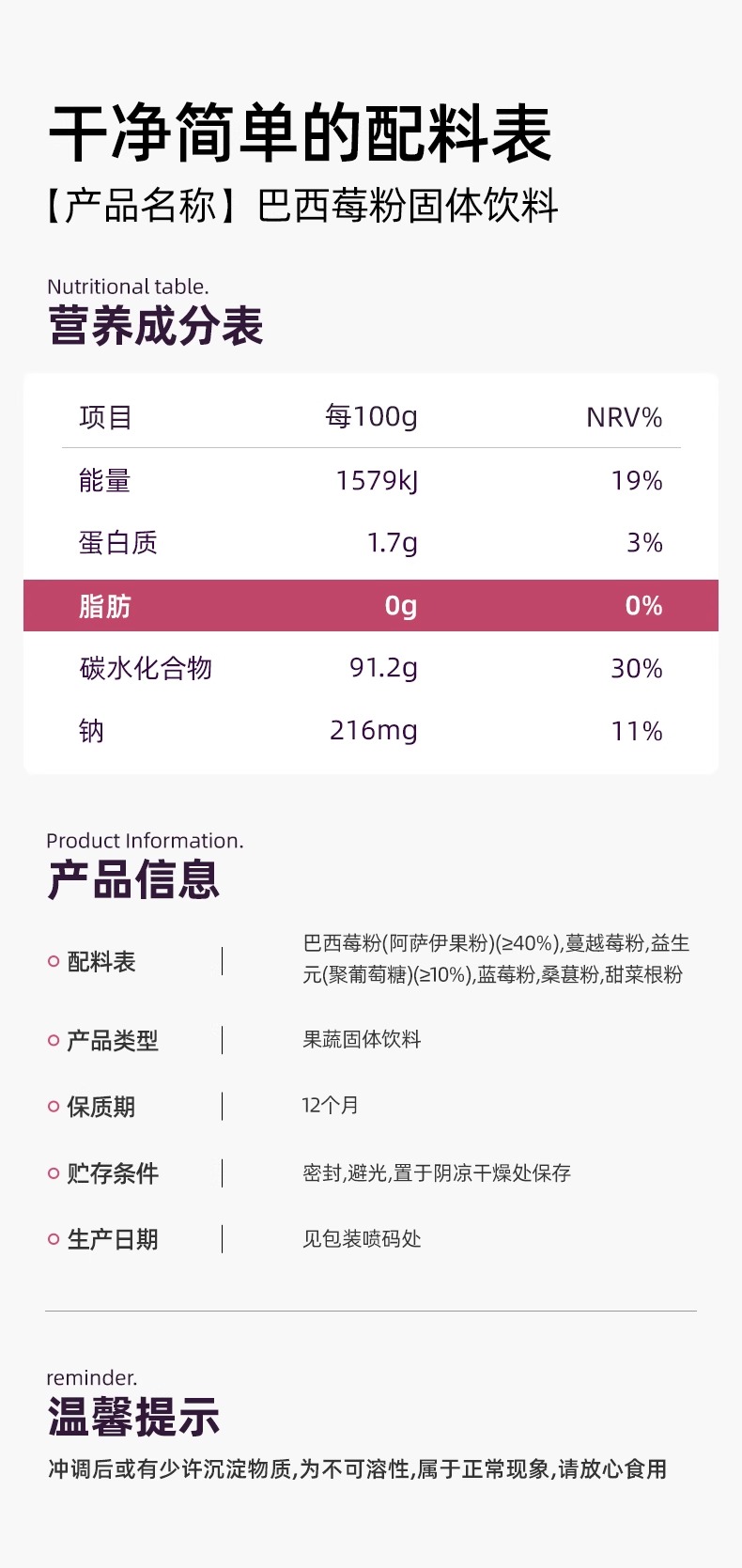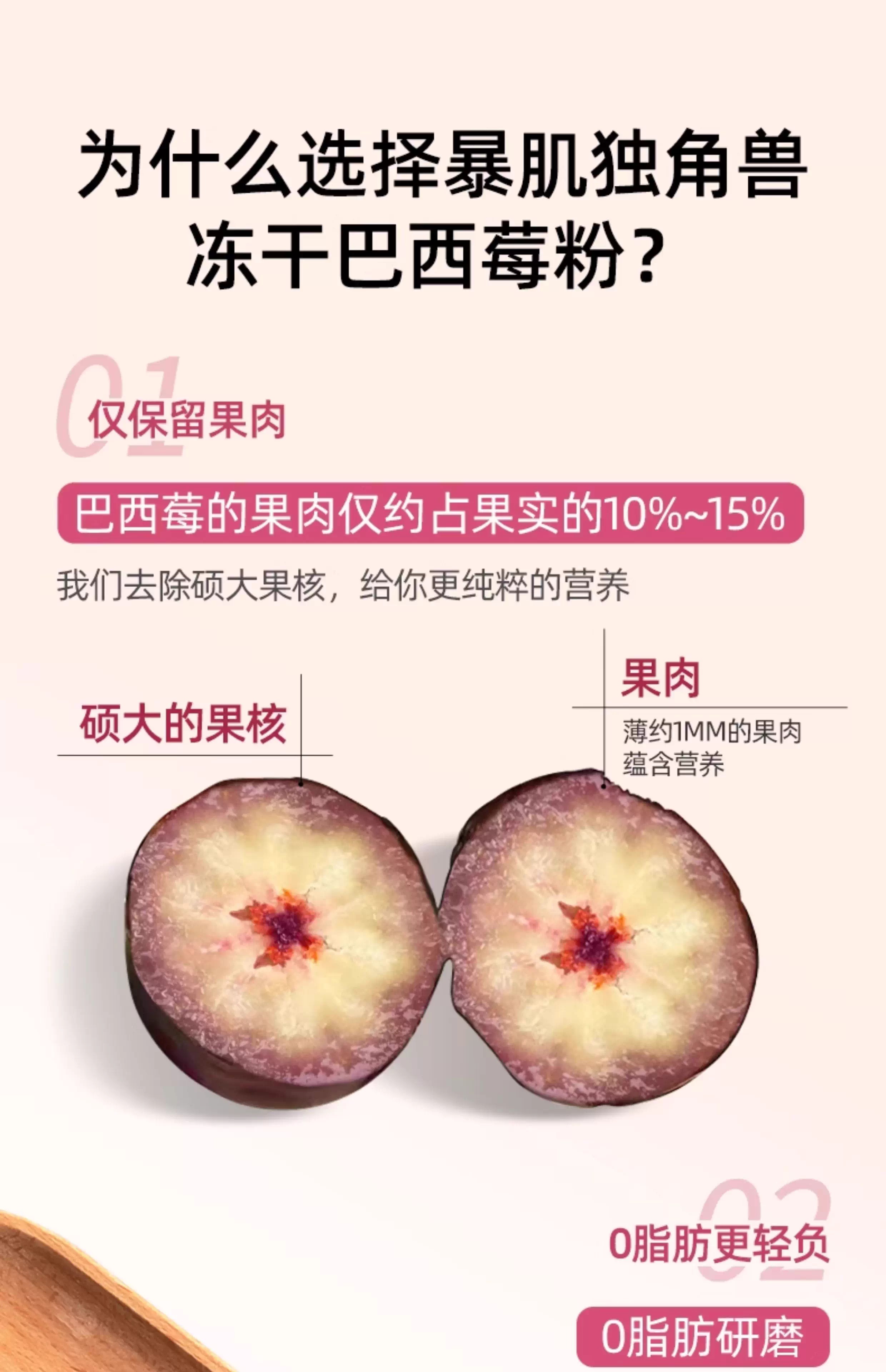 【暴肌独角兽】冻干巴西莓粉官方旗舰店丰富花青素膳食纤维冲饮果蔬粉