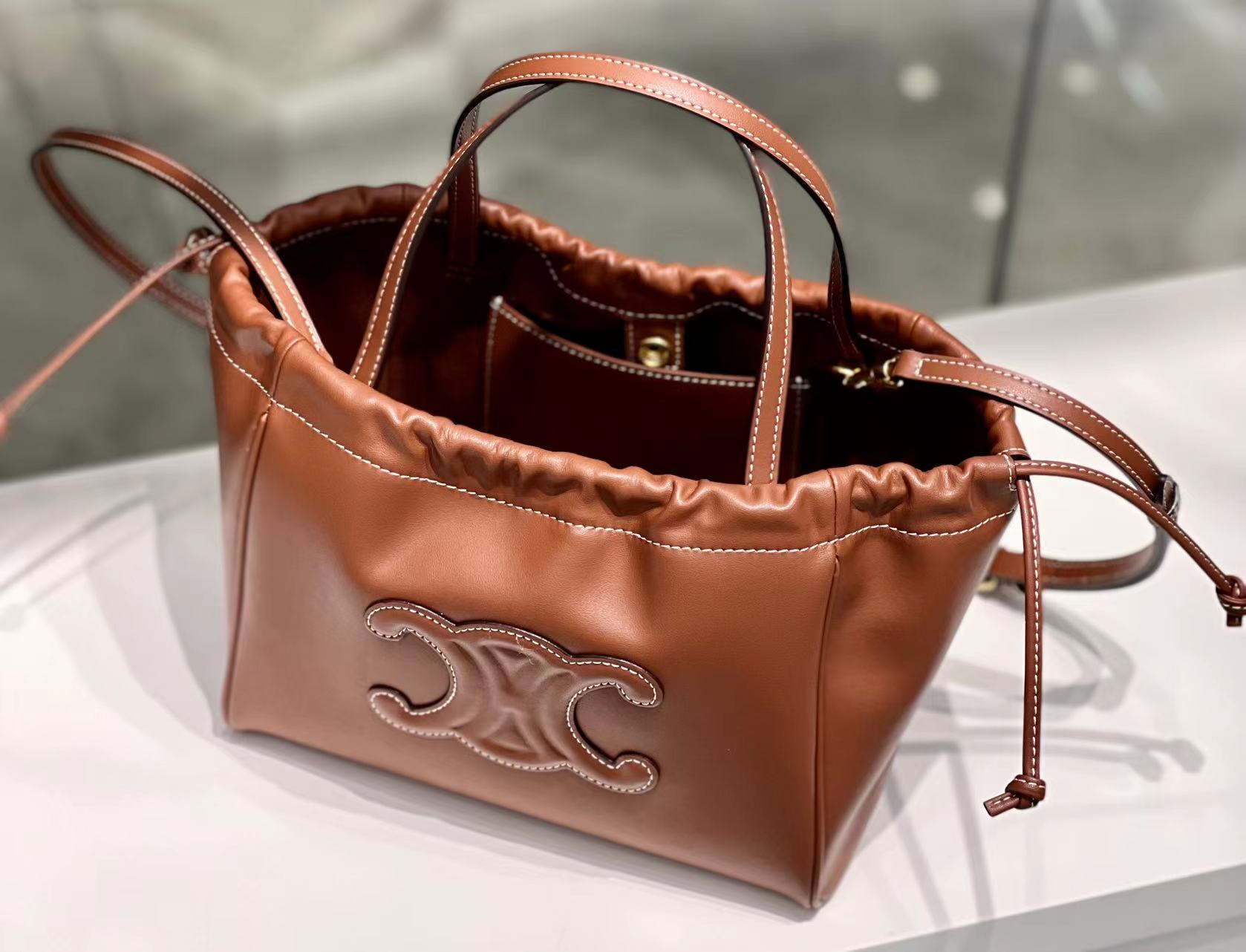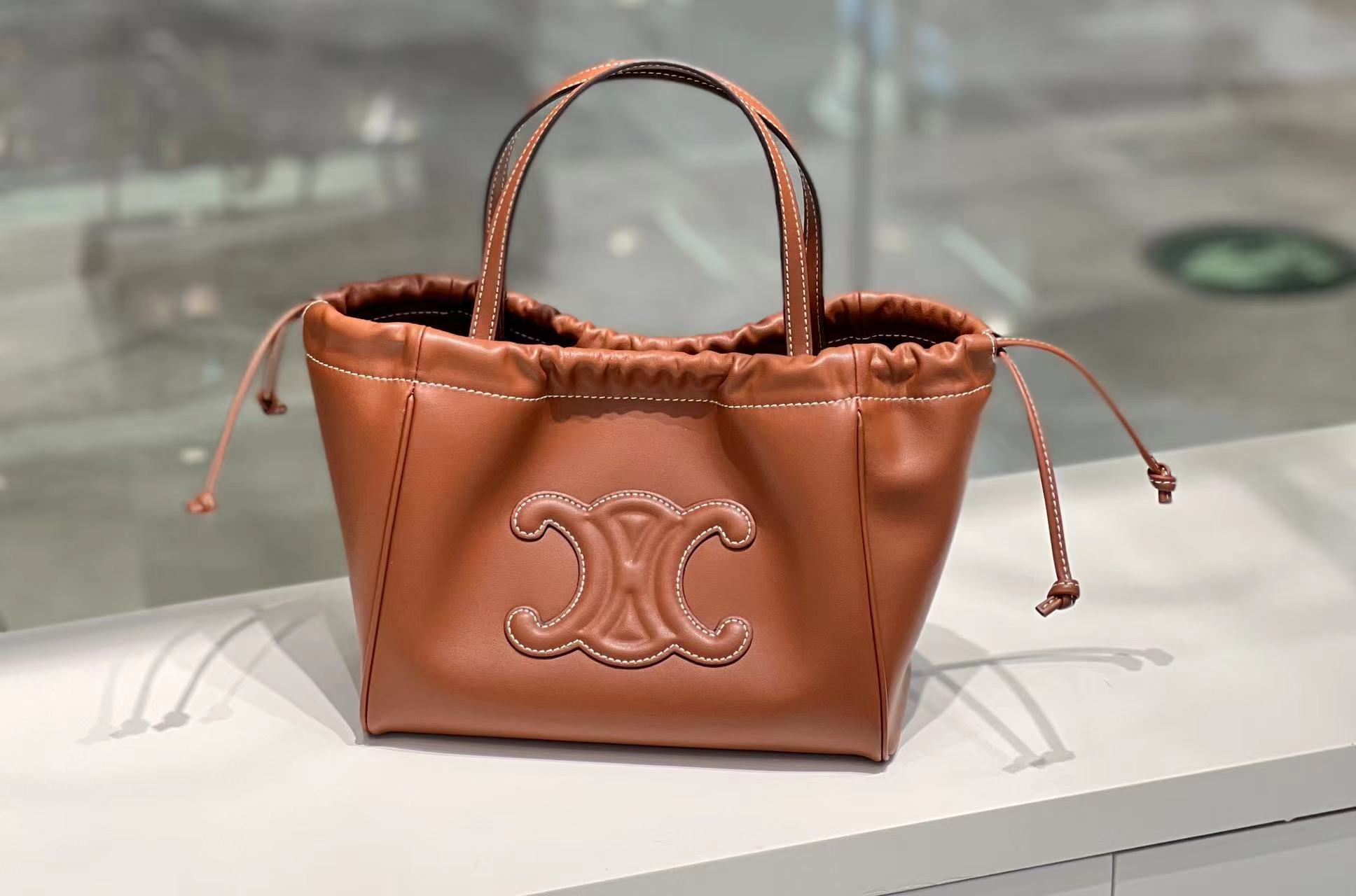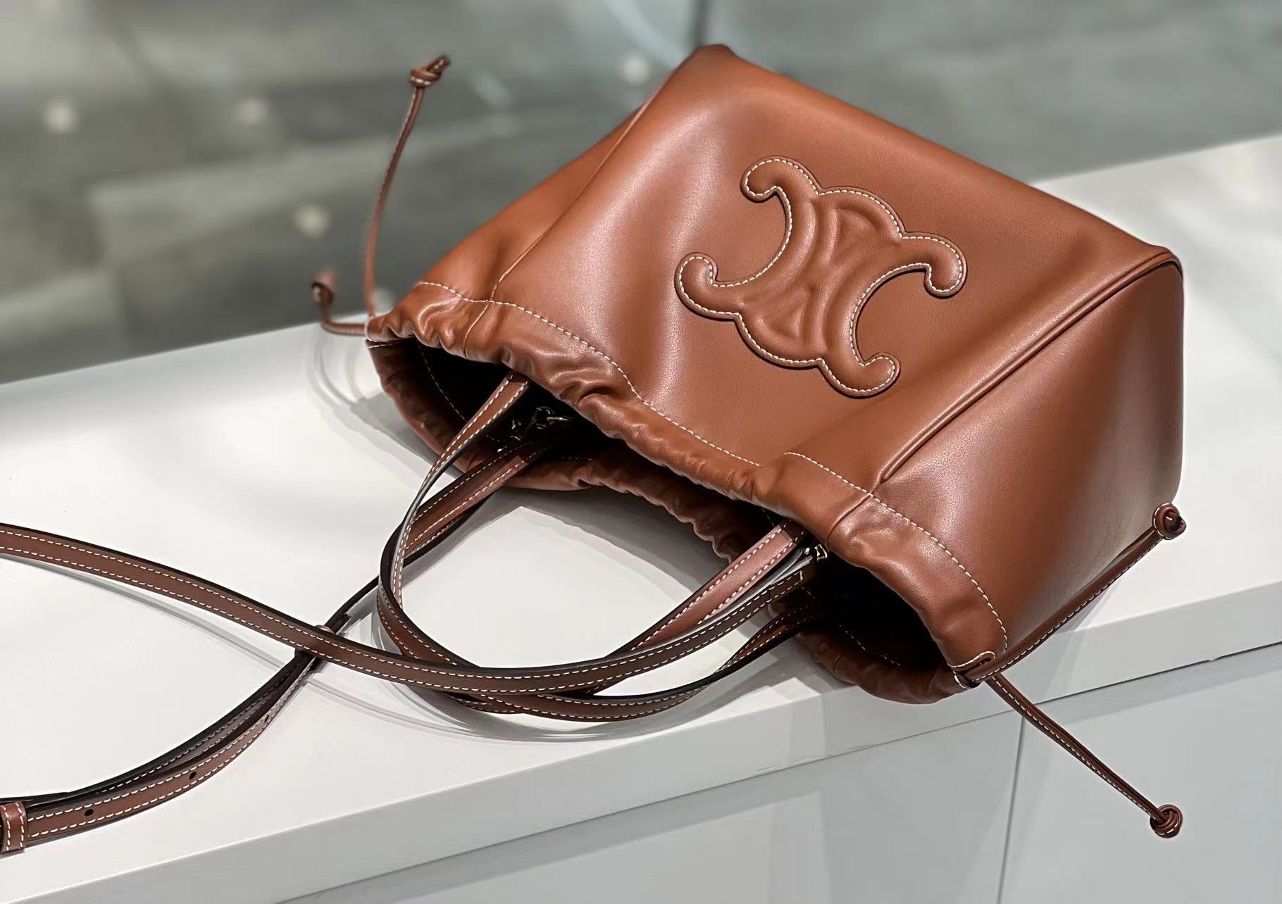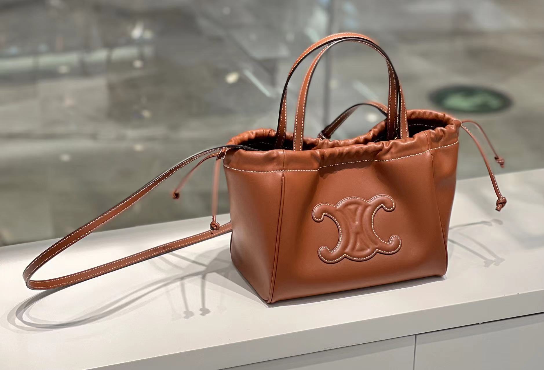 6613 # 焦糖色 软萌的外面却很有质感 优雅复古的风格瞬问不要感觉太良好 包包的灵魂来自于抽绳拉好之后存在褶皱的优雅风格 复古的凯旋门元素也是点睛之笔