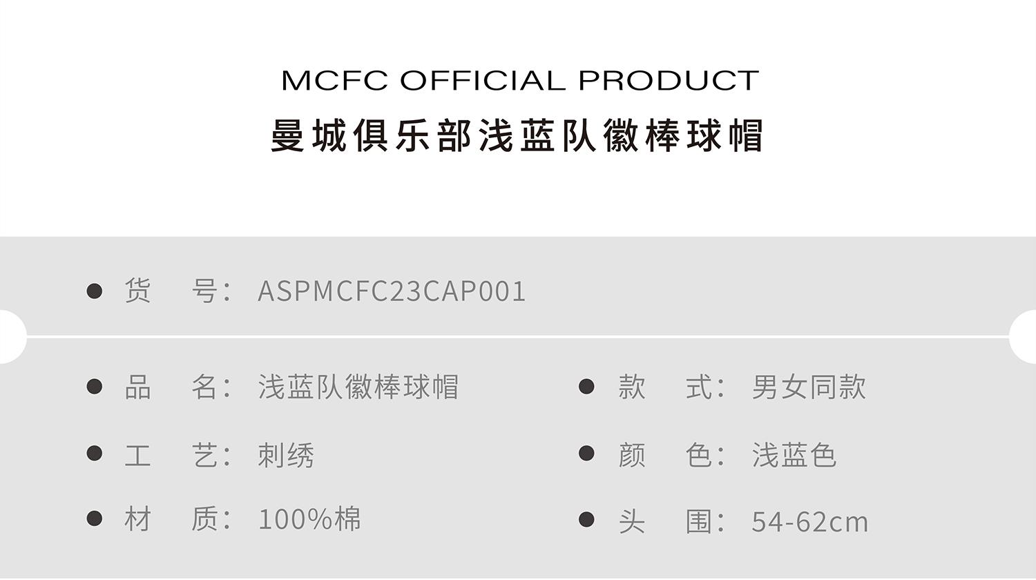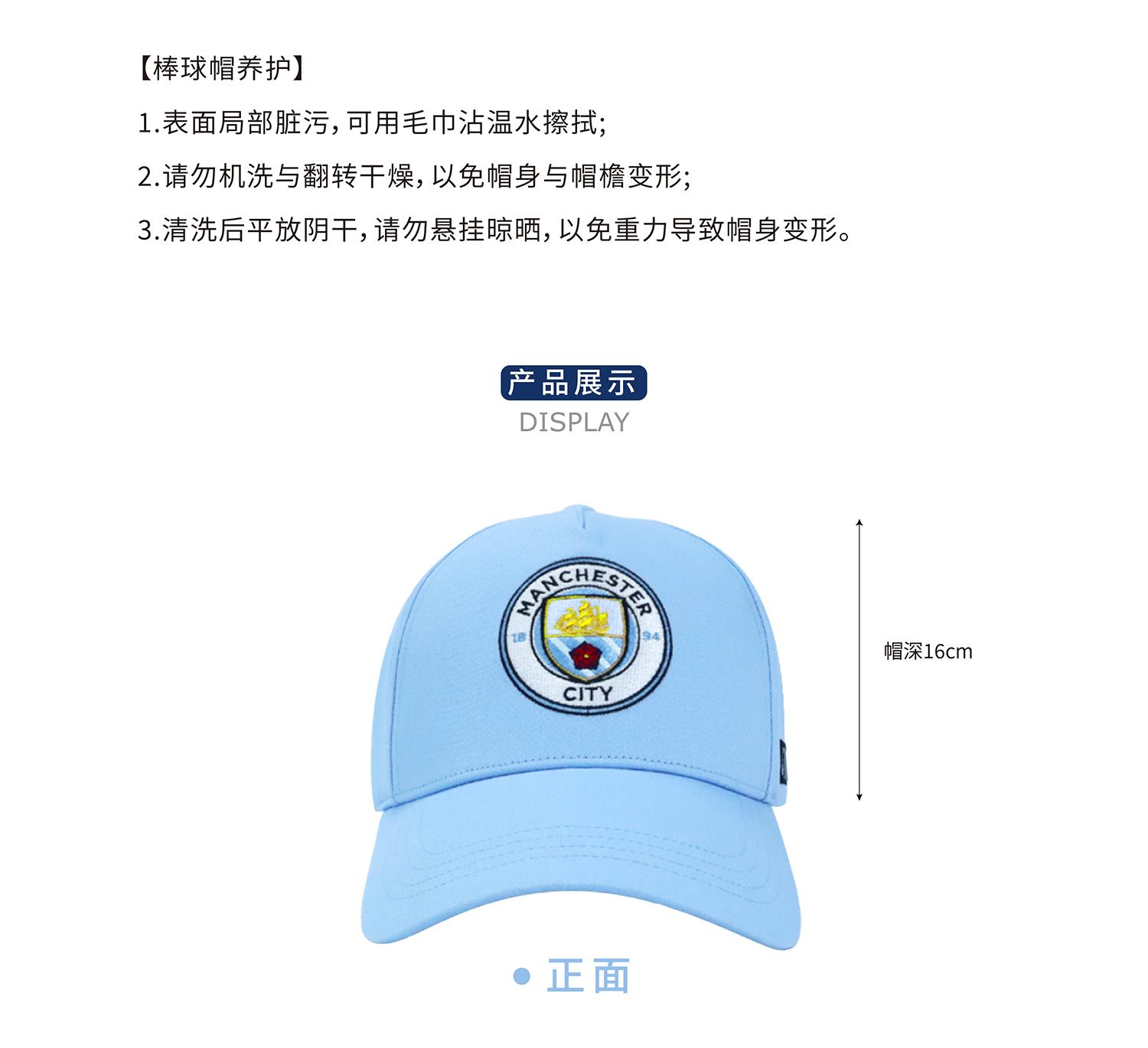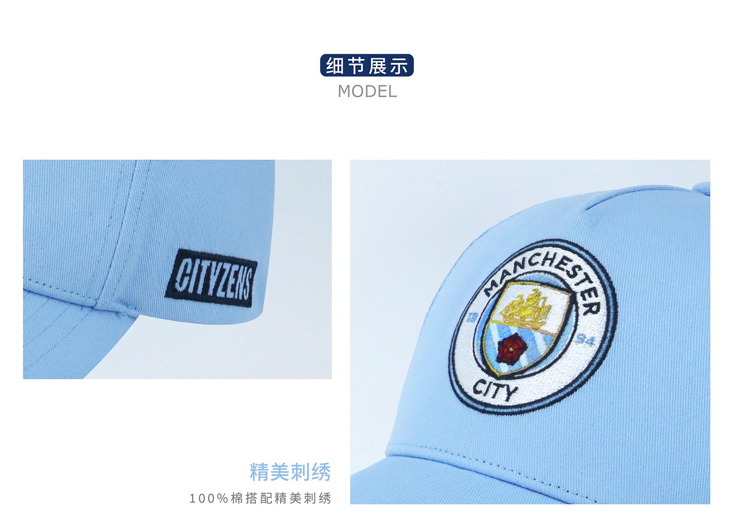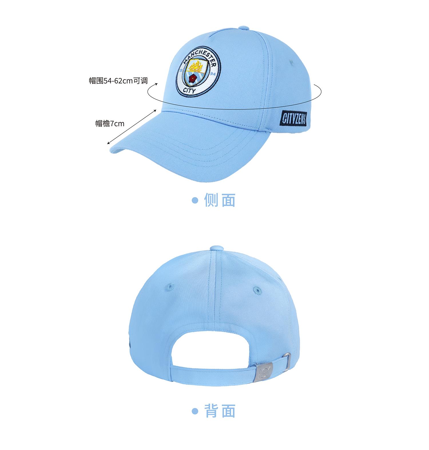 曼城俱乐部官方商品丨曼城浅蓝队徽棒球帽鸭舌帽休闲球迷