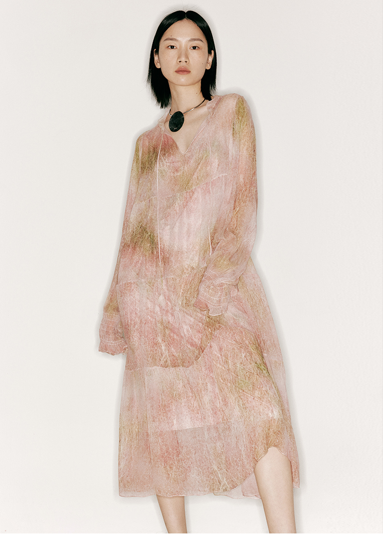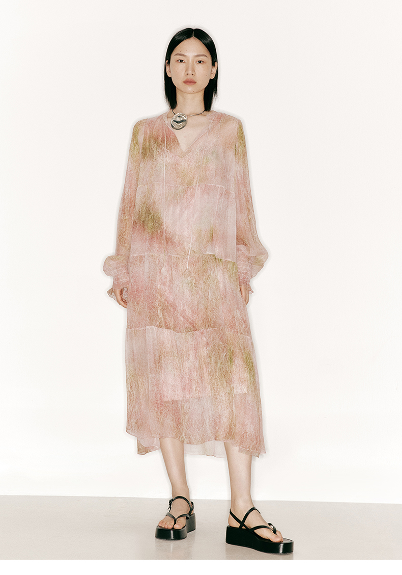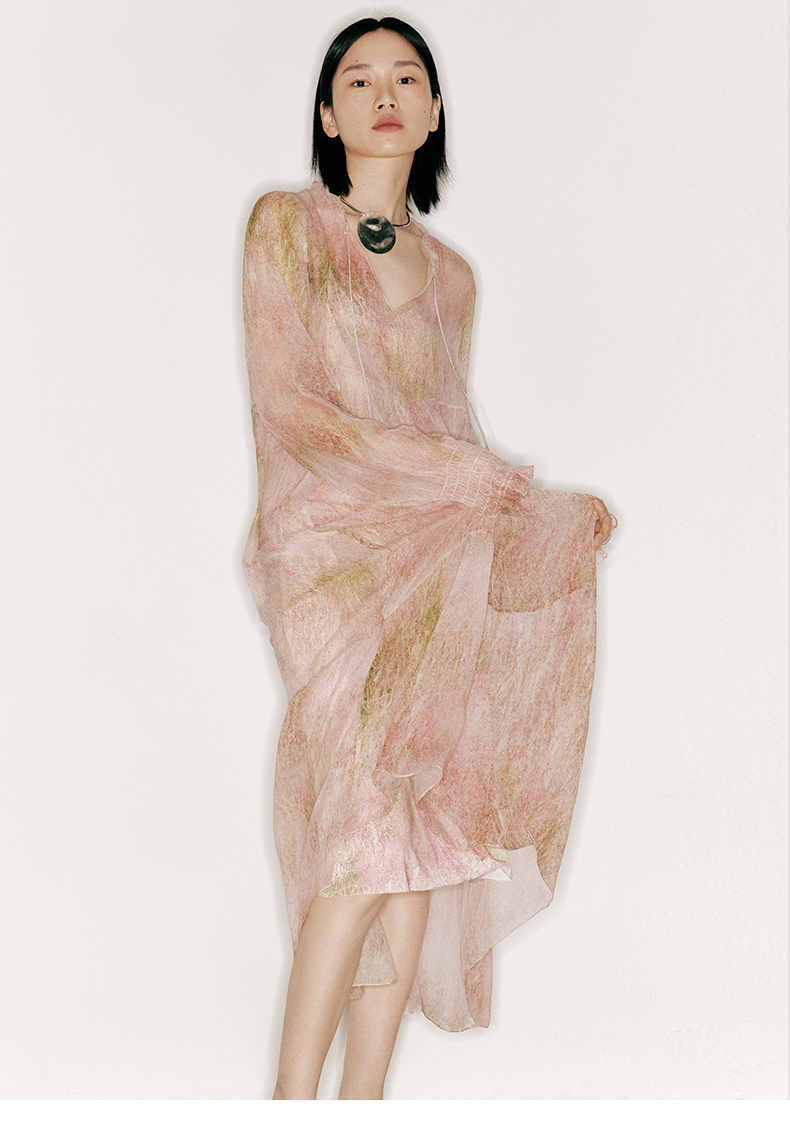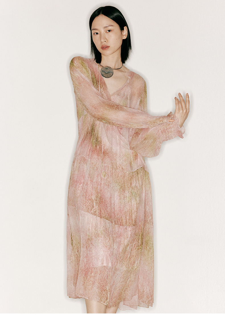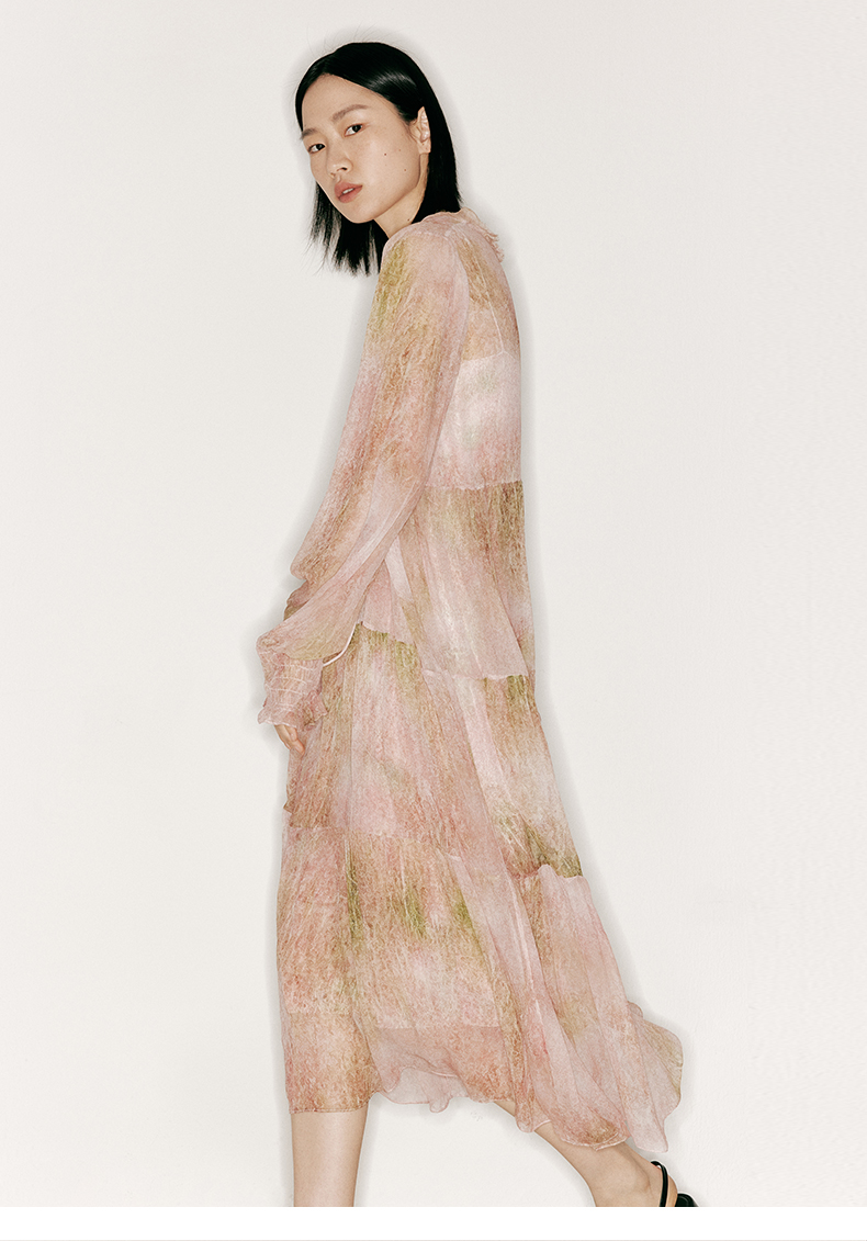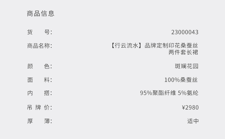 【行云流水】品牌定制印花桑蚕丝两件套长裙/23000043