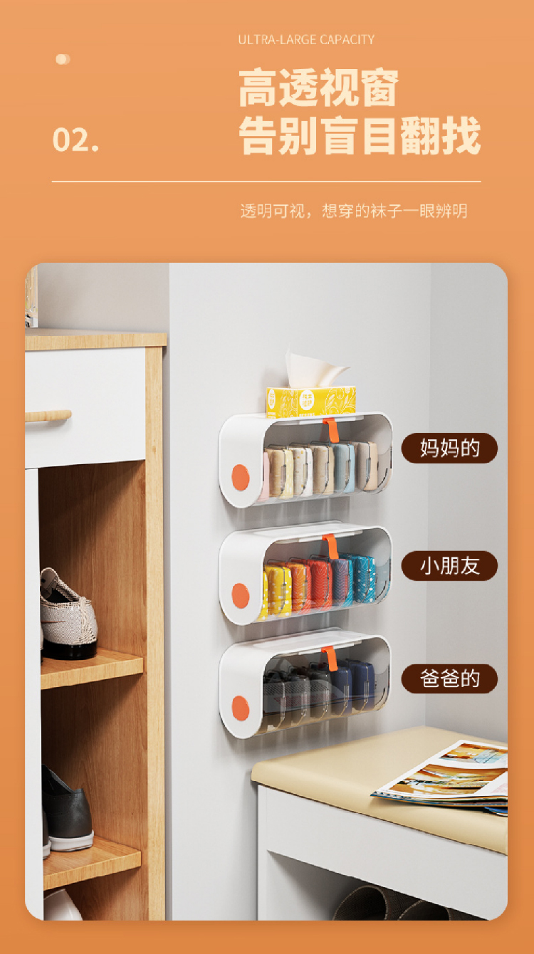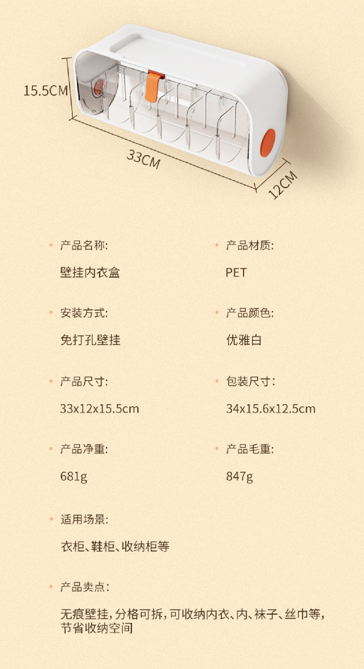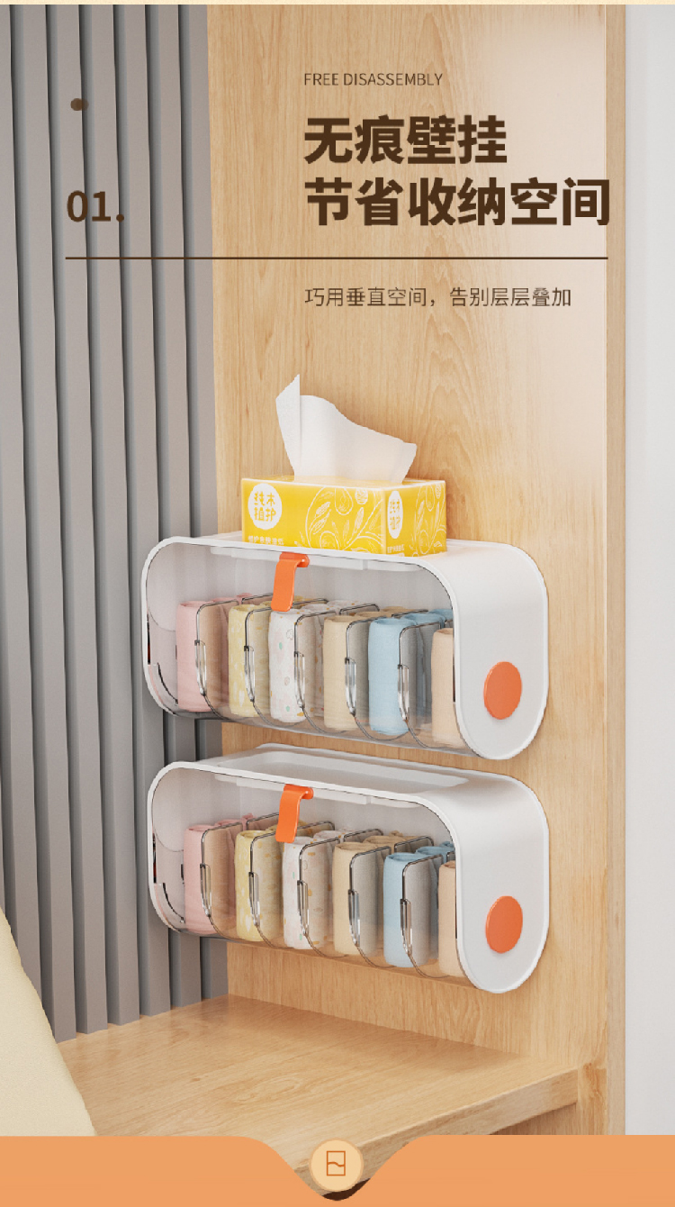 【内衣袜子壁挂收纳架】轻松收纳内衣内裤透明收纳盒 壁挂宿舍卧室分格干净收纳