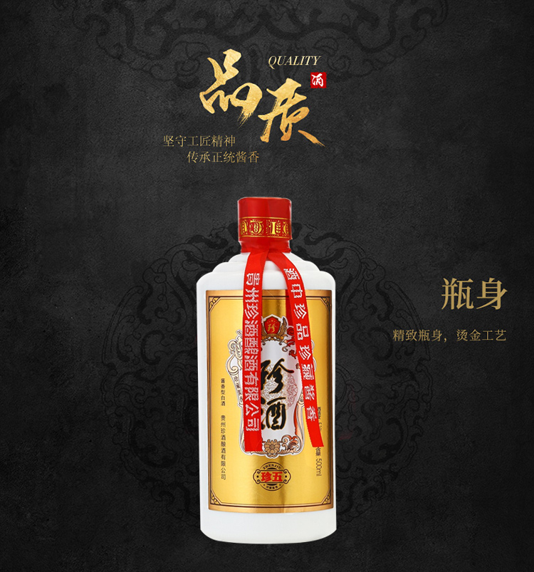【单瓶】珍酒(珍五)酱香型白酒 500ml 53%vol