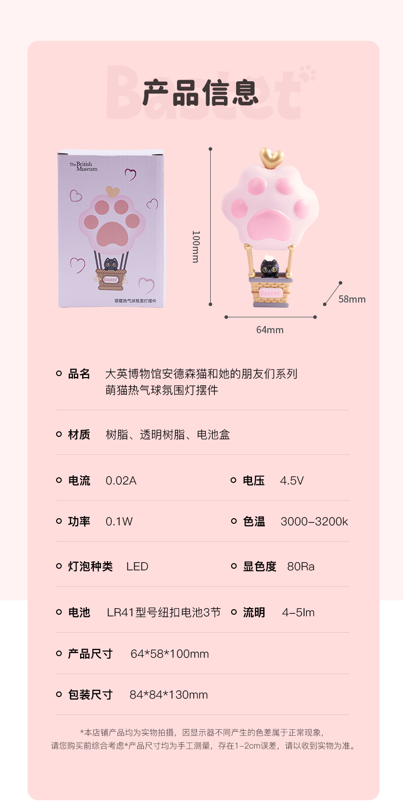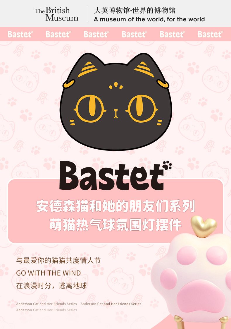 大英博物馆盖亚·安德森猫和她的朋友们系列 萌猫热气球氛围灯摆件