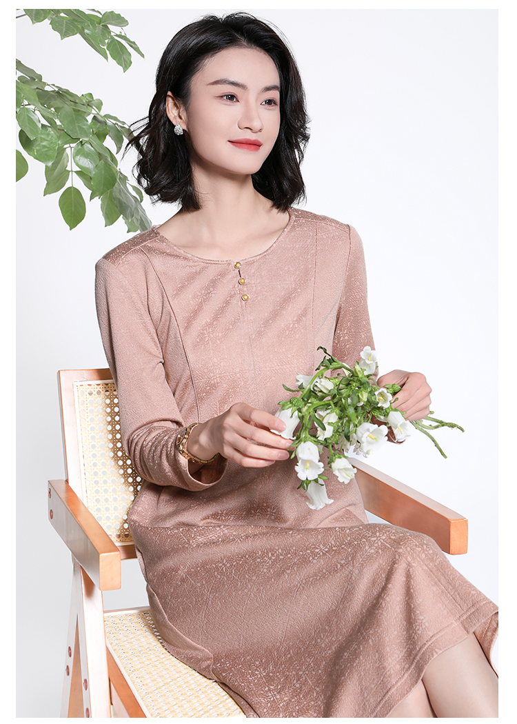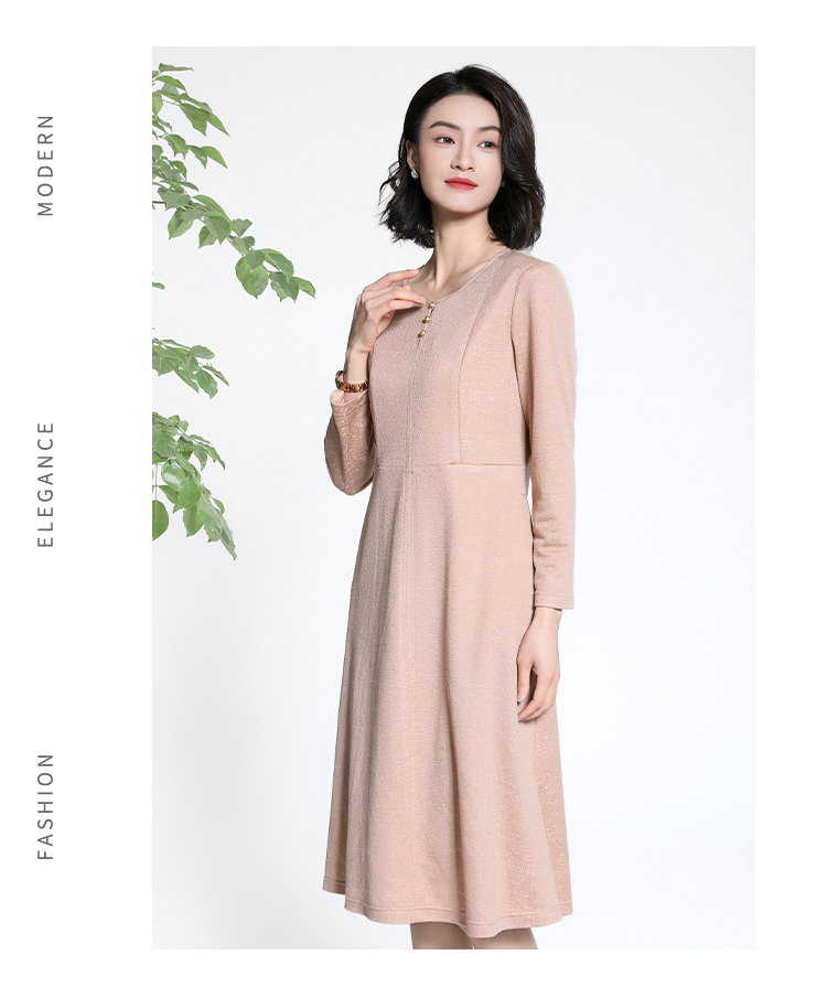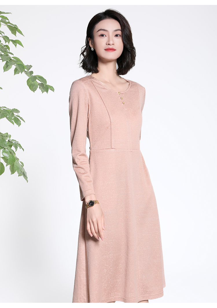 佐尔美时尚气质减龄纯色百搭长袖连衣裙女E33LL35