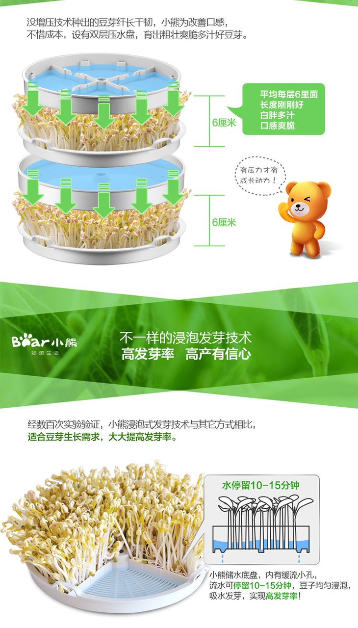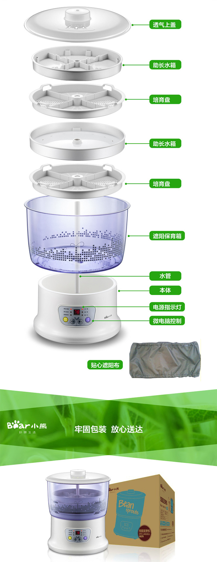 小熊(Bear) 豆芽机 家用全自动双层微电脑定时 自动泡豆 DYJ-A02G1 蓝紫色