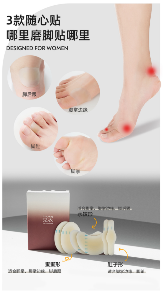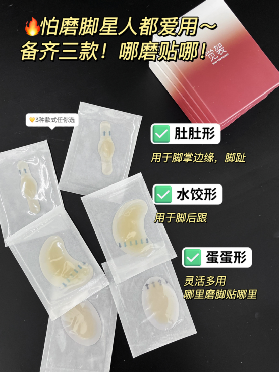 ✔️蛋蛋形:前用于脚掌 ✔️肚子形:脚掌边缘,脚拇指还可以用作创口 ✔️水饺形:脚后跟 不仅可以贴脚上的,还可以贴手上哦,像健身、 登山爱好者虎口、手指上都能贴上 还有经常背包外出的,可以贴在背包处,避免反复摩擦疼痛🉑 总之就是哪里磨贴哪里,给足你安全感💯