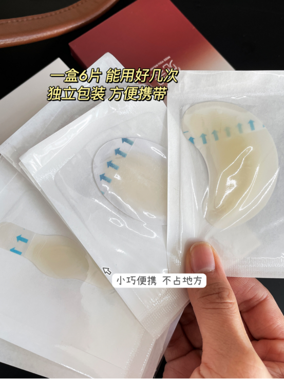 第6⃣️ ,很有设计感的精美包装盒 每一片都是独立包装,小巧一片放在包里、口袋都很方便携带 蝴蝶开口设计的,不怕粘在手上减弱粘性,很方便很卫生