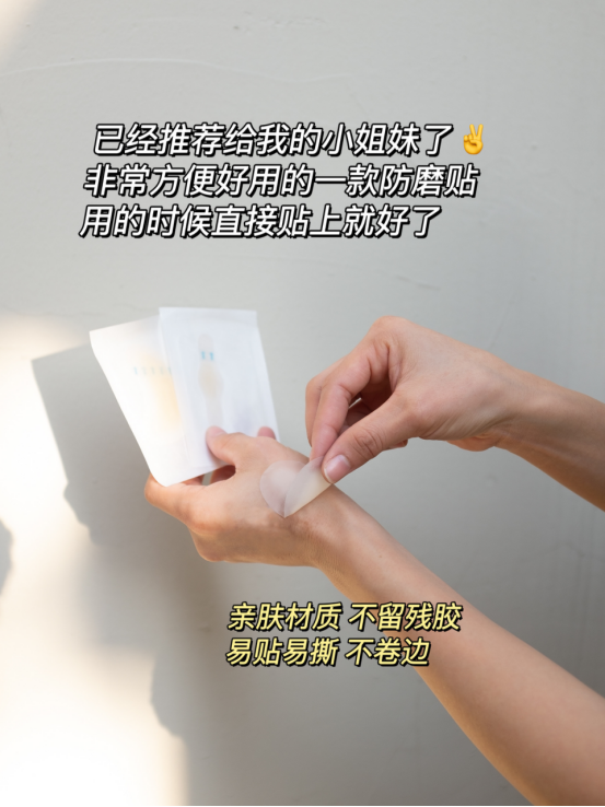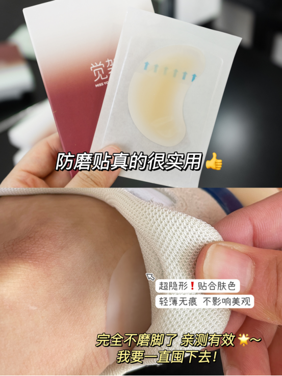 很多人鞋子磨脚的第一反应就是:赶紧贴个创口贴 但是,创口贴看着真的很low啊! 而且毫无防磨作用,贴上之后走一段路就卷边报废了,脚上还磨出黑屑❌ 一点不防磨就算了还容易磨损伤口感染细菌😭
