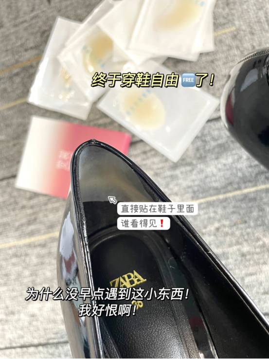 是不是没想到,它还能反贴在鞋子上! 而且贴上之后真的非常贴合, 既不磨脚也不用担心粘脚,撕下也方便~ 听我说,谢谢你, 因为有你双脚再也不用忍受“心如刀割”的那种痛了