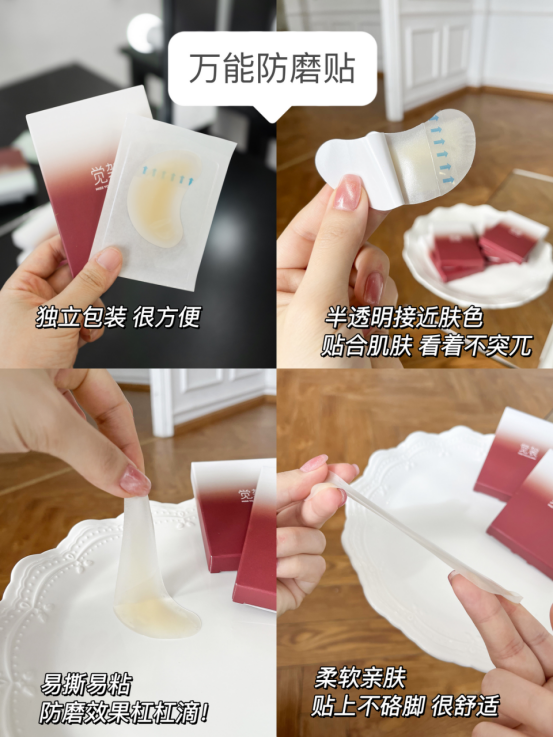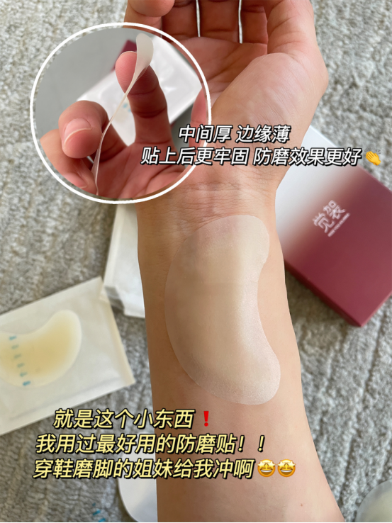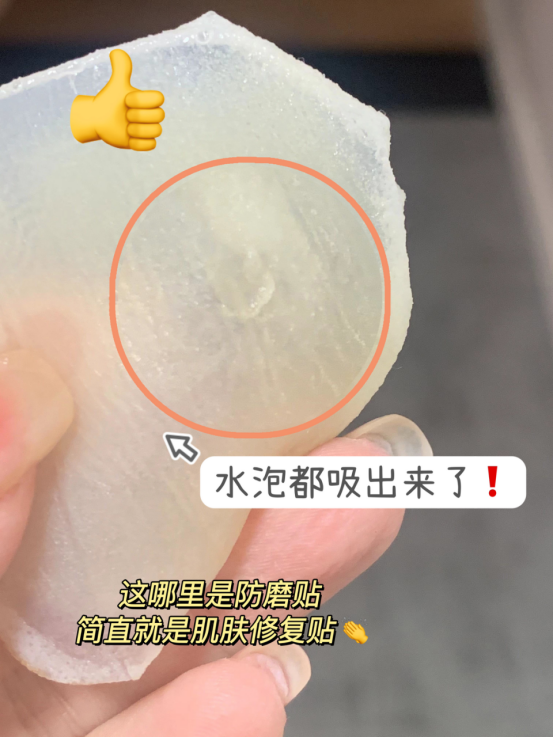 而且这款防磨贴还可以修复破损伤口,让水泡无处藏身 磨出水泡不用担心闷热感染,可以直接贴上去 它内里的修复功能不仅修复肌肤,还会把水泡一起吸出来! 让水泡会慢慢缩小,直到痊愈,皮肤也恢复自然还不留疤,超赞! 真的太神奇了,我觉得每个女士都应该备上几盒🉑 用过一次直接真香,爱死了!!