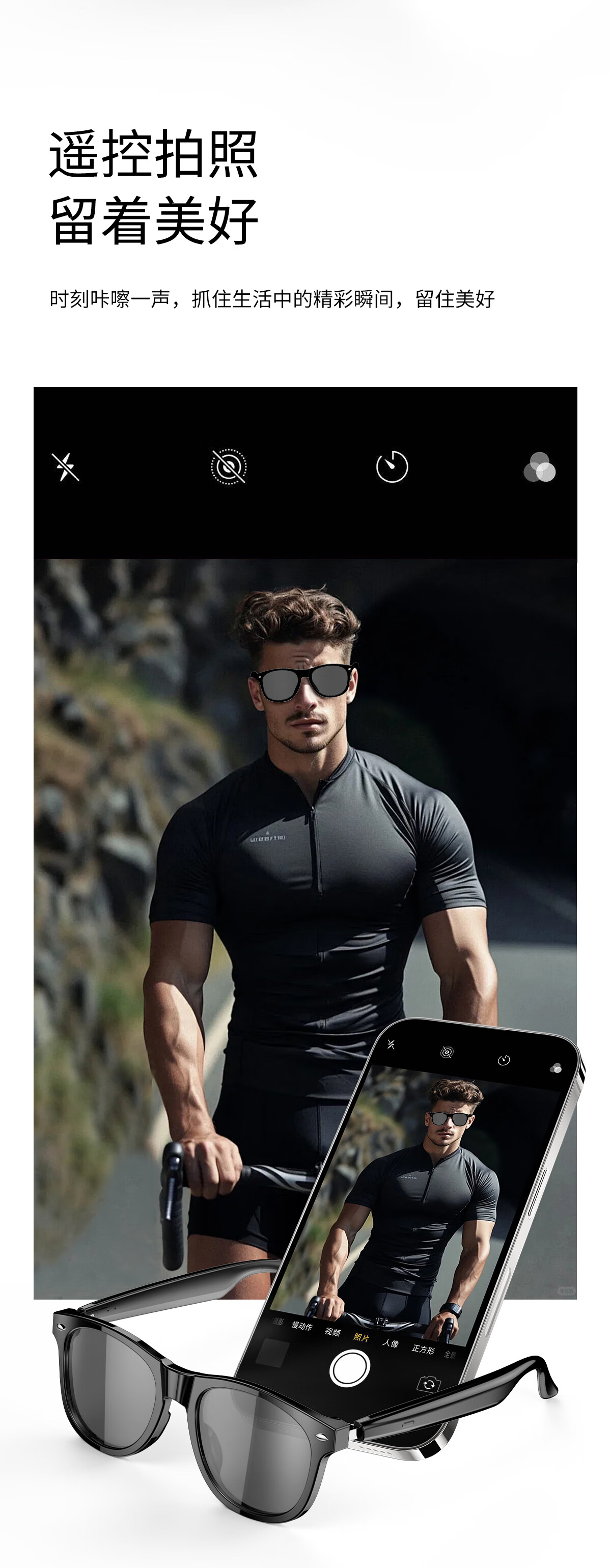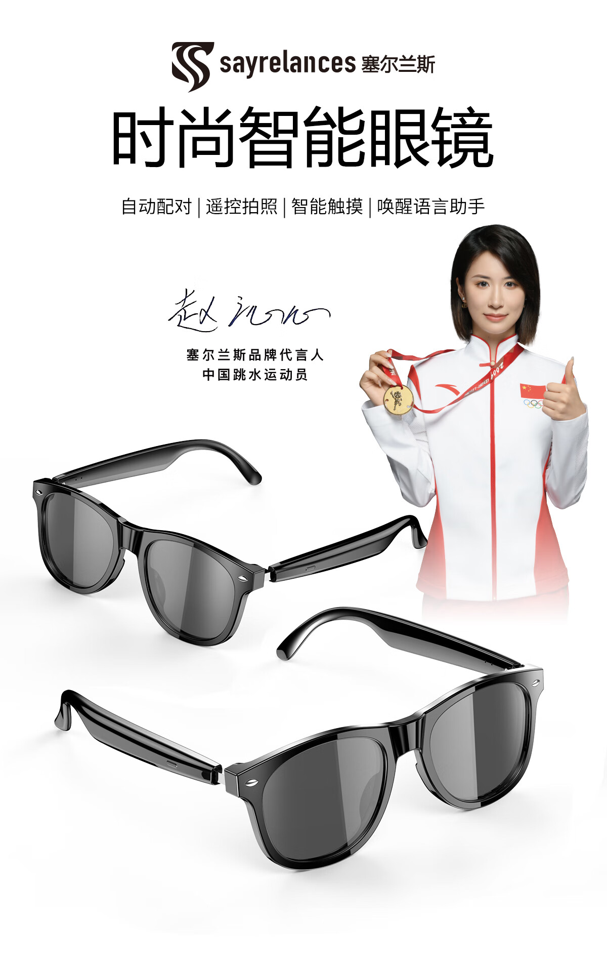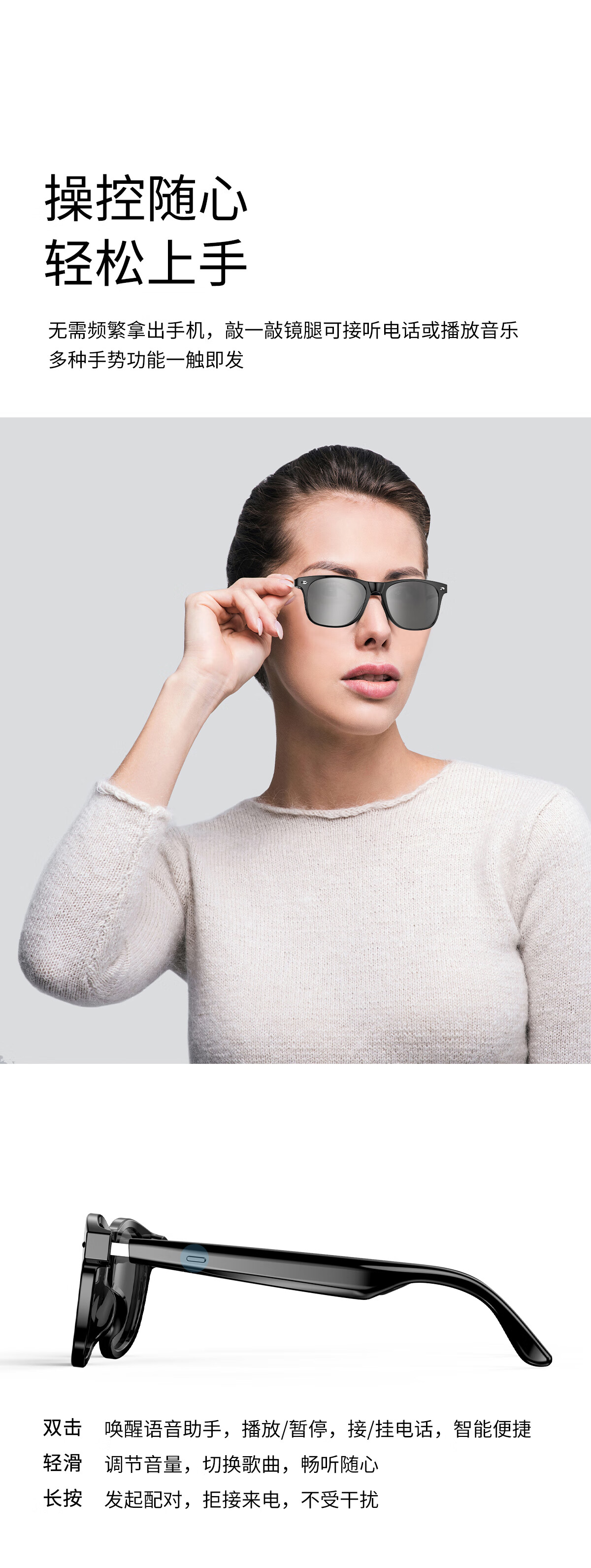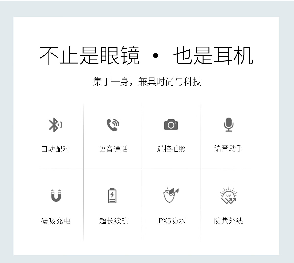 【雷朋同款设计】塞尔兰斯时尚智能眼镜自动配对遥控拍照智能触摸蓝牙耳机