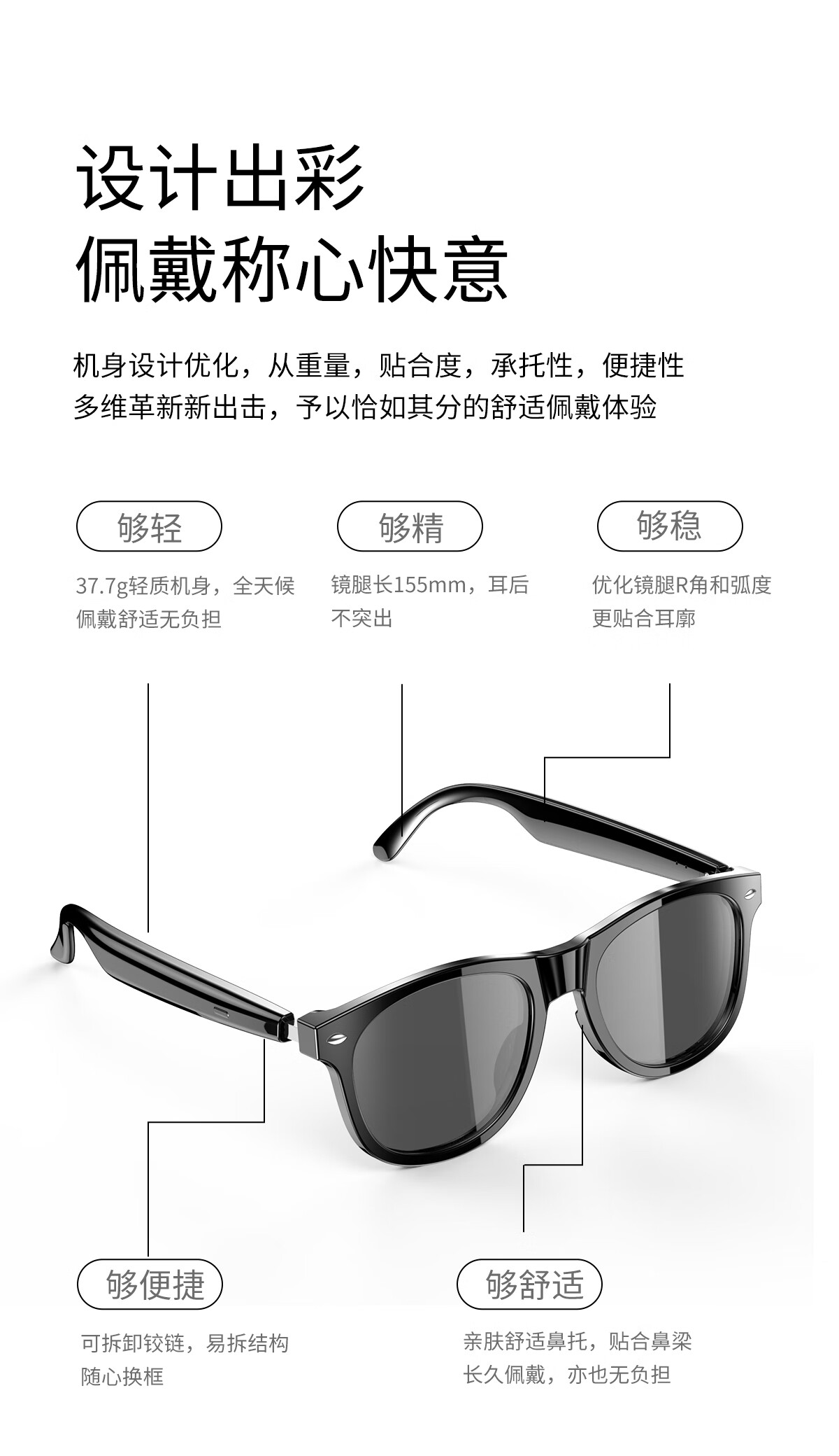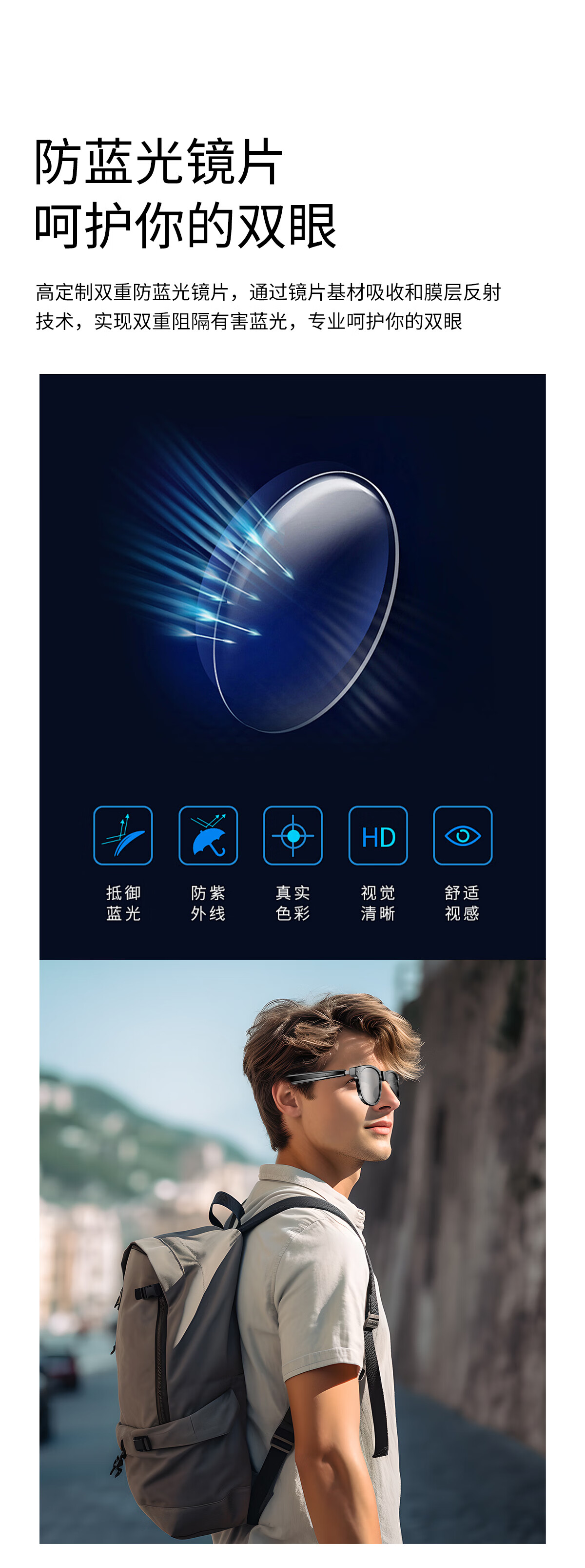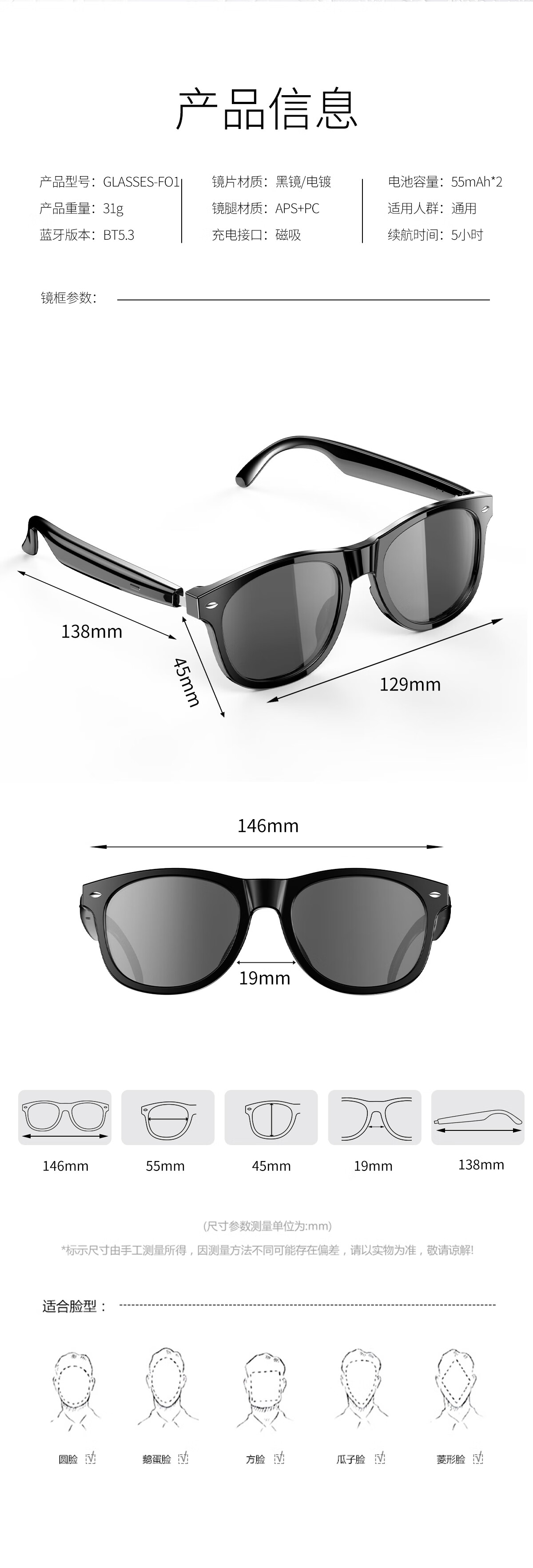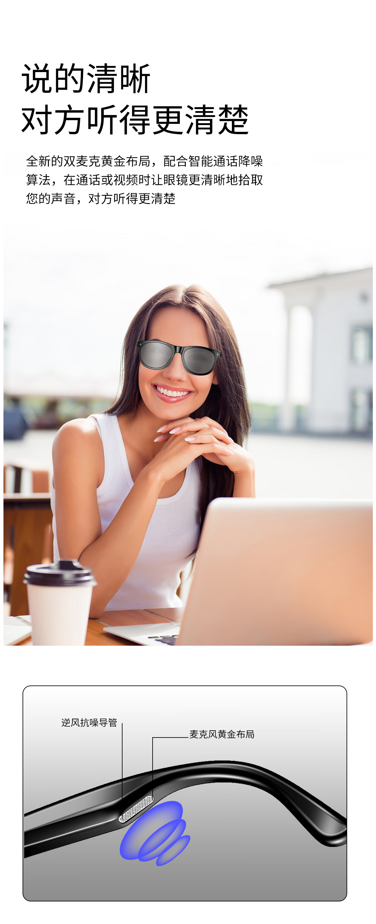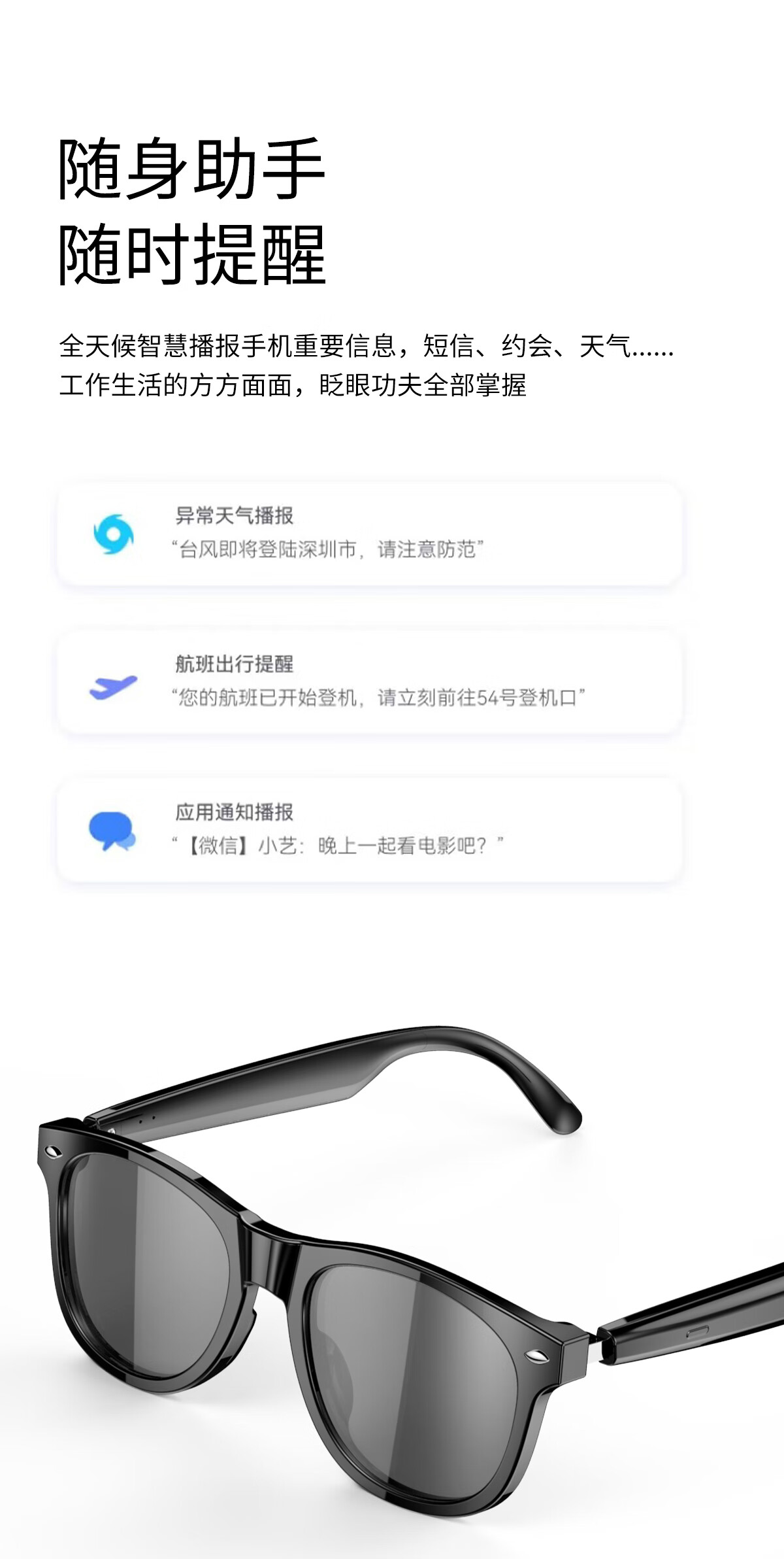 【雷朋同款设计】塞尔兰斯时尚智能眼镜自动配对遥控拍照智能触摸蓝牙耳机