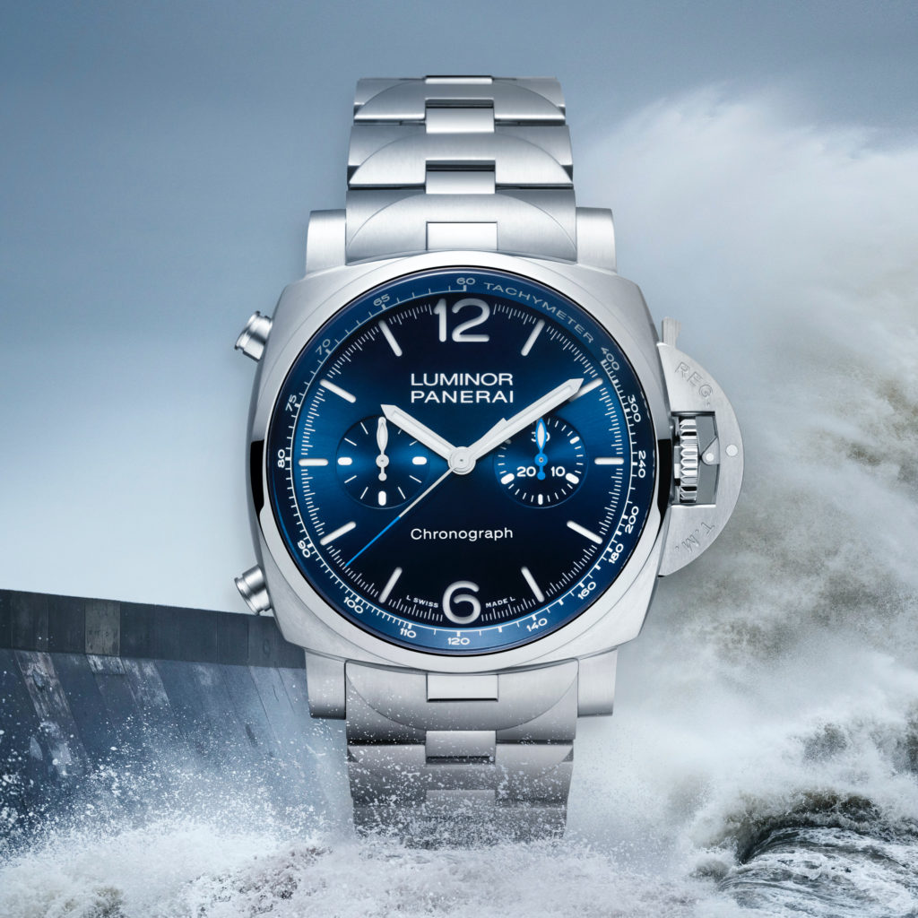 镜面材质 | 蓝宝石水晶玻璃 | 表盘 | 精钢表壳 蓝色太阳放射饰纹表盘,附夜光阿拉伯数字及小时标示。 功能 分钟, 计时码表, 小秒针, 小时 旋入式表背 |
