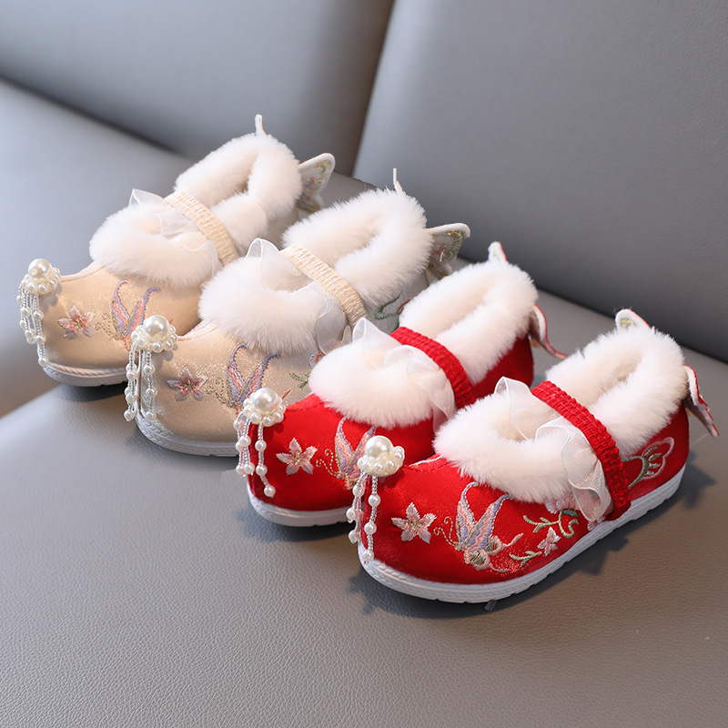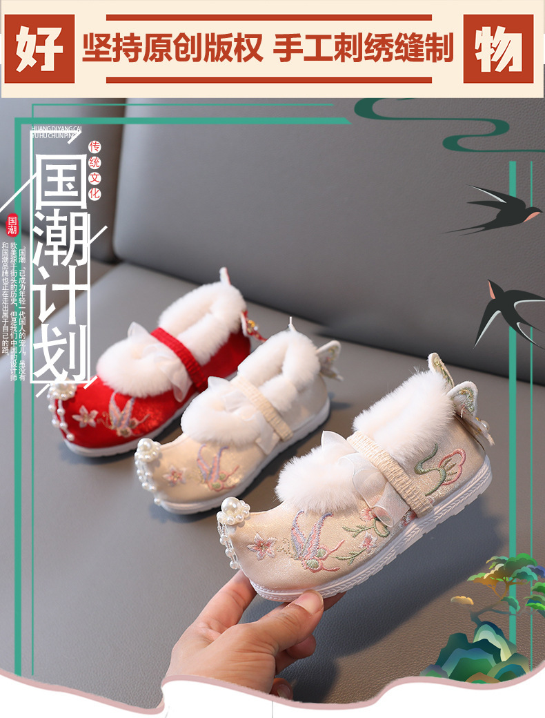 苏城纪【翘头蝴蝶】女童汉服鞋子冬季加绒翘头绣花棉鞋15M-6