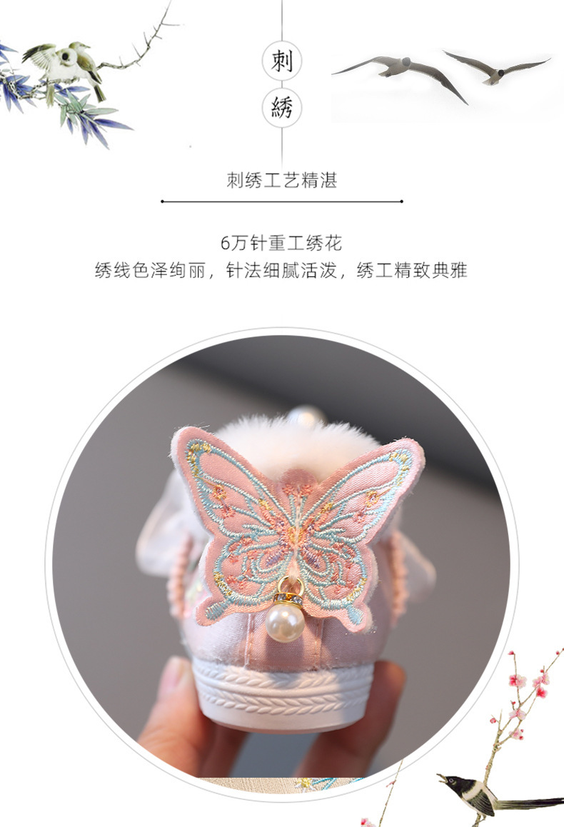 苏城纪【翘头蝴蝶】女童汉服鞋子冬季加绒翘头绣花棉鞋15M-6:新中式的年服怎么能少的了国风鞋子呢~ 苏城纪国风鞋也太会了!直接美到脚指头🦋