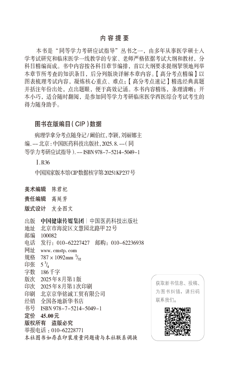 书名:病理学拿分考点随身记(同等学力考研应试指导)