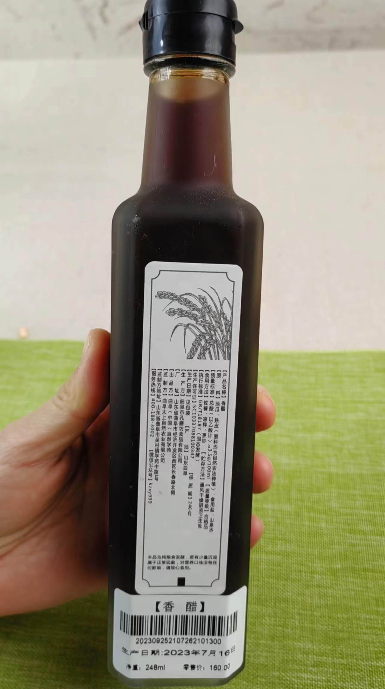 产品名称:香醋 产品规格:248ml 配料:地瓜、麸皮(原料均为自然农法种植)、食用盐、山泉水 生产日期:见包装 保质期:24个月 储存方式:置于阴凉干燥通风处