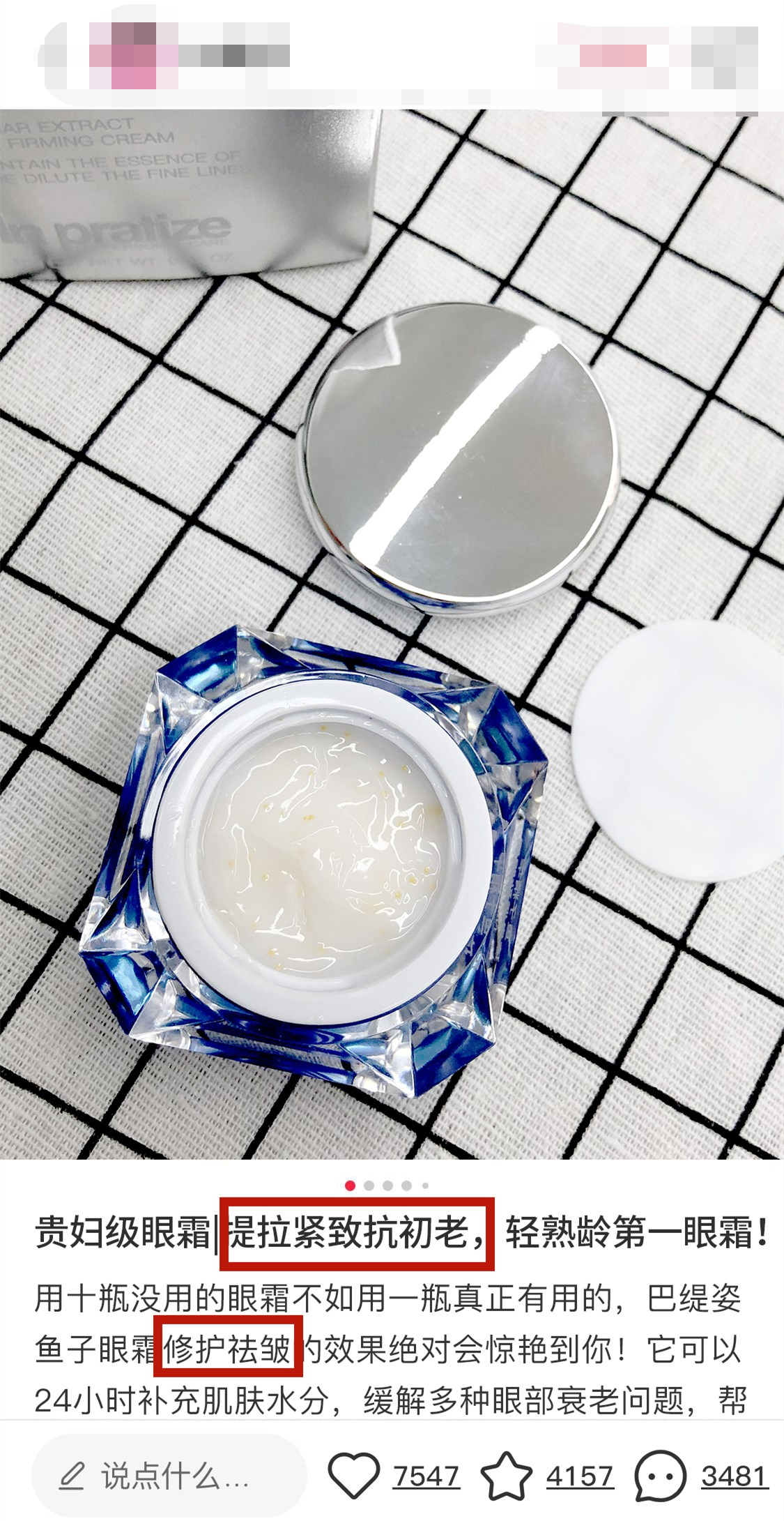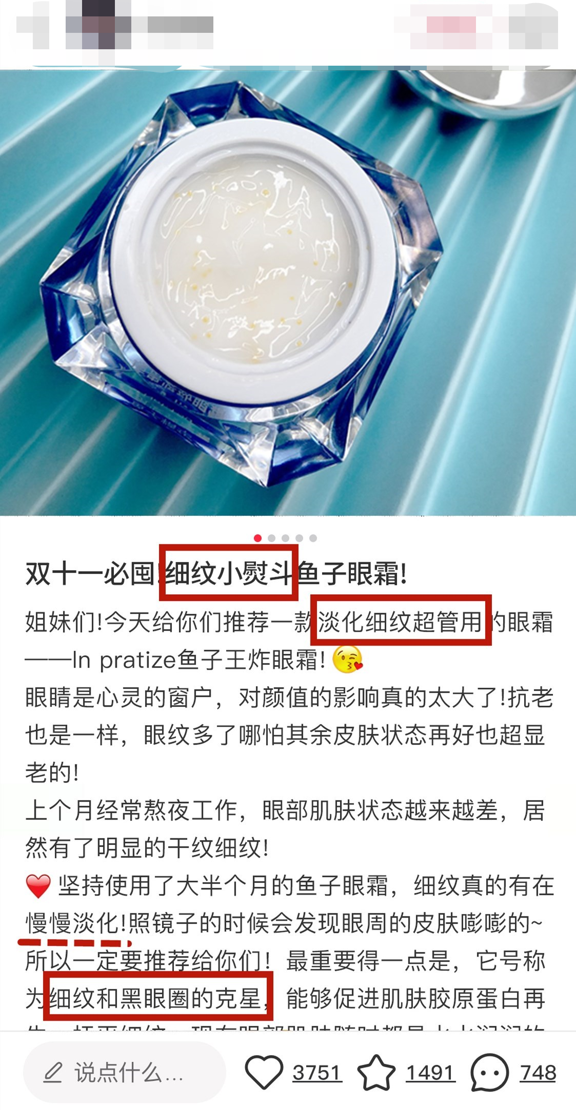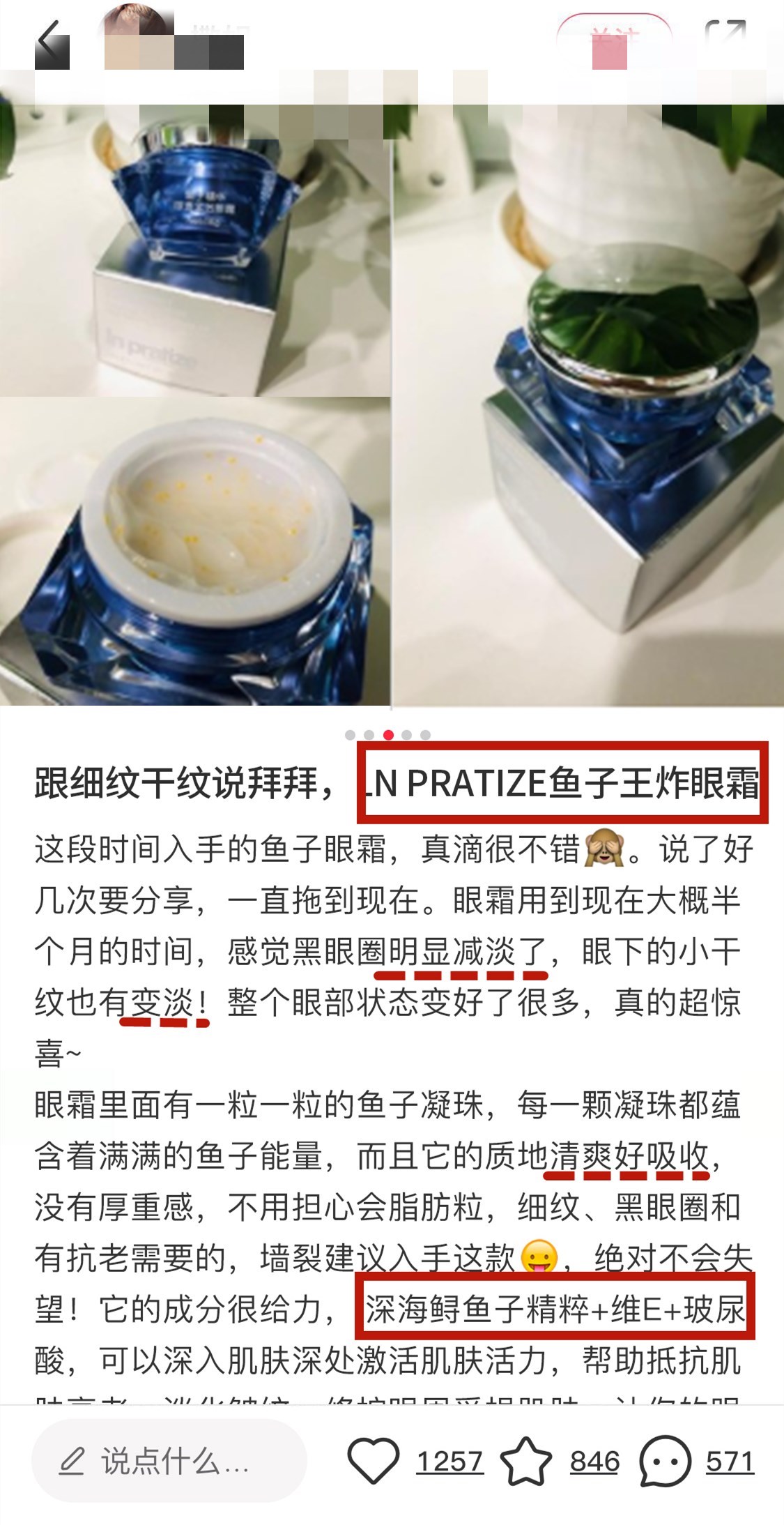 1.鱼子精华琼贵眼霜的成分来自美国进口鲟鱼籽酱,里面满满都是进口的鱼子酱。涂上30秒速度吸收,称为“王炸眼霜”“第一眼霜”“细纹小熨斗。