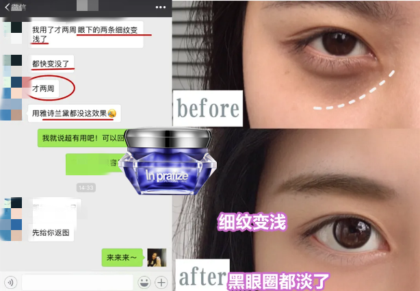 【功效】改善细纹、 紧致提升、祛黑眼圈、滋润保湿、抗氧抗衰等, 能有效去除皱纹,眼尾纹,黑眼圈,收紧眼袋