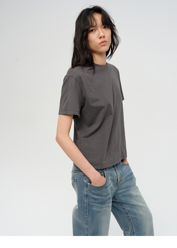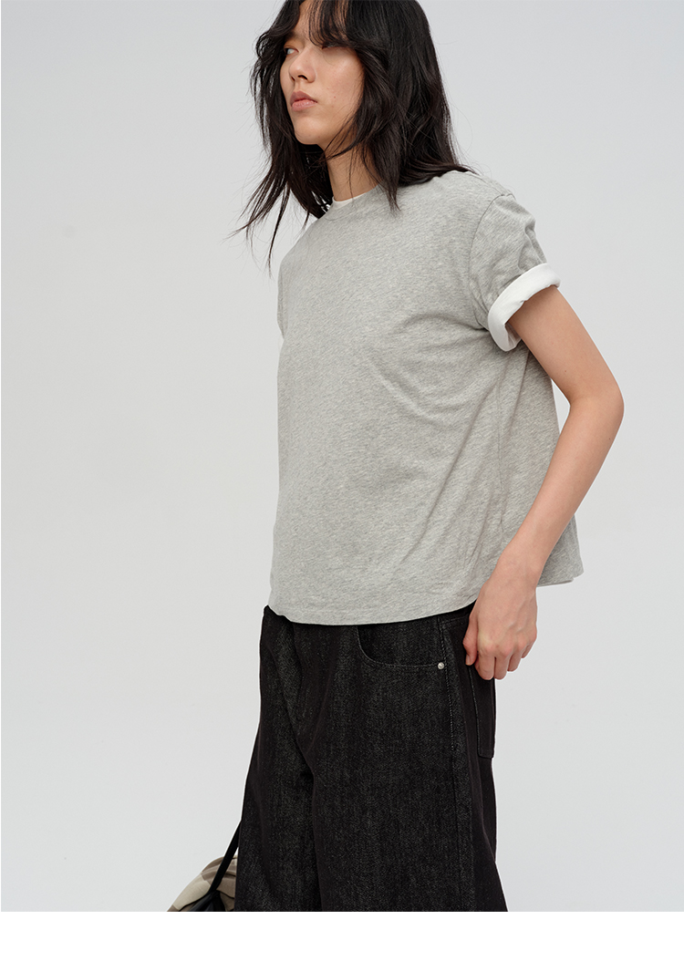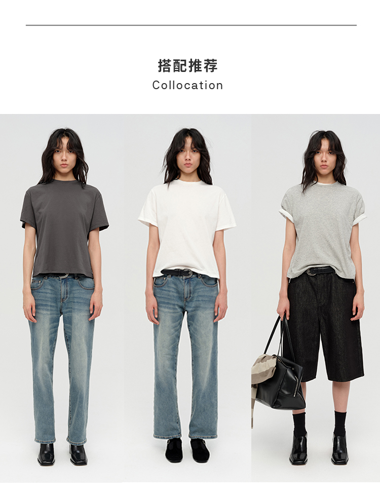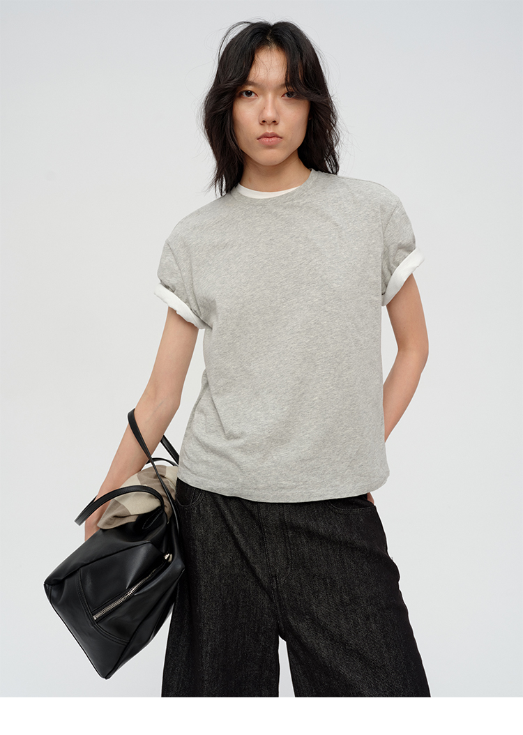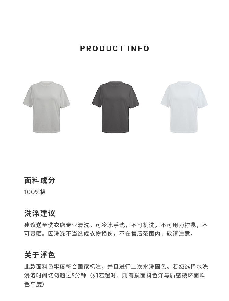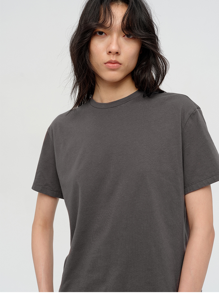 HIDEMI 自然棉织标系列圆领透气舒适短袖t恤 白色/烟灰色/深炭灰