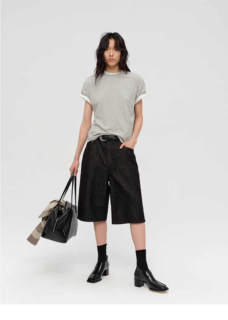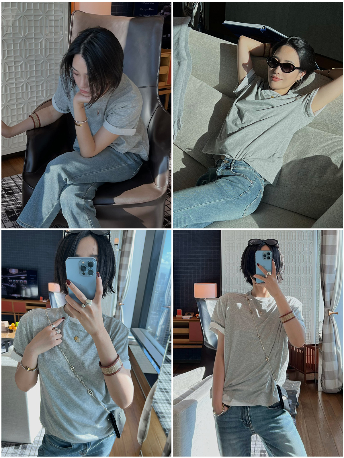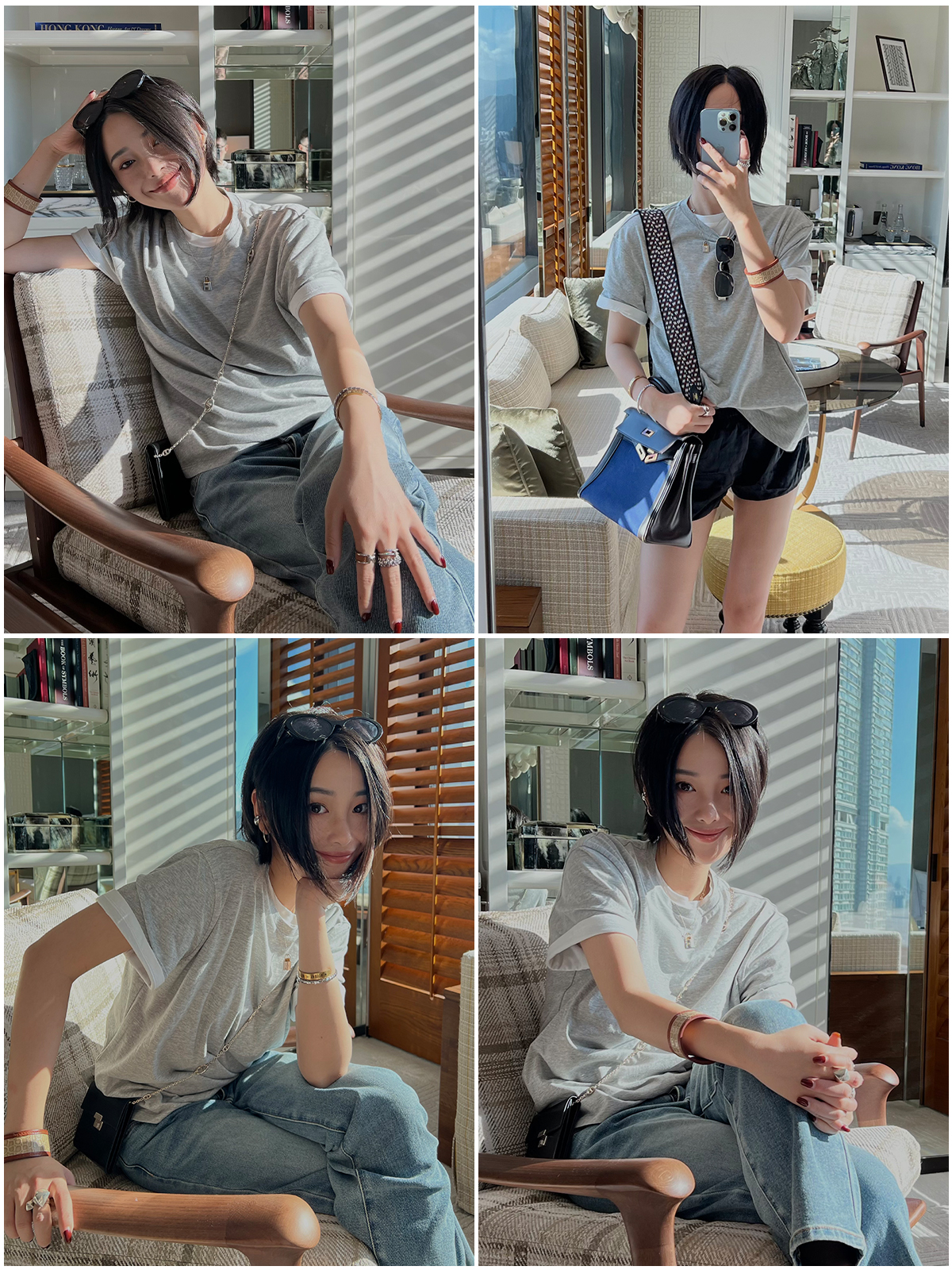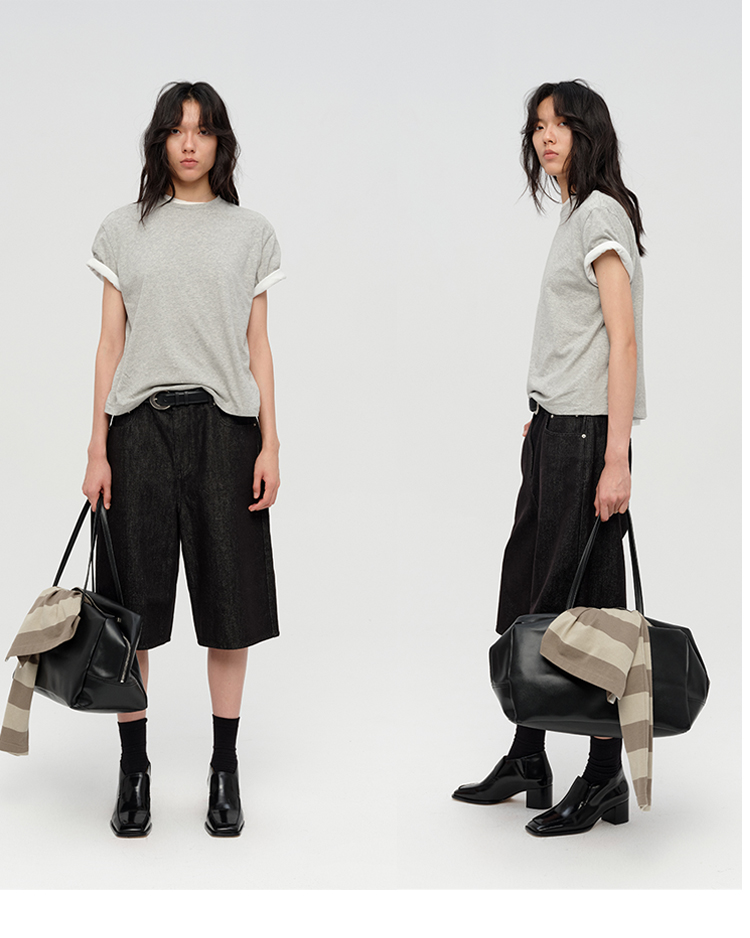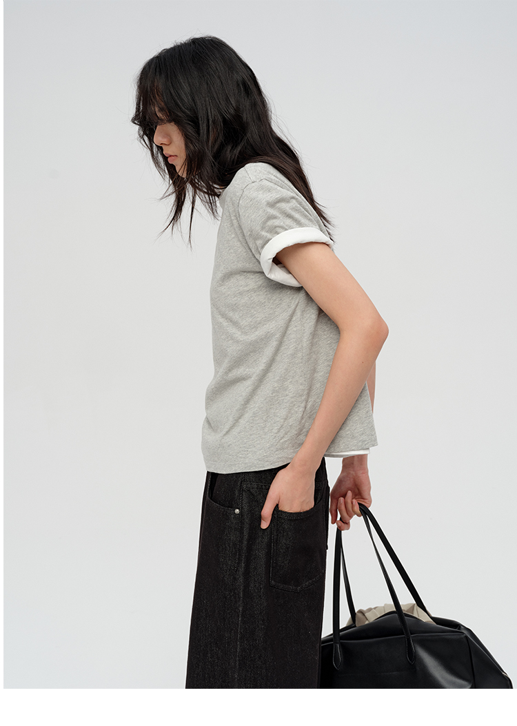HIDEMI 自然棉织标系列圆领透气舒适短袖t恤 白色/烟灰色/深炭灰
