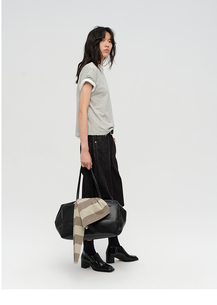 HIDEMI 微褶醋酸立体堆叠领不对称上衣