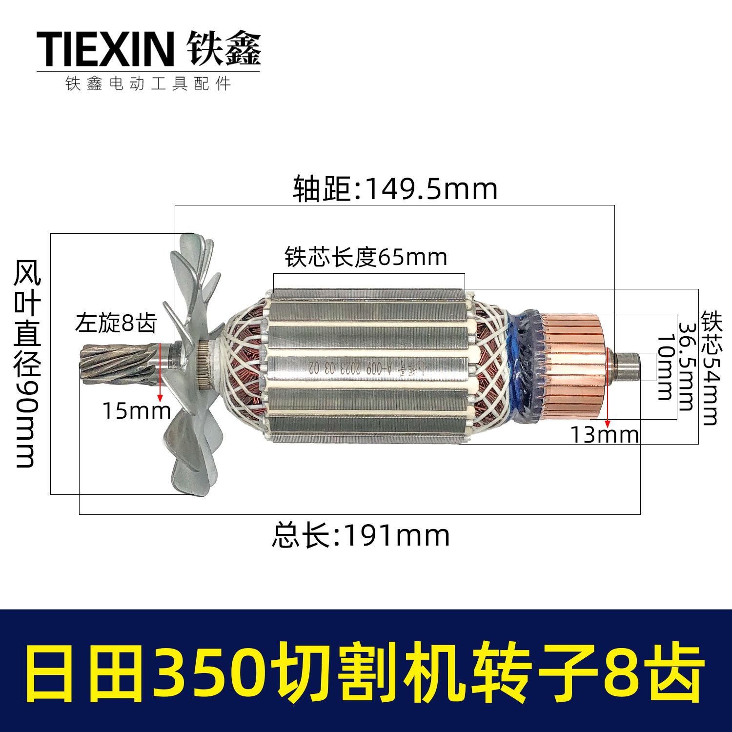 【货号02580】东成2200-355日田350切割机转子8齿 LG钢材机电机