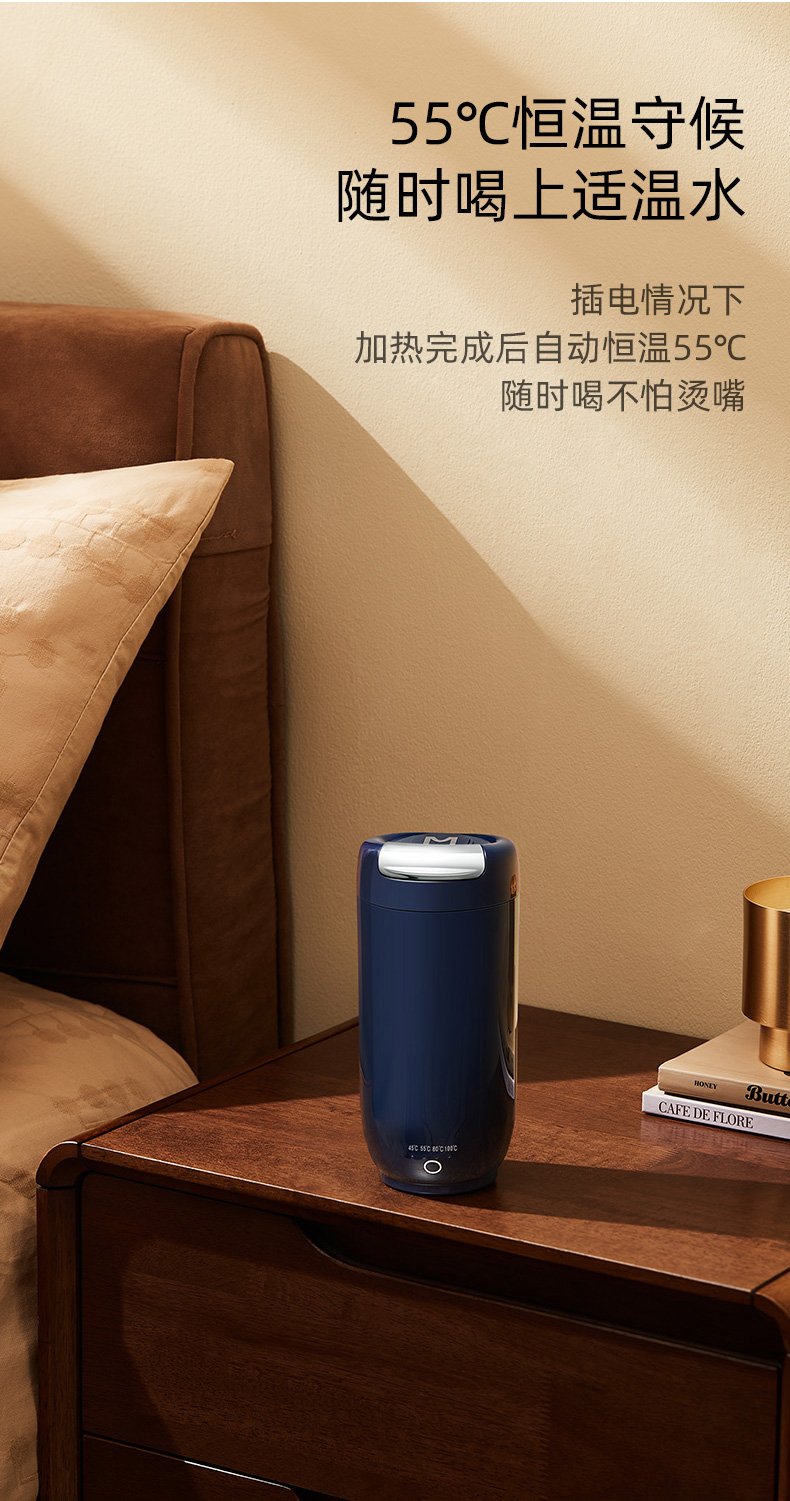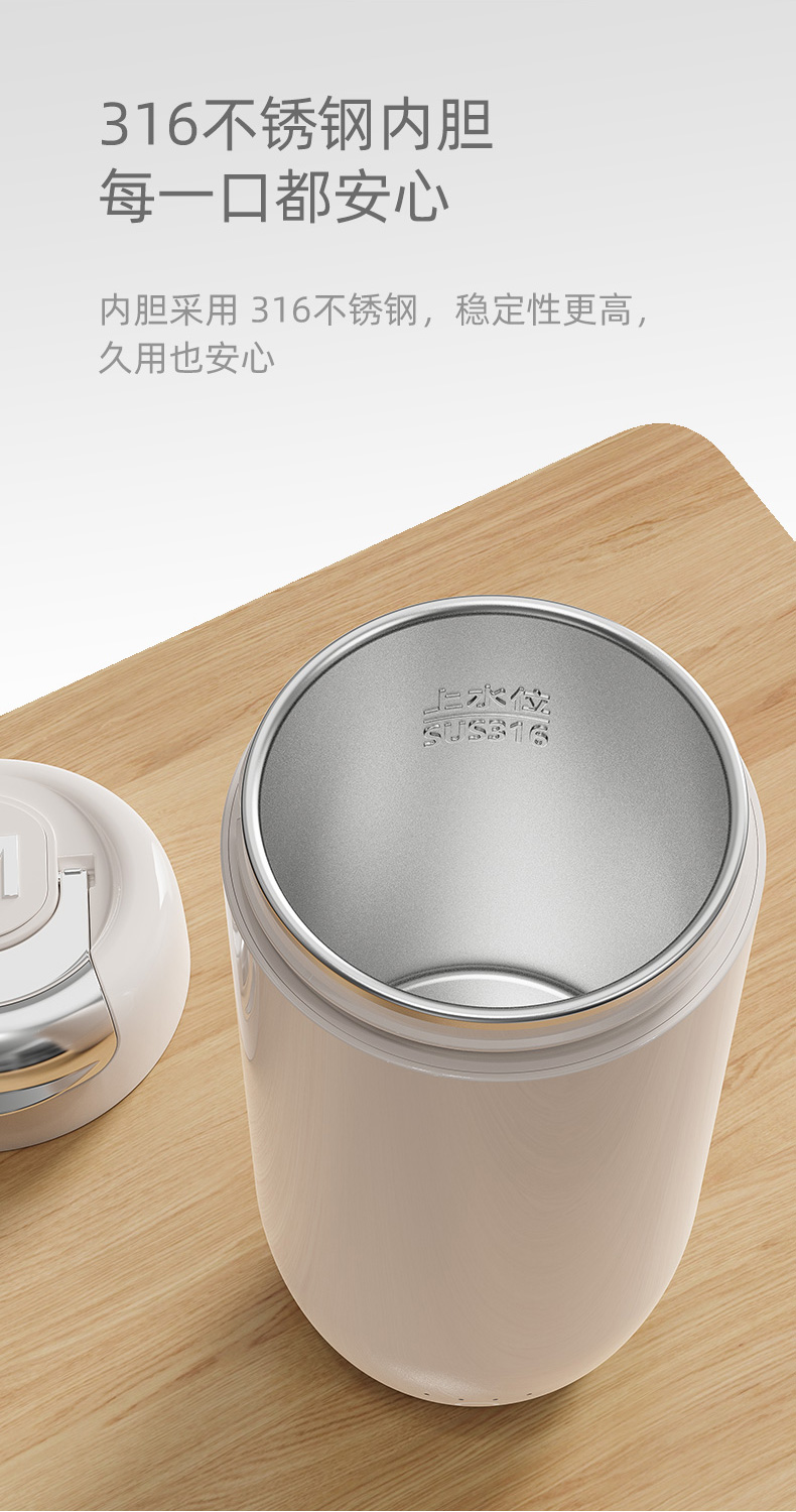 【网红电热水杯】MCKAKA便携电热水杯烧水杯 316不锈钢内胆 一键即热 4档调温 45℃恒温 300ml大容量 居家/户外/车载适用